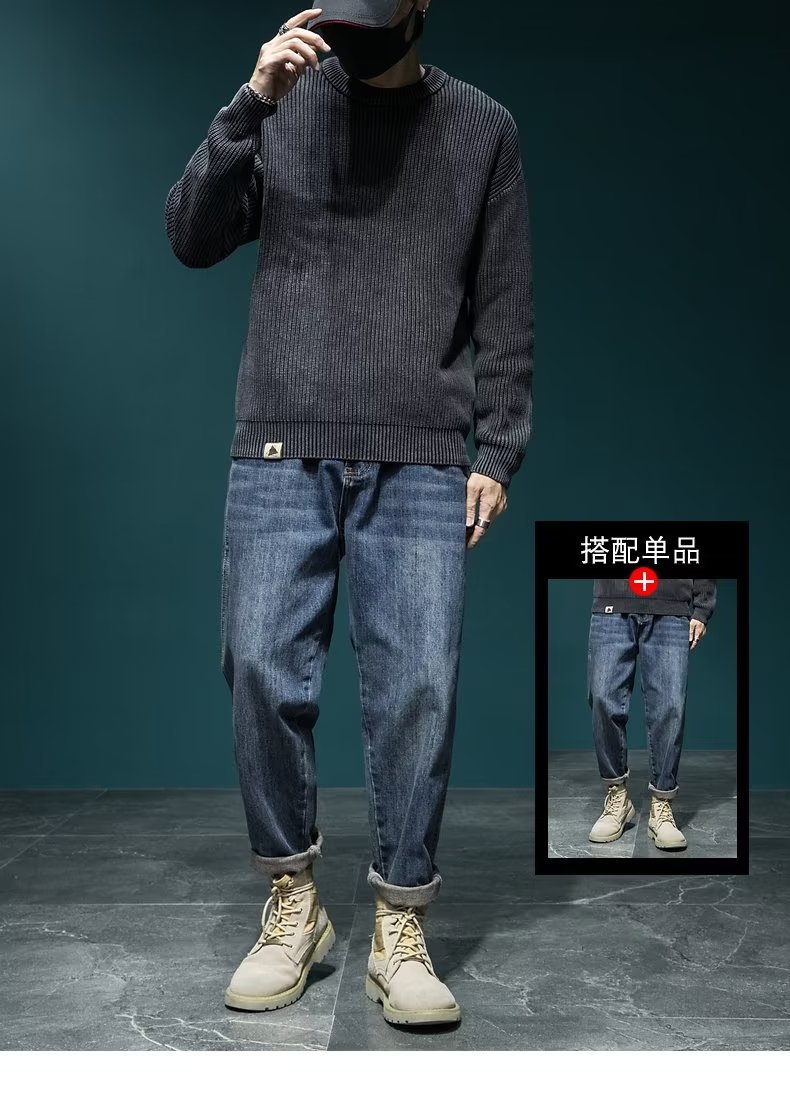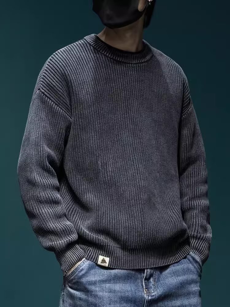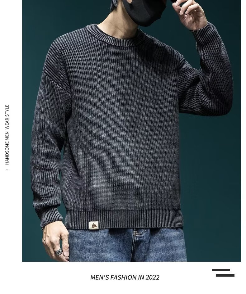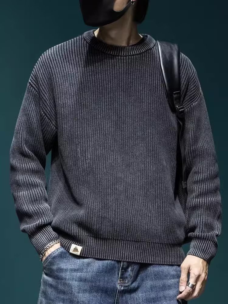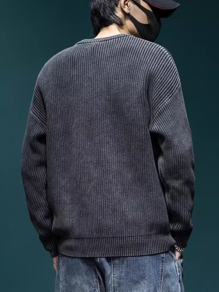 스웨터 남성 아메리칸 스타일 패션 브랜드 씻은 느슨한 플러스 사이즈 겨울 두꺼운 일본 스타일 간단한 라운드 넥 스웨터 스웨터스토어 가기