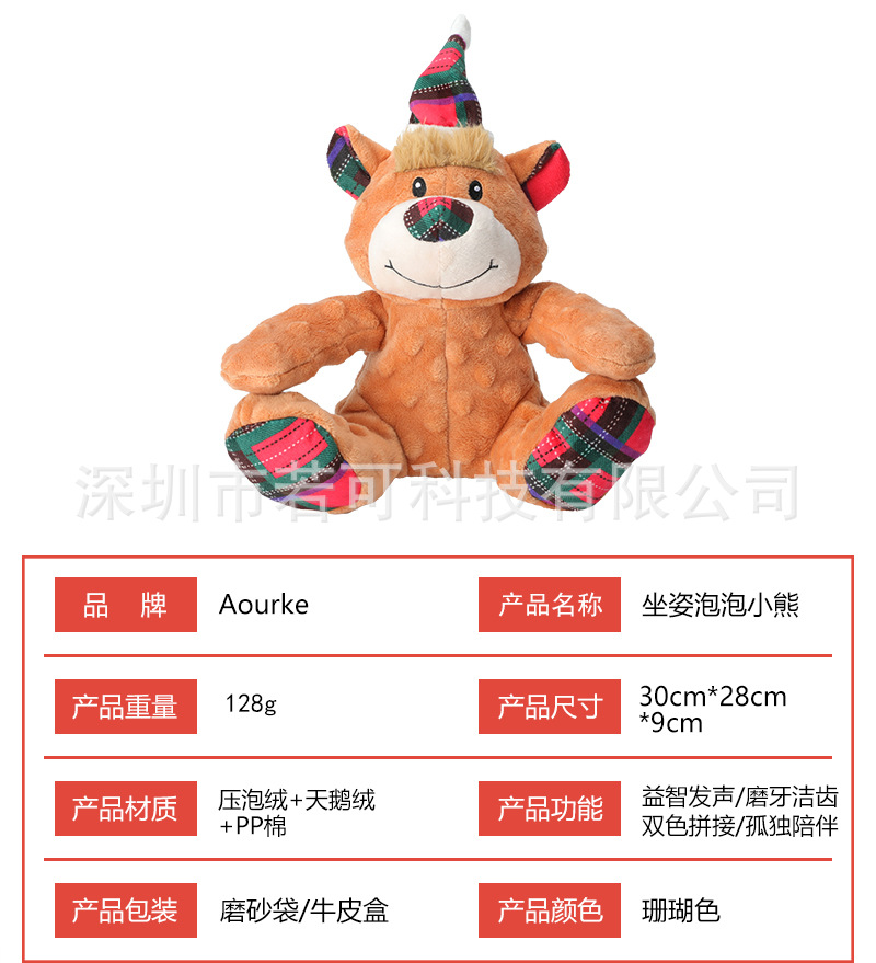 국경을 넘나 드는 새로운 앉아있는 버블 베어 개 장난감 보컬 몰리 바이트 저항하는 크리스마스 애완 동물 봉제 인형 동반 개
