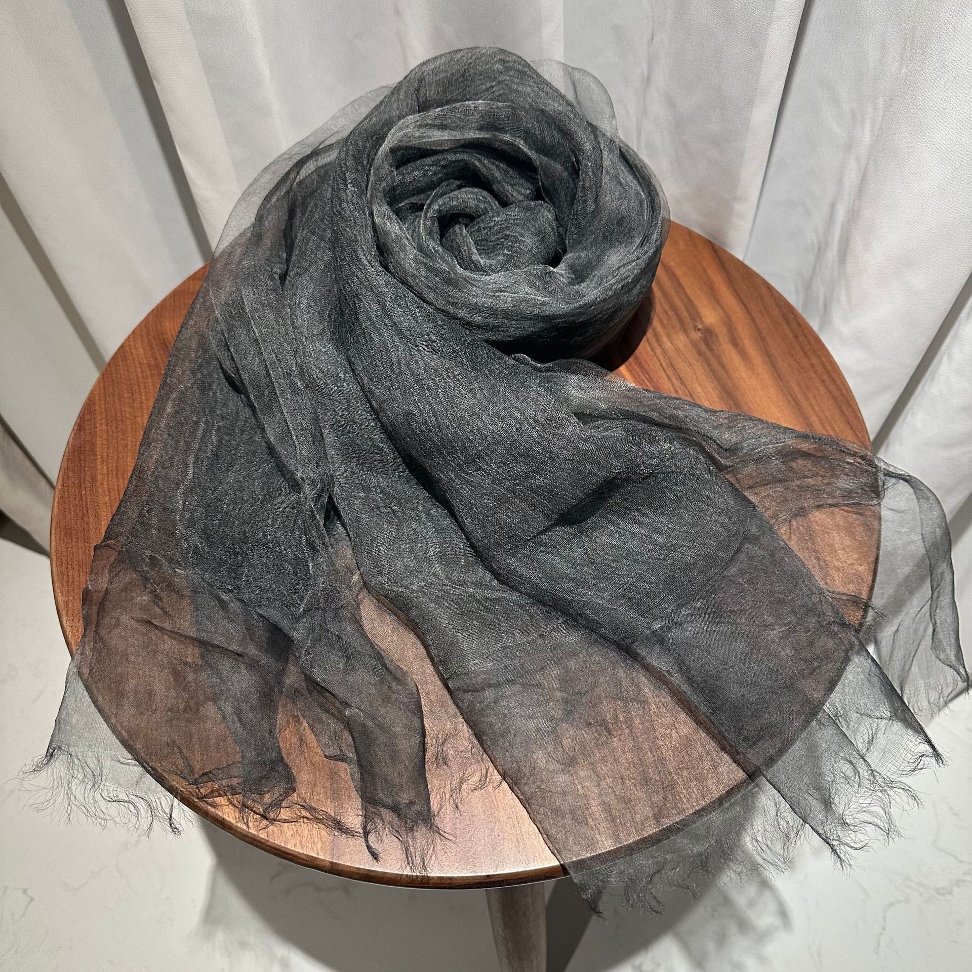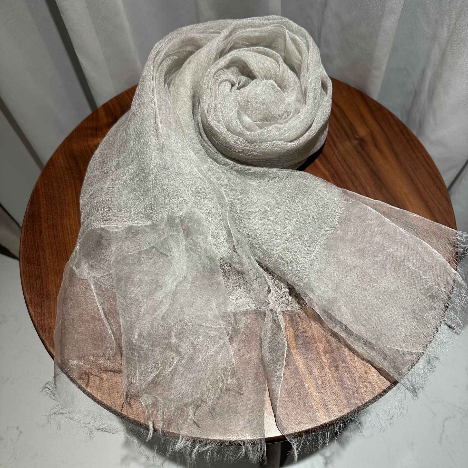 새로운 디자인의 단색 실크 이중 레이어 스카프 여성용 고급 자외선 차단 스카프 숄 스카프 해외 공급스토어 가기