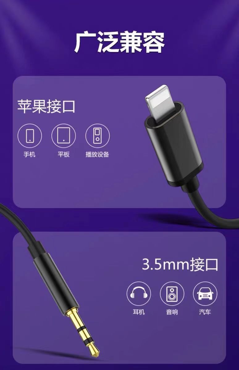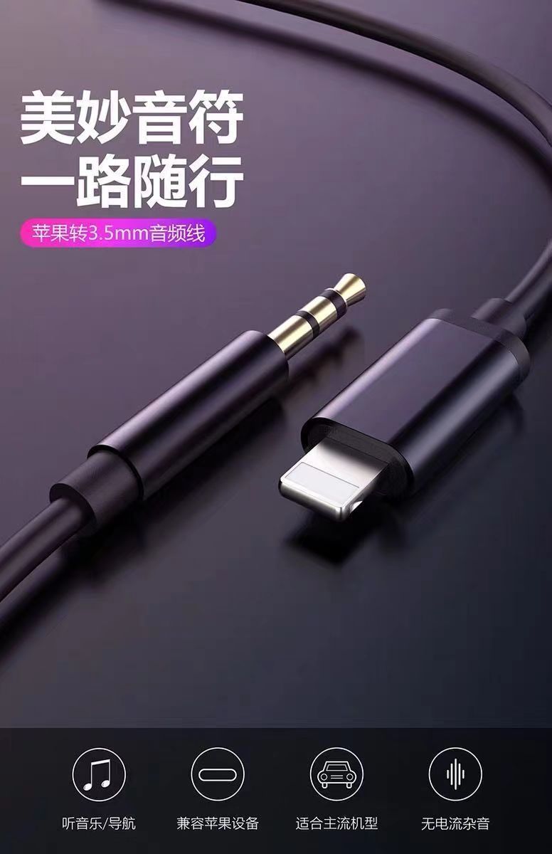 产品名称:适用苹果7-15车载AUX连接线Lightning转3.5mm音响耳机音频线