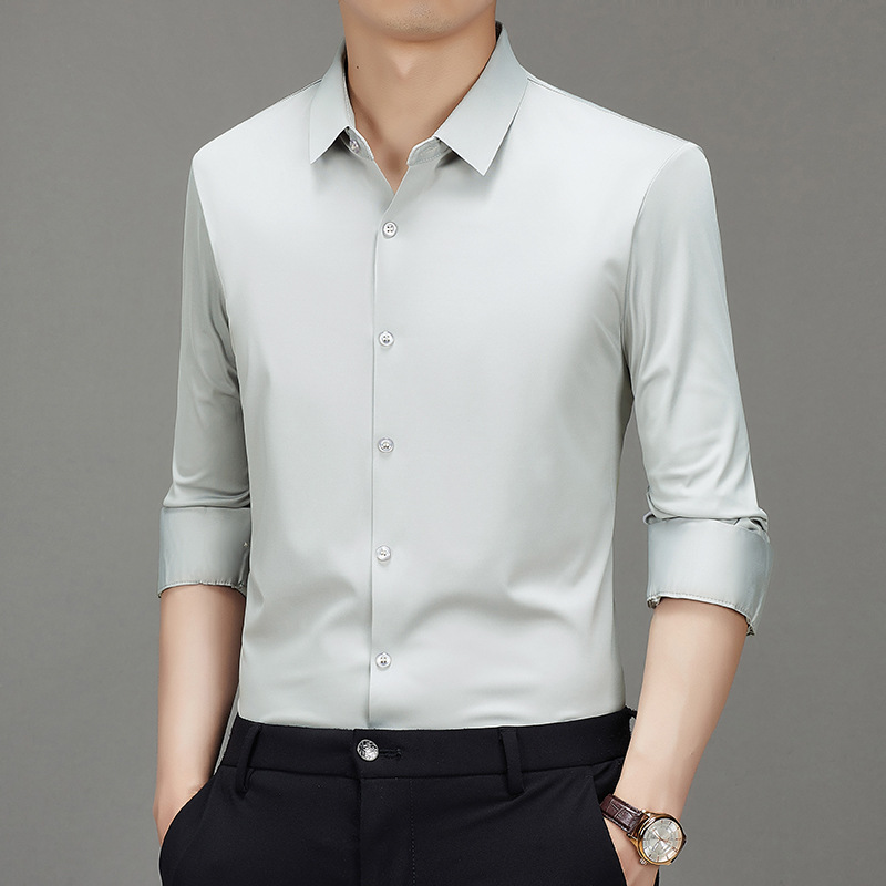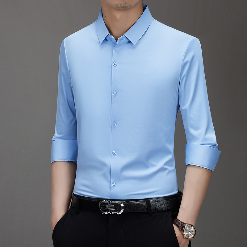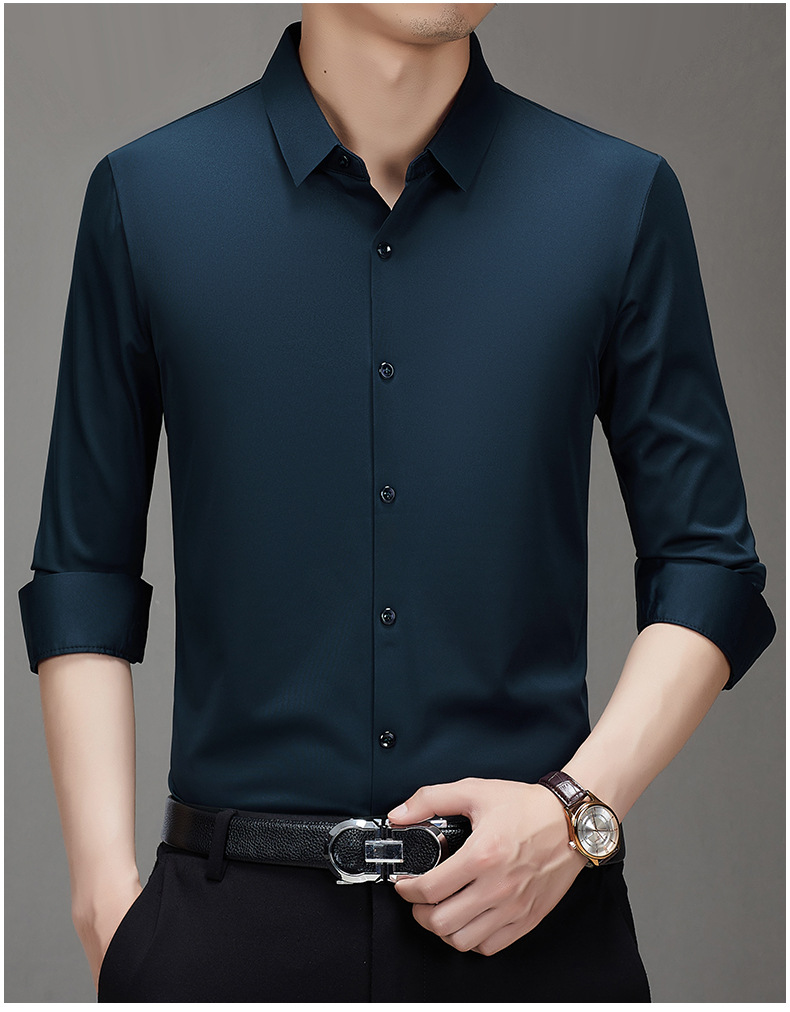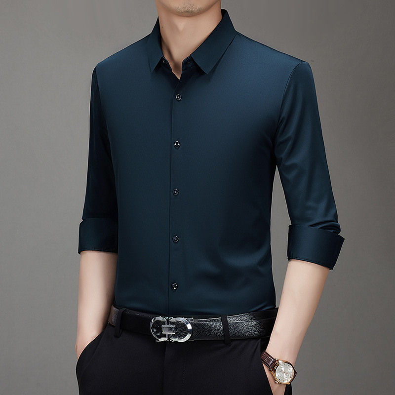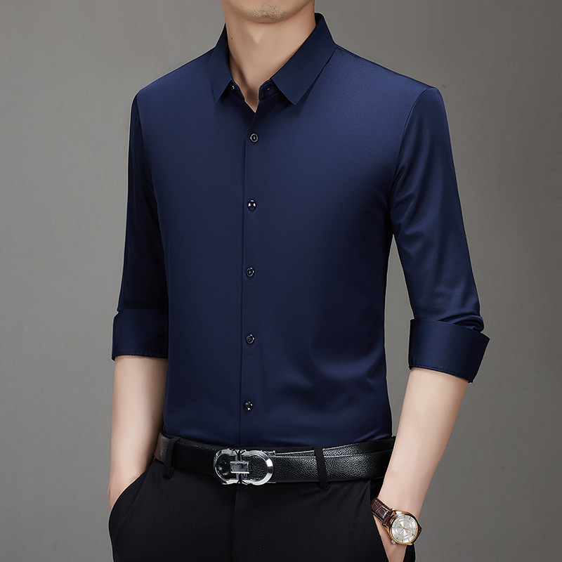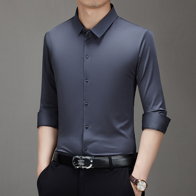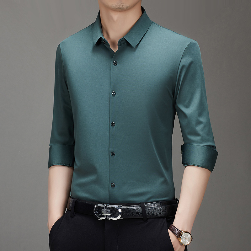 봄과 가을 비 다림질 남성용 긴팔 셔츠 고급 탄성 셔츠 중년 유행 브랜드 비즈니스 작업 옷 캐주얼 POIO 셔츠스토어 가기