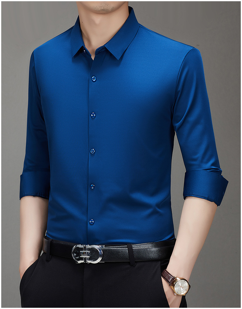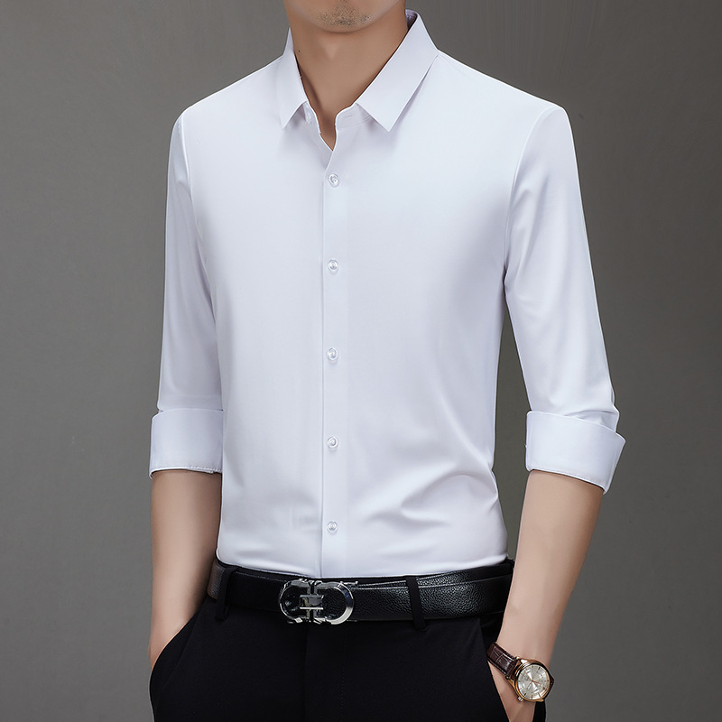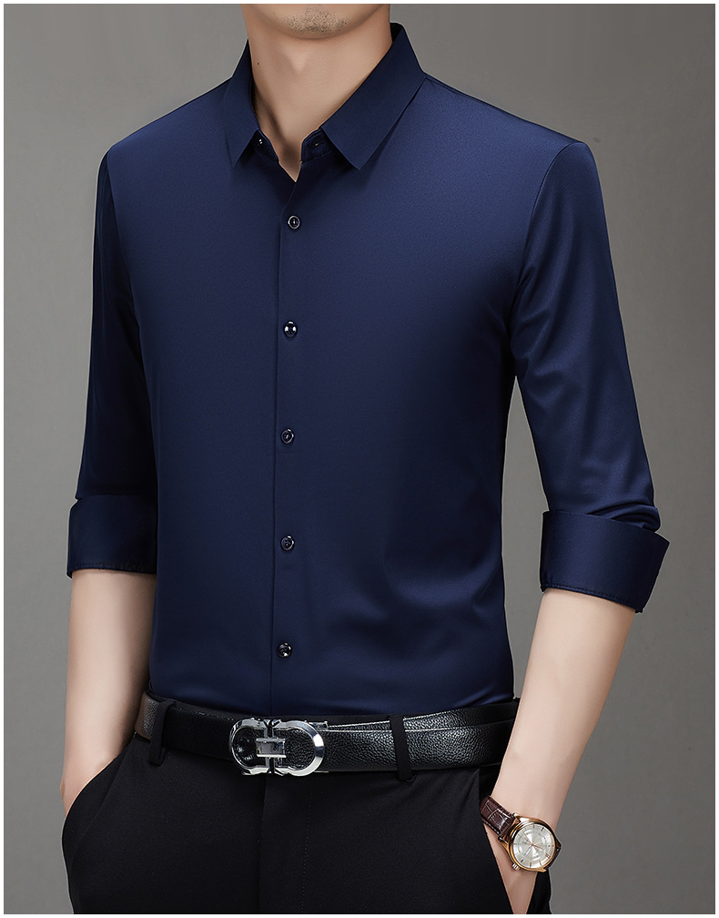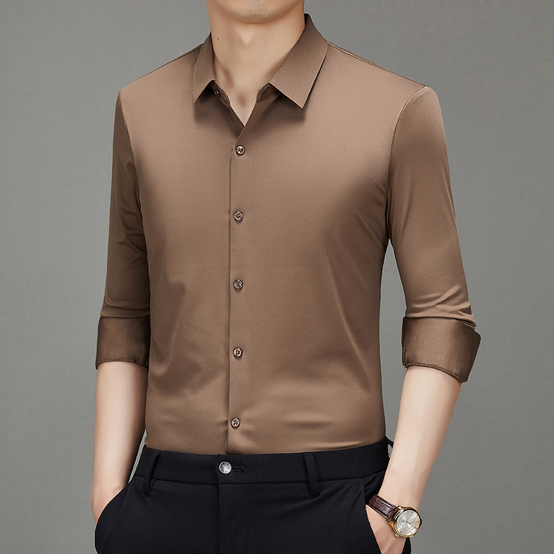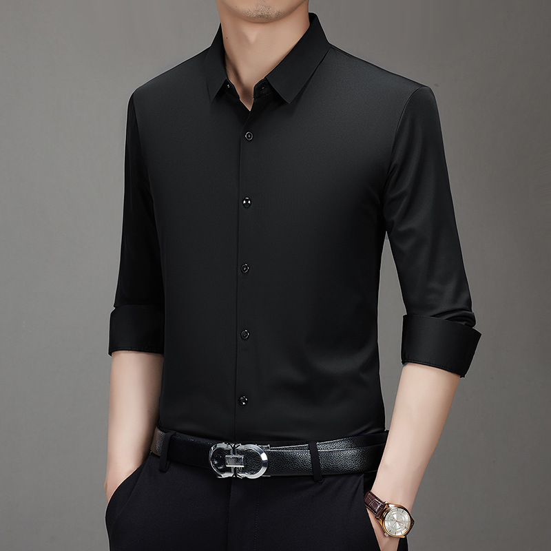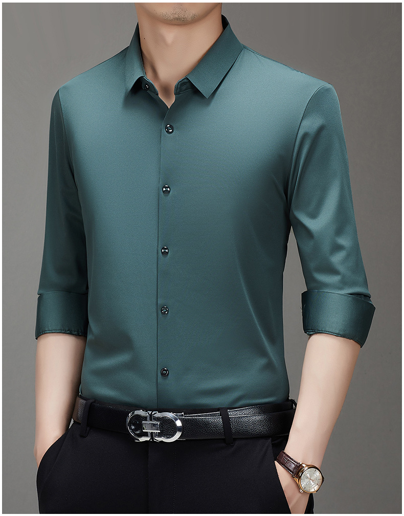 봄과 가을 비 다림질 남성용 긴팔 셔츠 고급 탄성 셔츠 중년 유행 브랜드 비즈니스 작업 옷 캐주얼 POIO 셔츠스토어 가기