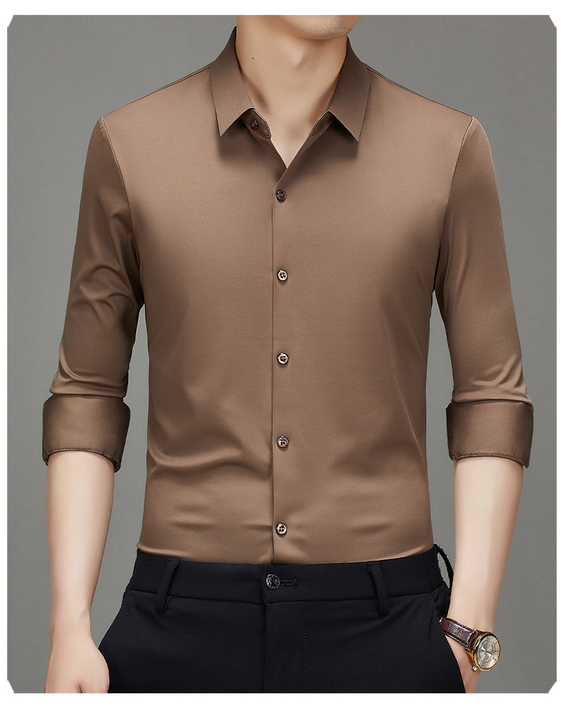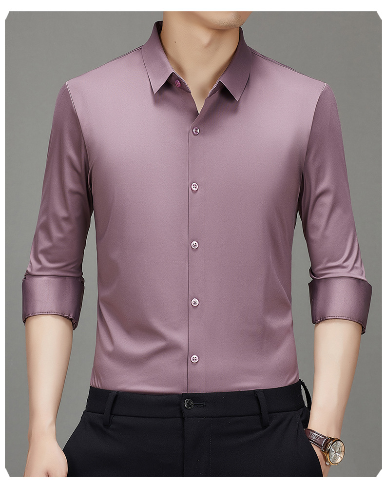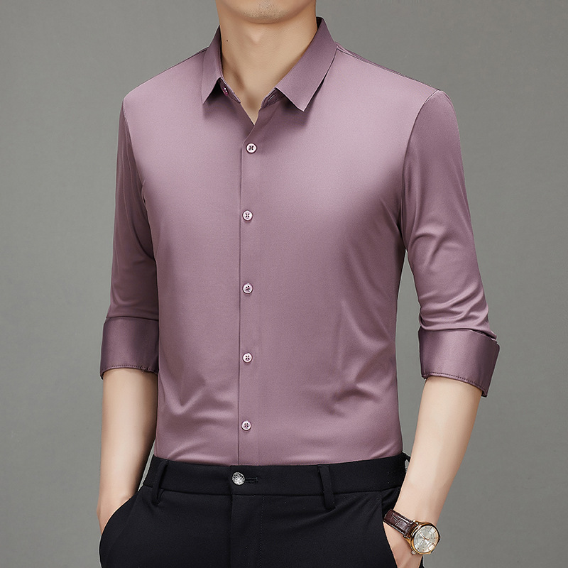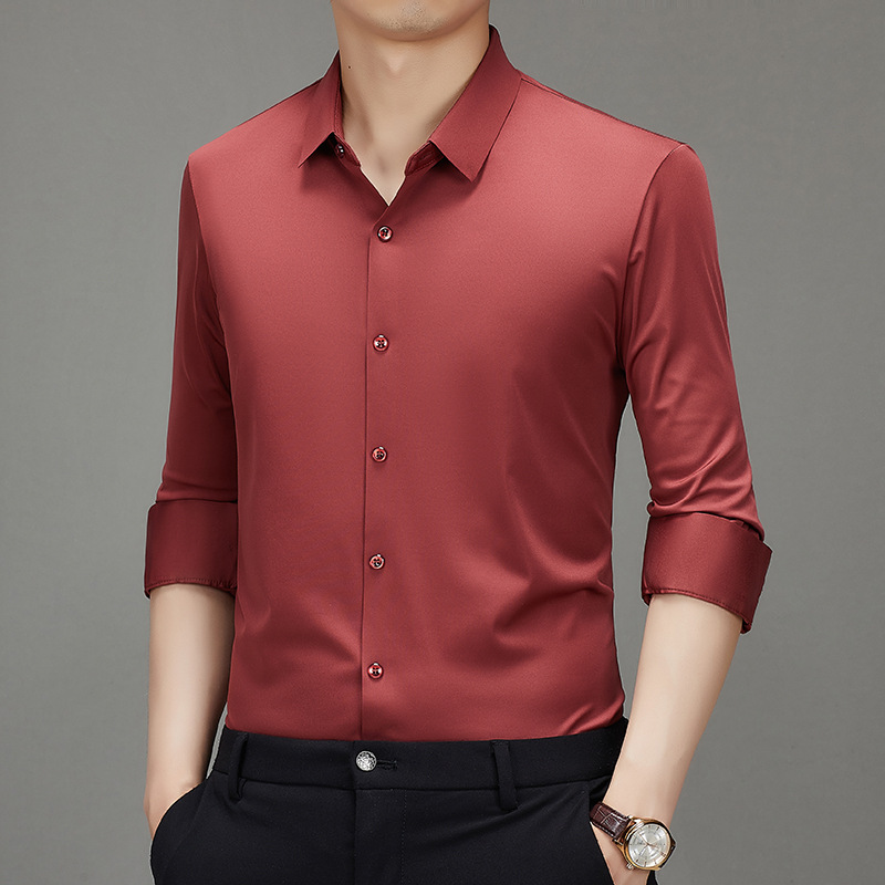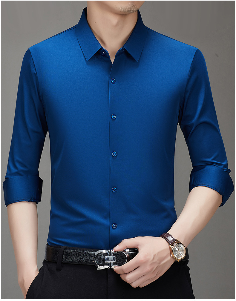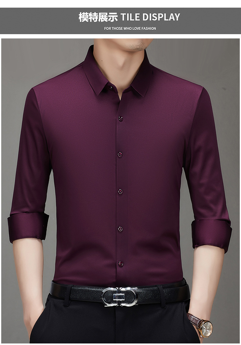 봄과 가을 비 다림질 남성용 긴팔 셔츠 고급 탄성 셔츠 중년 유행 브랜드 비즈니스 작업 옷 캐주얼 POIO 셔츠스토어 가기