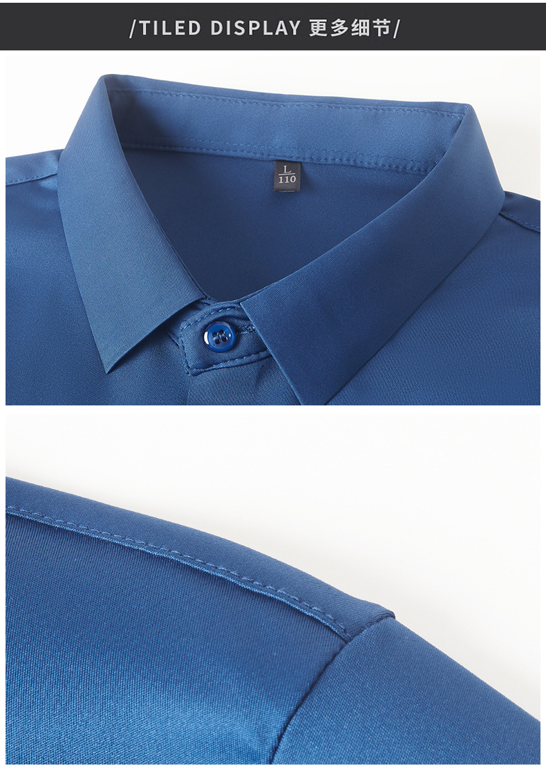 봄과 가을 비 다림질 남성용 긴팔 셔츠 고급 탄성 셔츠 중년 유행 브랜드 비즈니스 작업 옷 캐주얼 POIO 셔츠