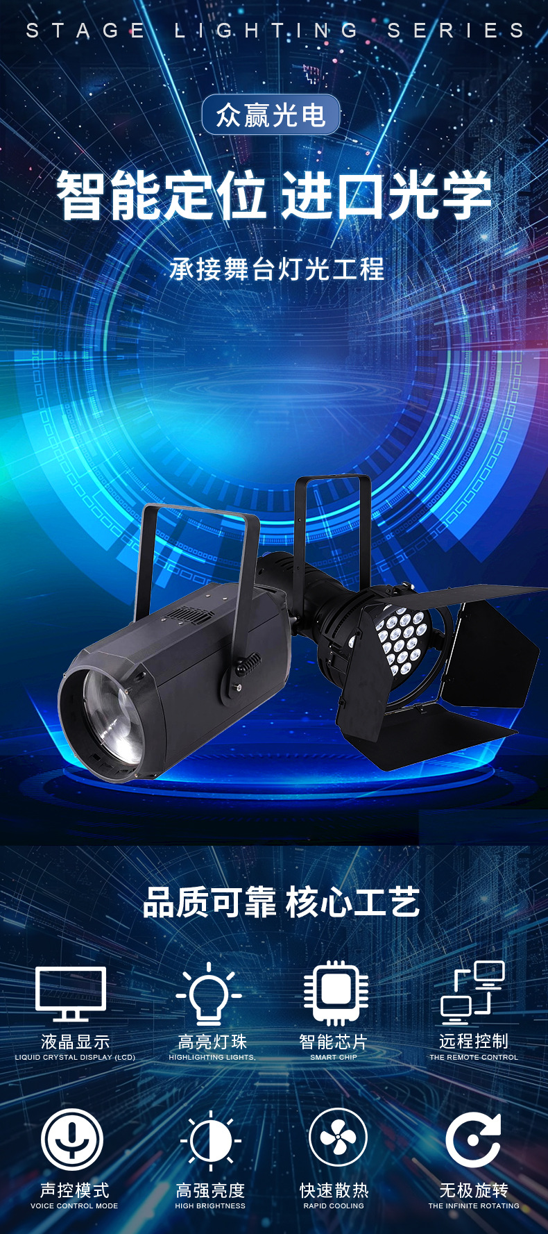 도매 지능형 실내 LED 조명 COB 초점 표면 밝은 색상 염색 빛 원격 자동 쇼 빛