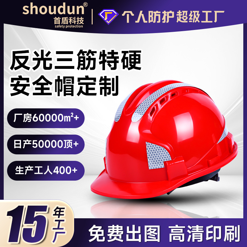 첫 번째 보호 헬멧, 건설 현장 반사 삼중 통기성 노동 보호 건설 로고 반사 스트립 안전모 통기형스토어 가기