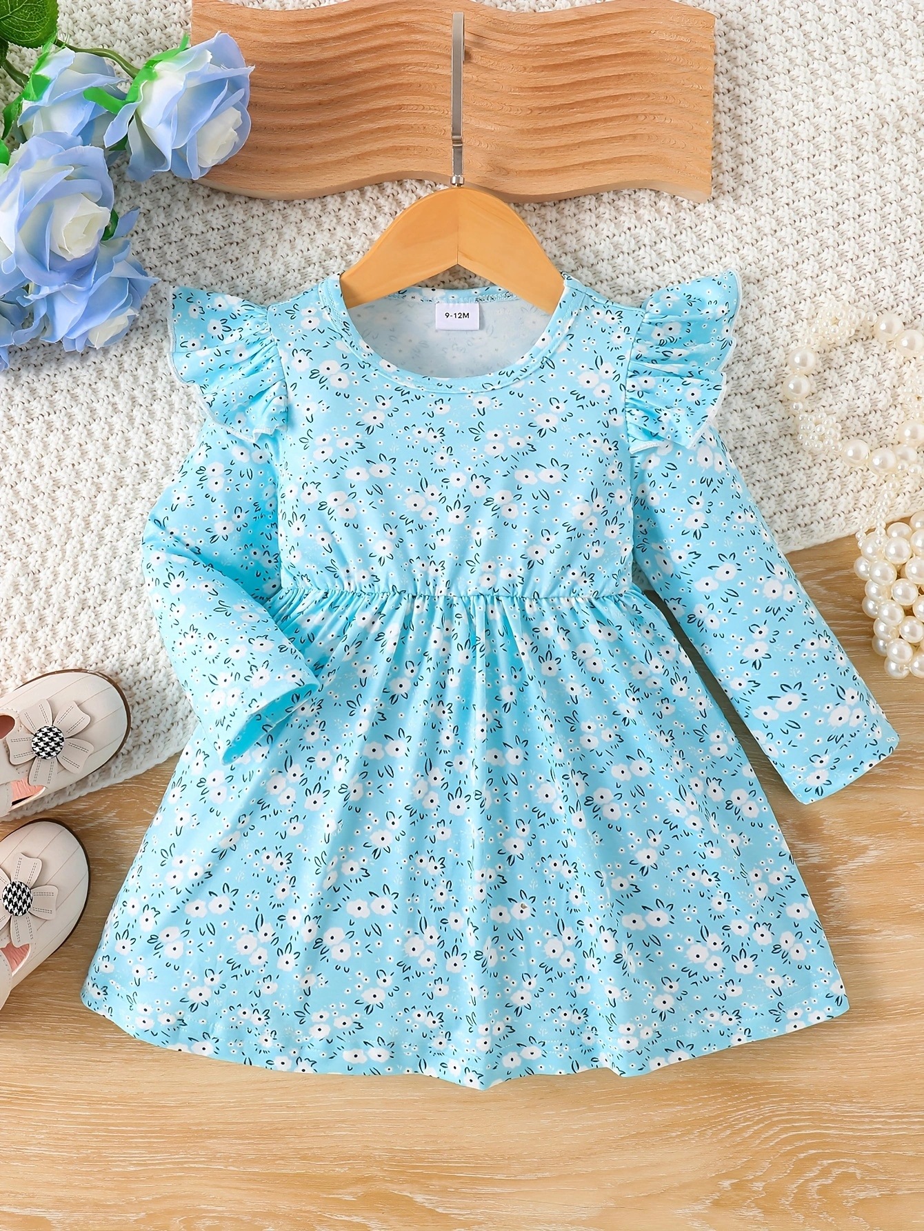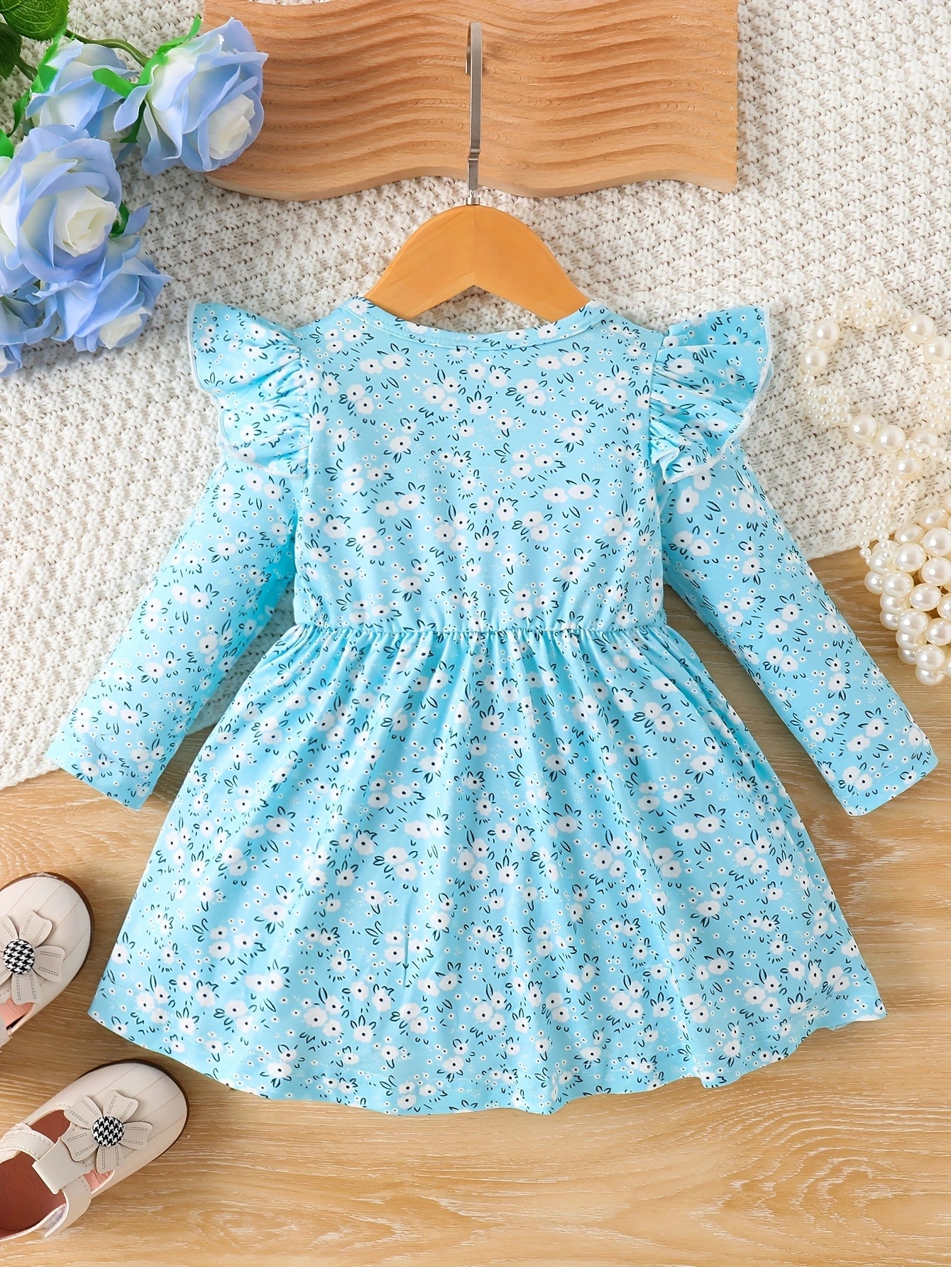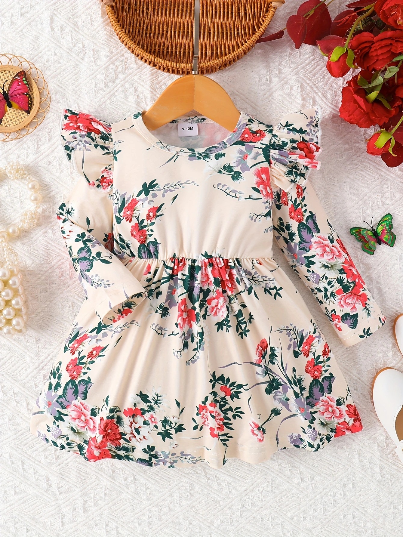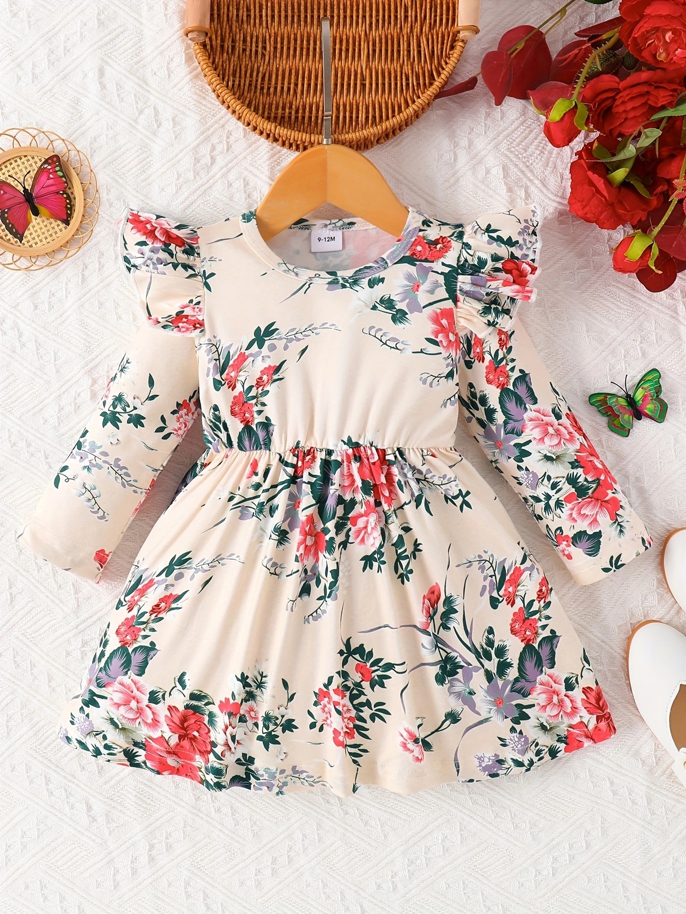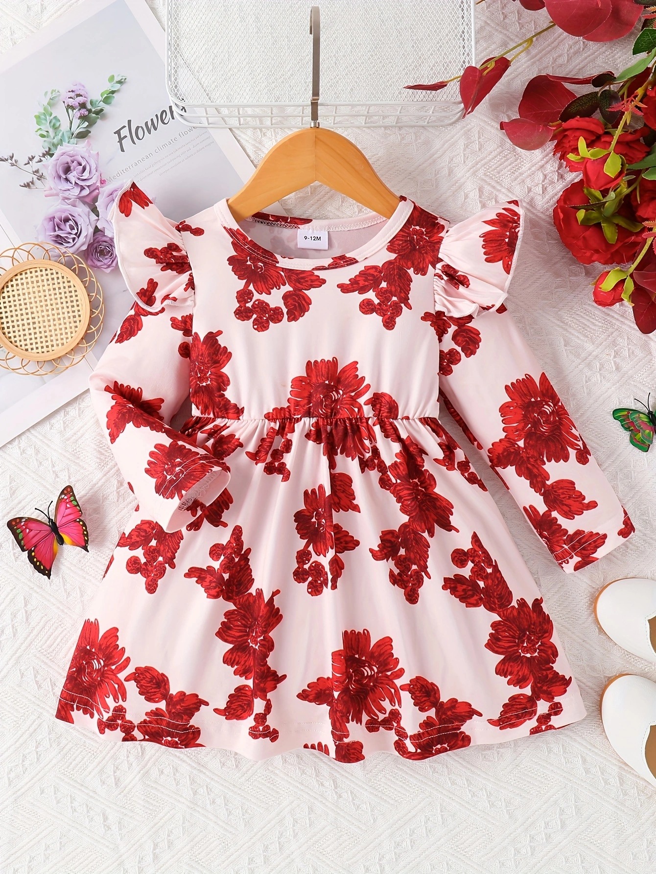 국경 INS 아기 소녀 봄과 가을 둥근 목 터틀넥 플라잉 슬리브 꽃 프린트 긴 소매 원피스 트렌디스토어 가기