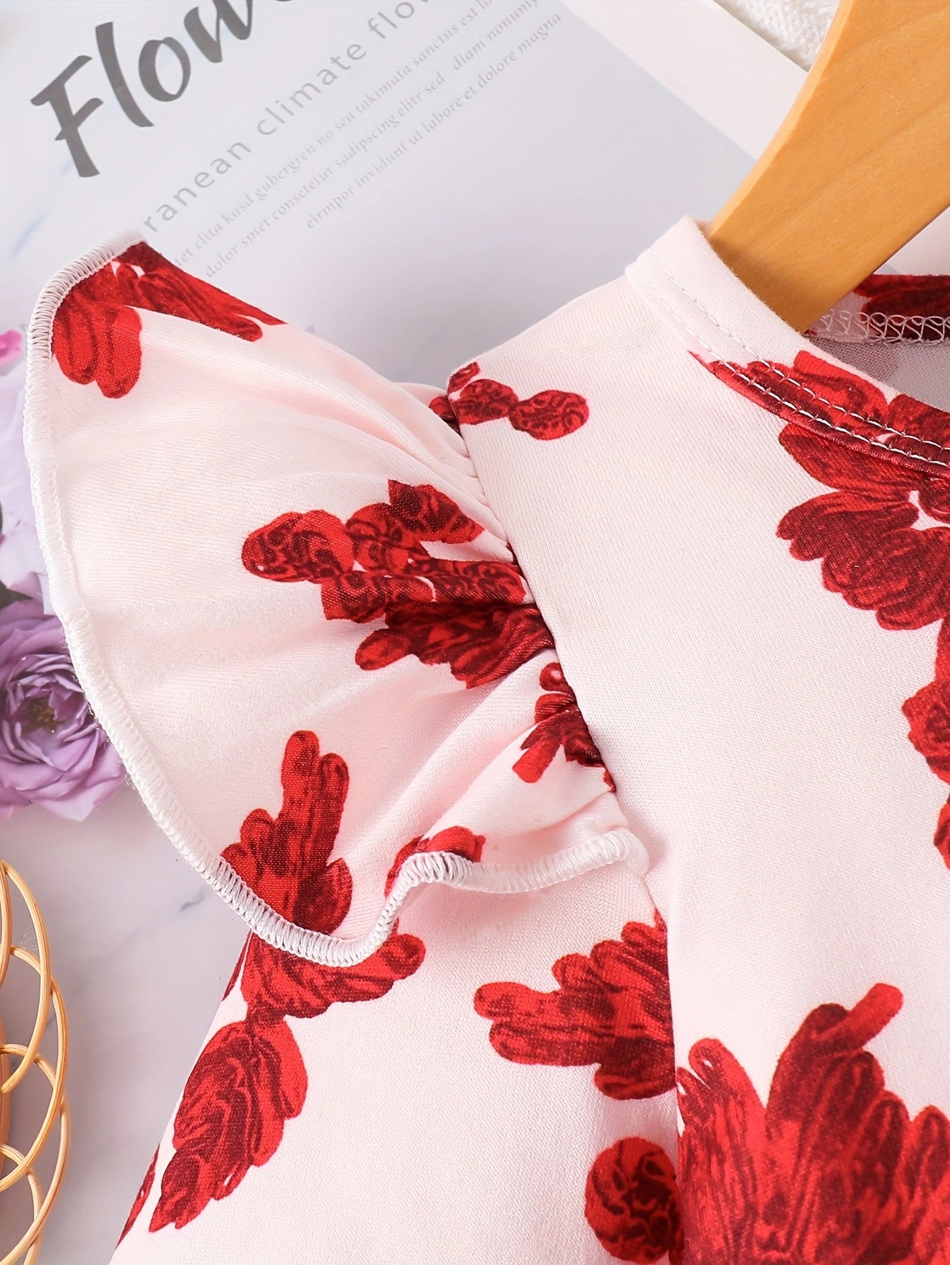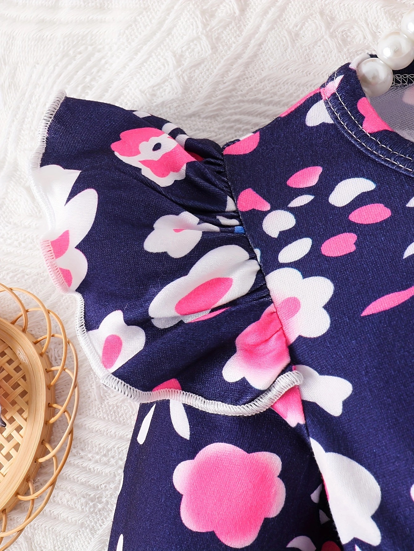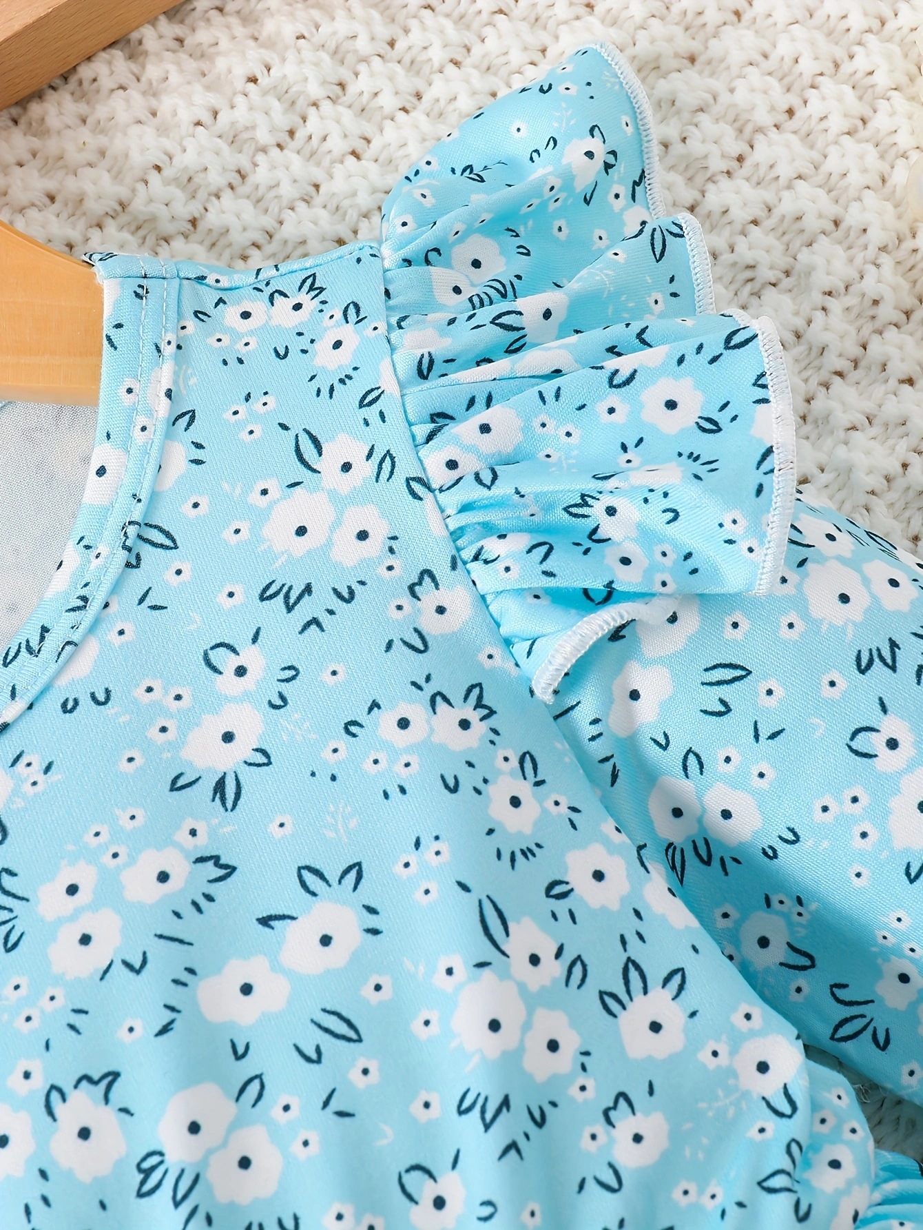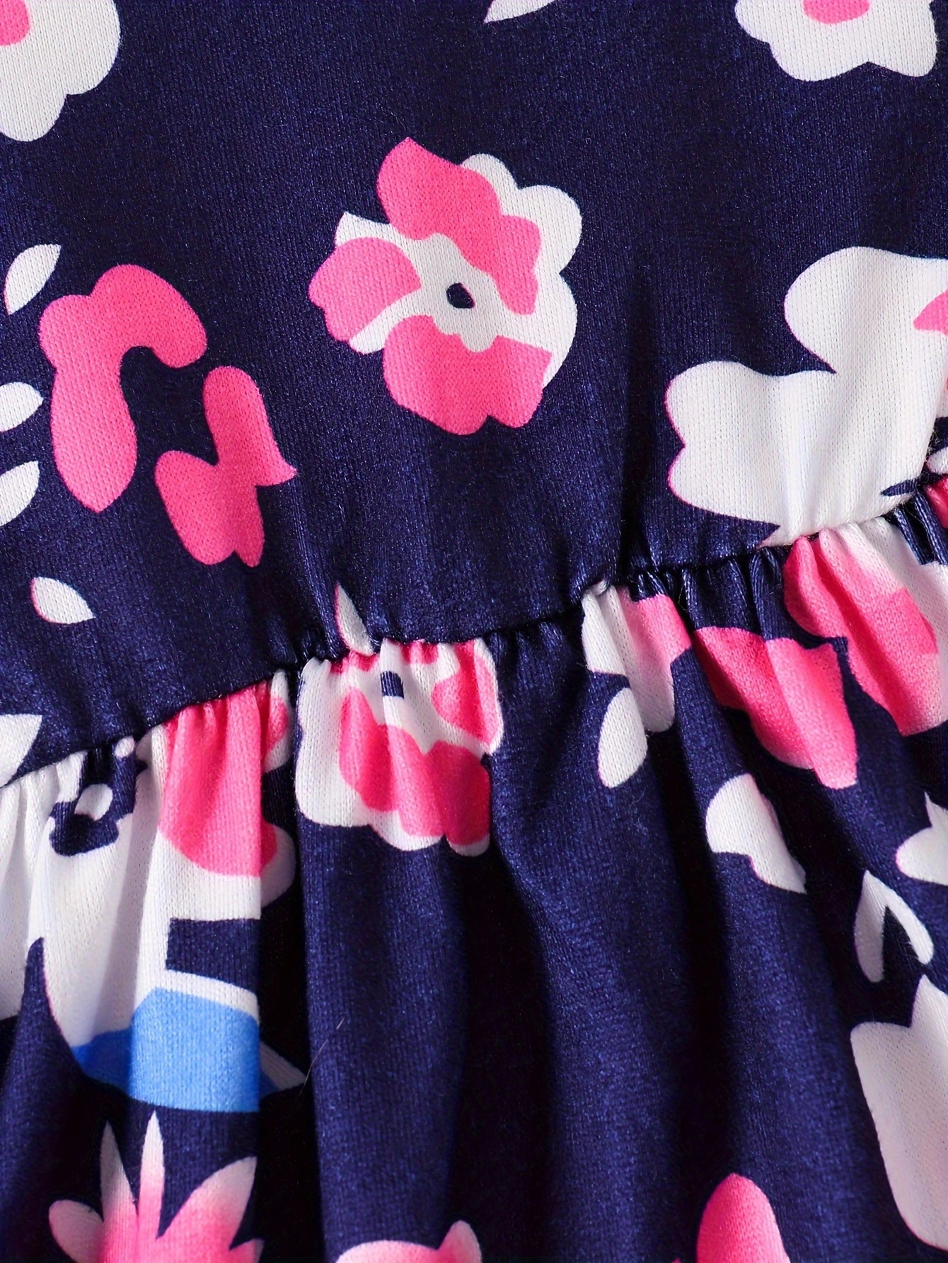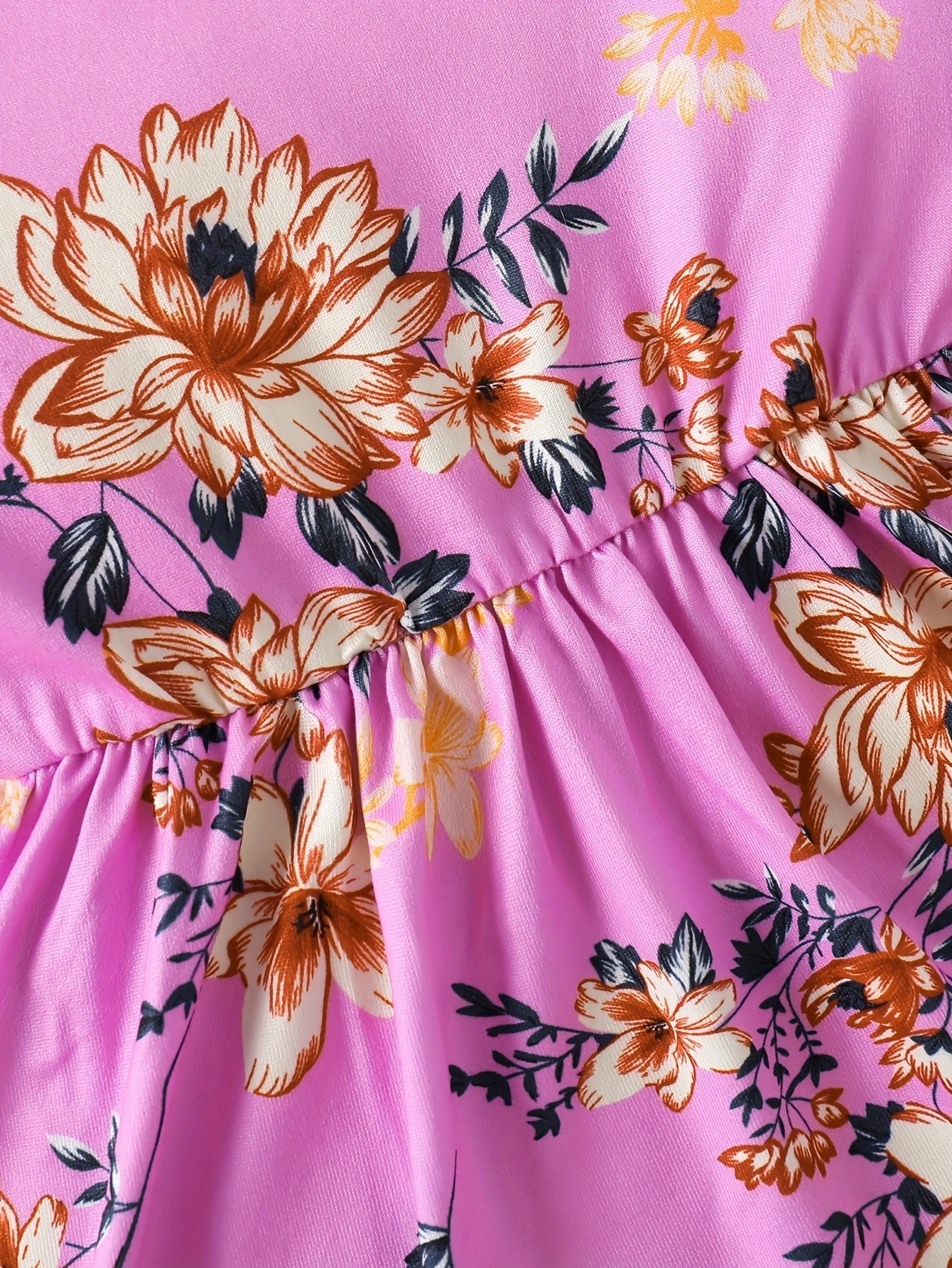 국경 INS 아기 소녀 봄과 가을 둥근 목 터틀넥 플라잉 슬리브 꽃 프린트 긴 소매 원피스 트렌디스토어 가기
