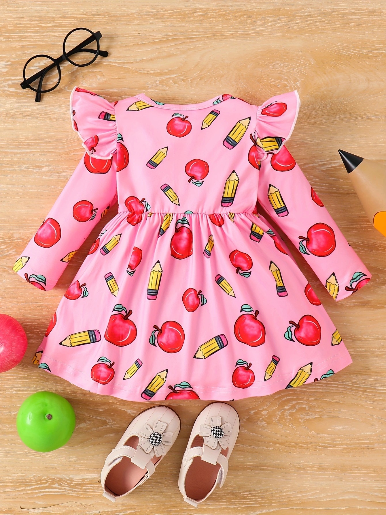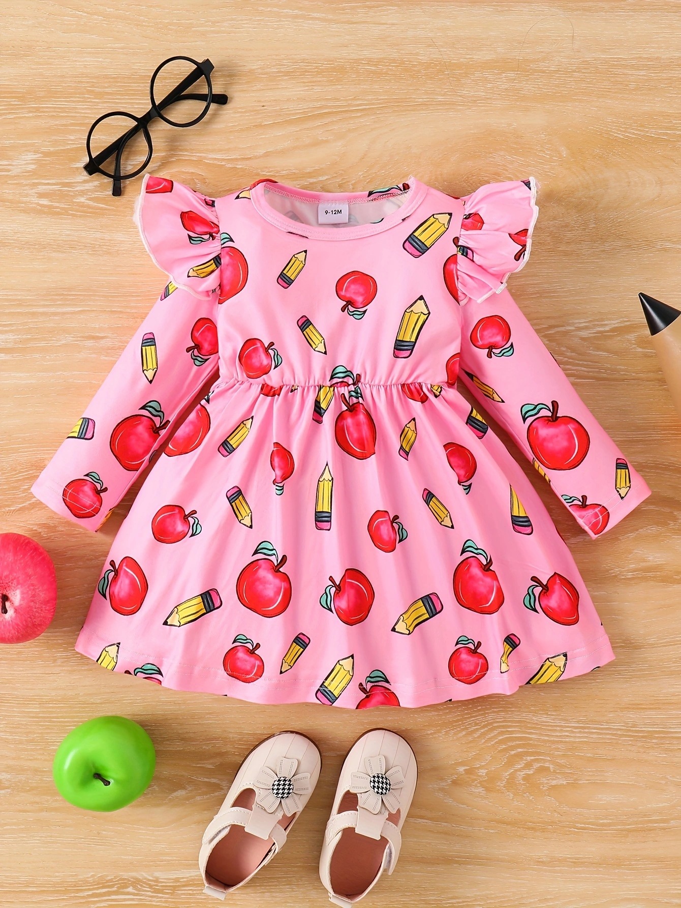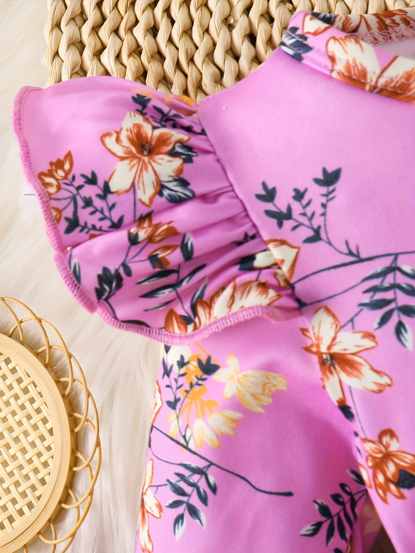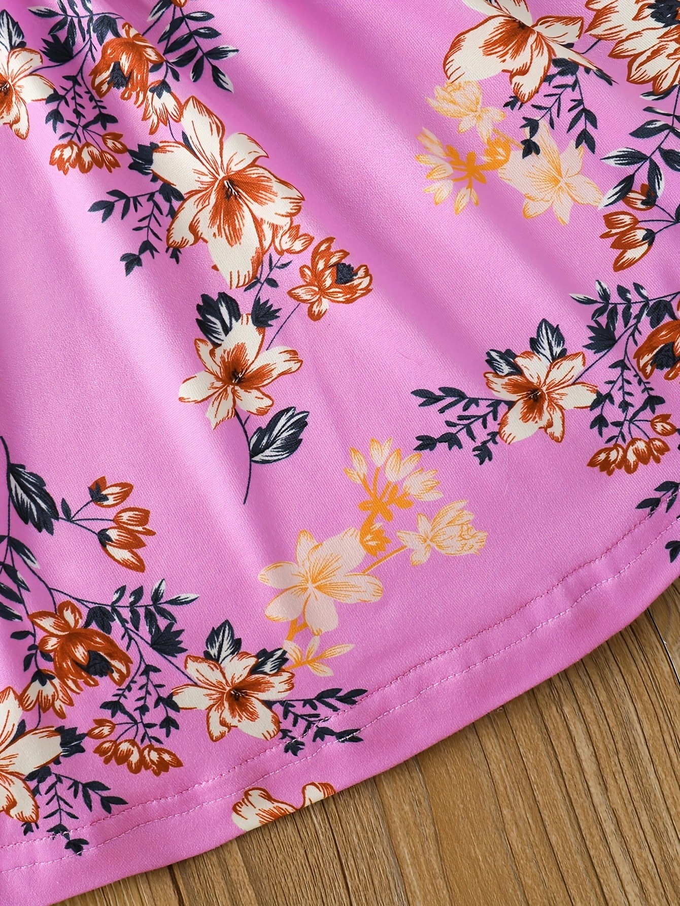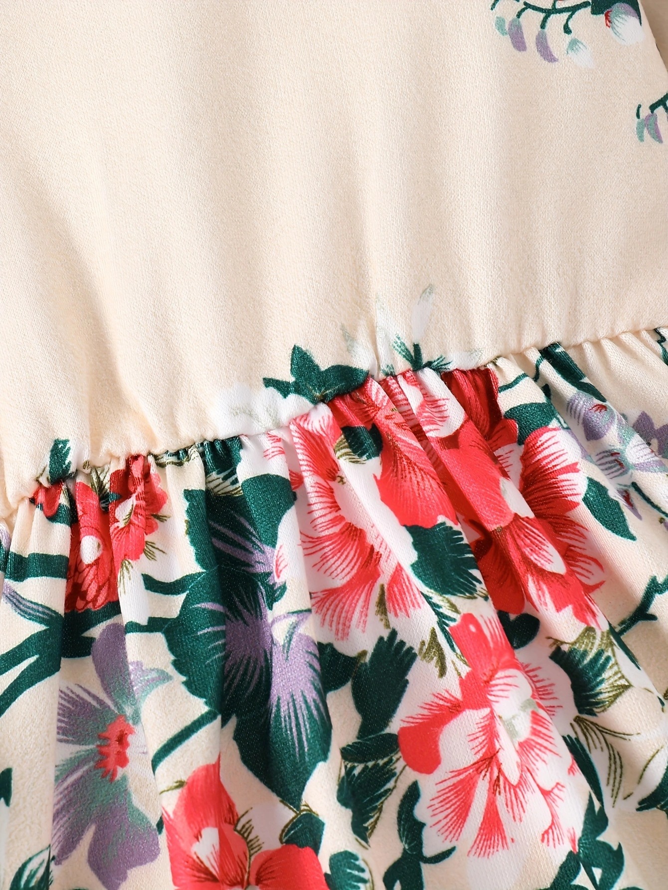 국경 INS 아기 소녀 봄과 가을 둥근 목 터틀넥 플라잉 슬리브 꽃 프린트 긴 소매 원피스 트렌디스토어 가기