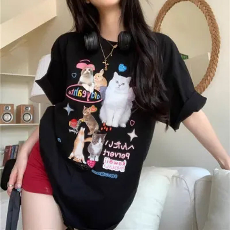 2024 년 여름 한국 스타일 새로운 반팔 티셔츠 여성 느슨한 캐주얼 올 매치 어깨 슬리밍 탑스토어 가기