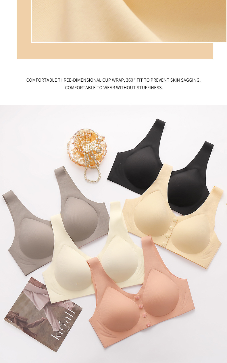무봉제 아이스 실크 중노년 여성용 앞후크 브라, 푸쉬업 고정컵, 얇은 스타일, 엄마들을 위한 조끼형 스포츠 브라, 여성 브라