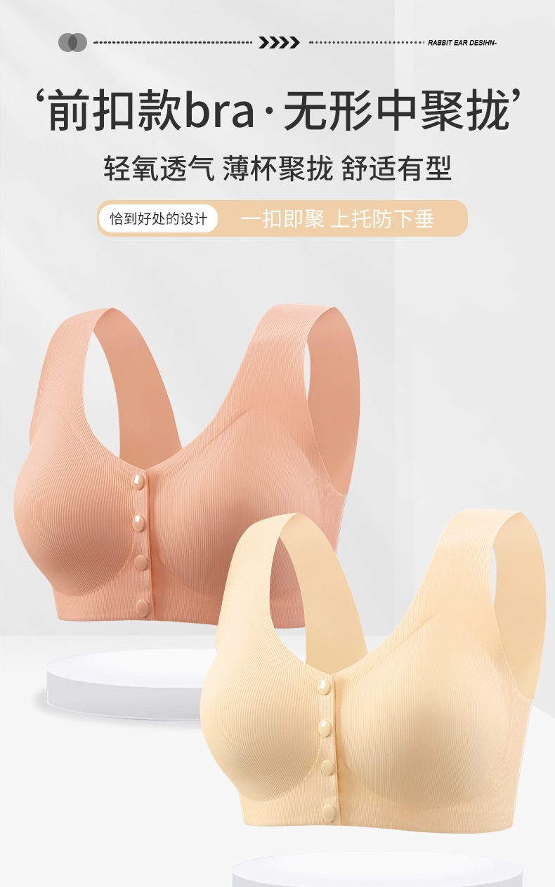 무봉제 아이스 실크 중노년 여성용 앞후크 브라, 푸쉬업 고정컵, 얇은 스타일, 엄마들을 위한 조끼형 스포츠 브라, 여성 브라스토어 가기