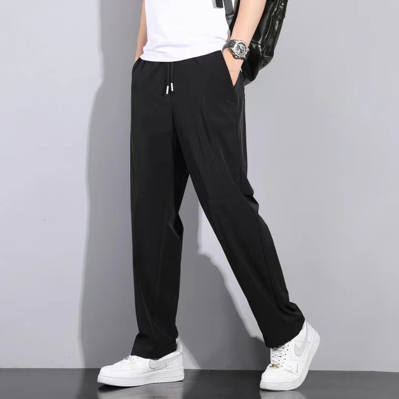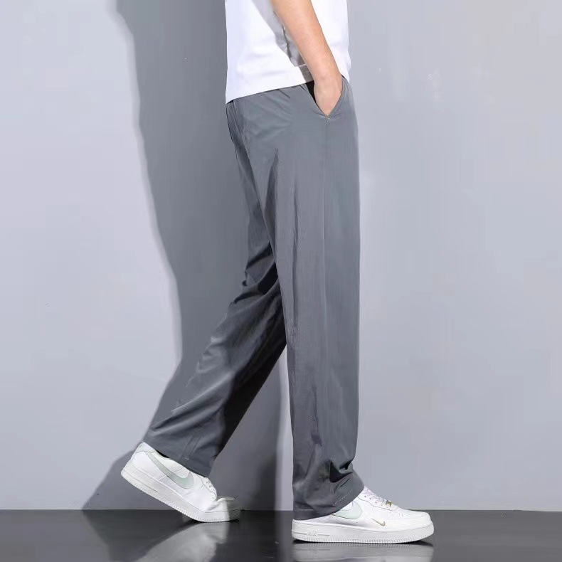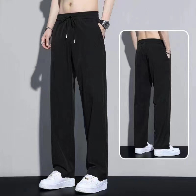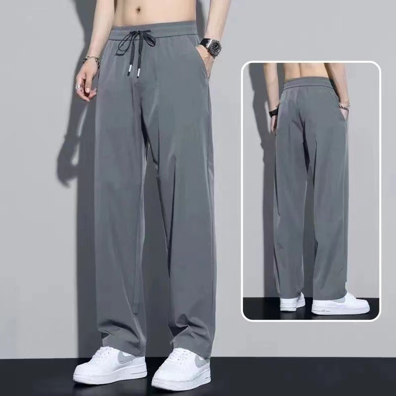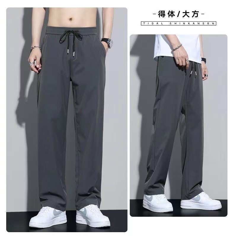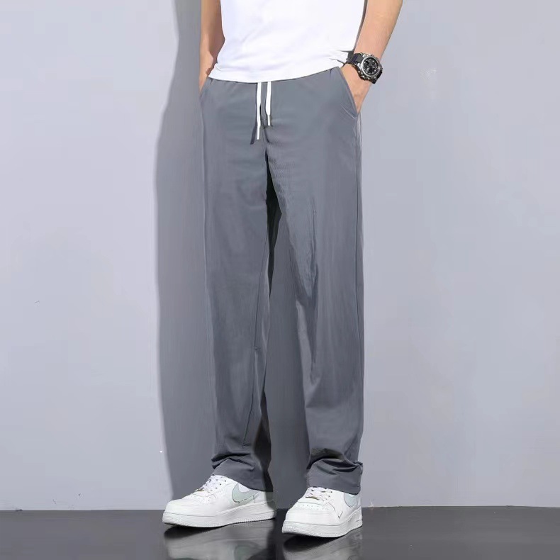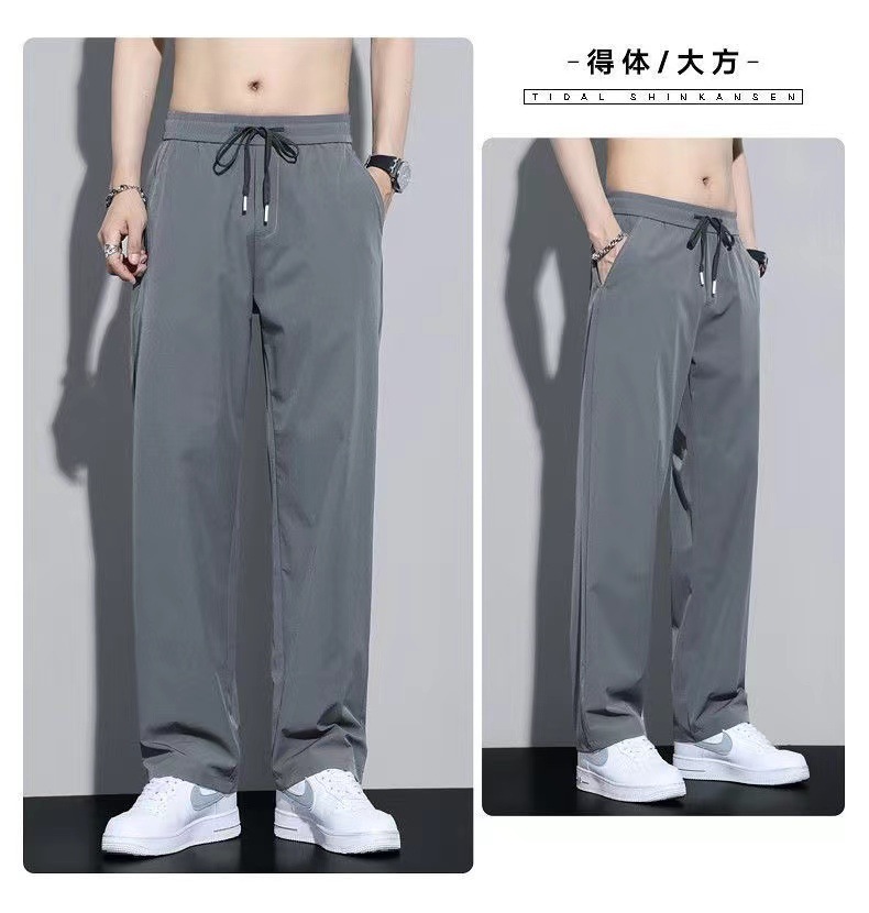 남성용 트렌디 아이스 실크 쿨 팬츠 2025 여름 신작 루즈 스트레이트 드레이프 속건성 드레이프 캐주얼 바지스토어 가기
