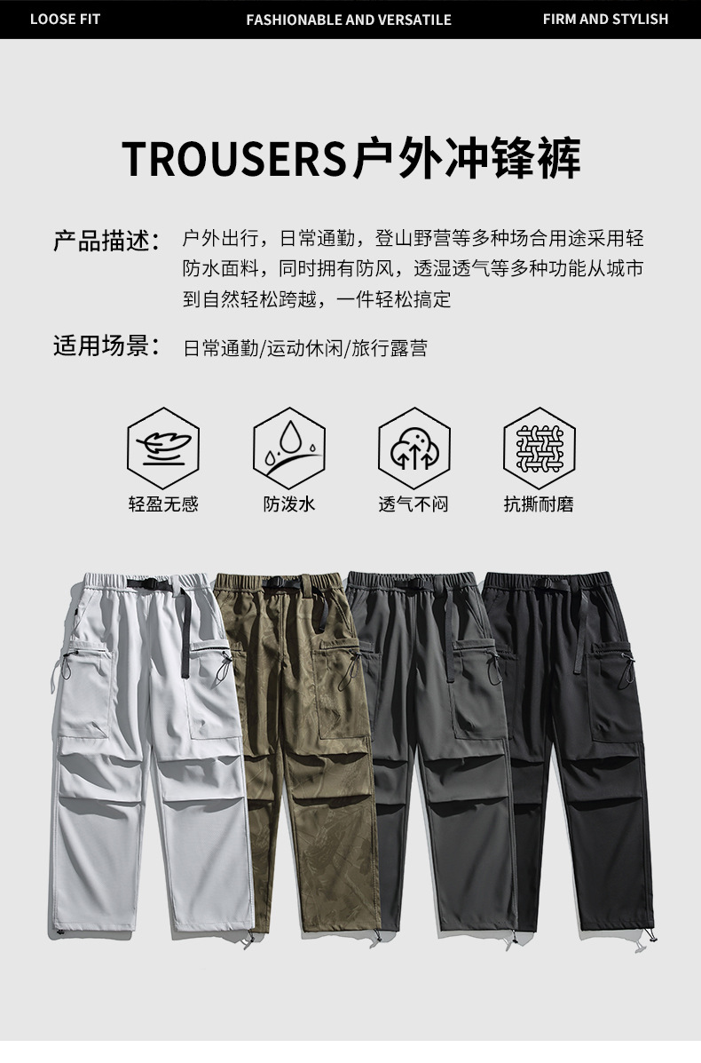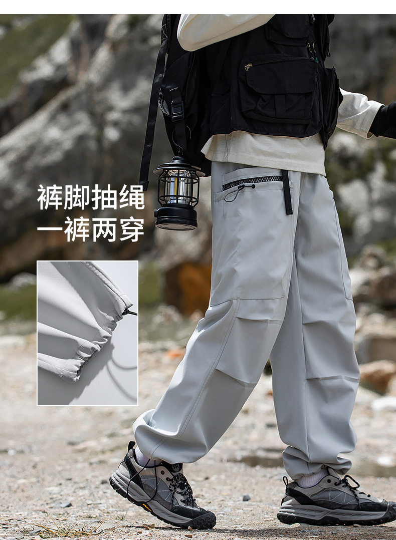 IZEXX 트렌디 브랜드 방수 스트레이트 팬츠 봄가을 산악 스타일 아웃도어 아메리칸 스타일 낙하산군 바지 투웨이 워크웨어 팬츠 남성용스토어 가기