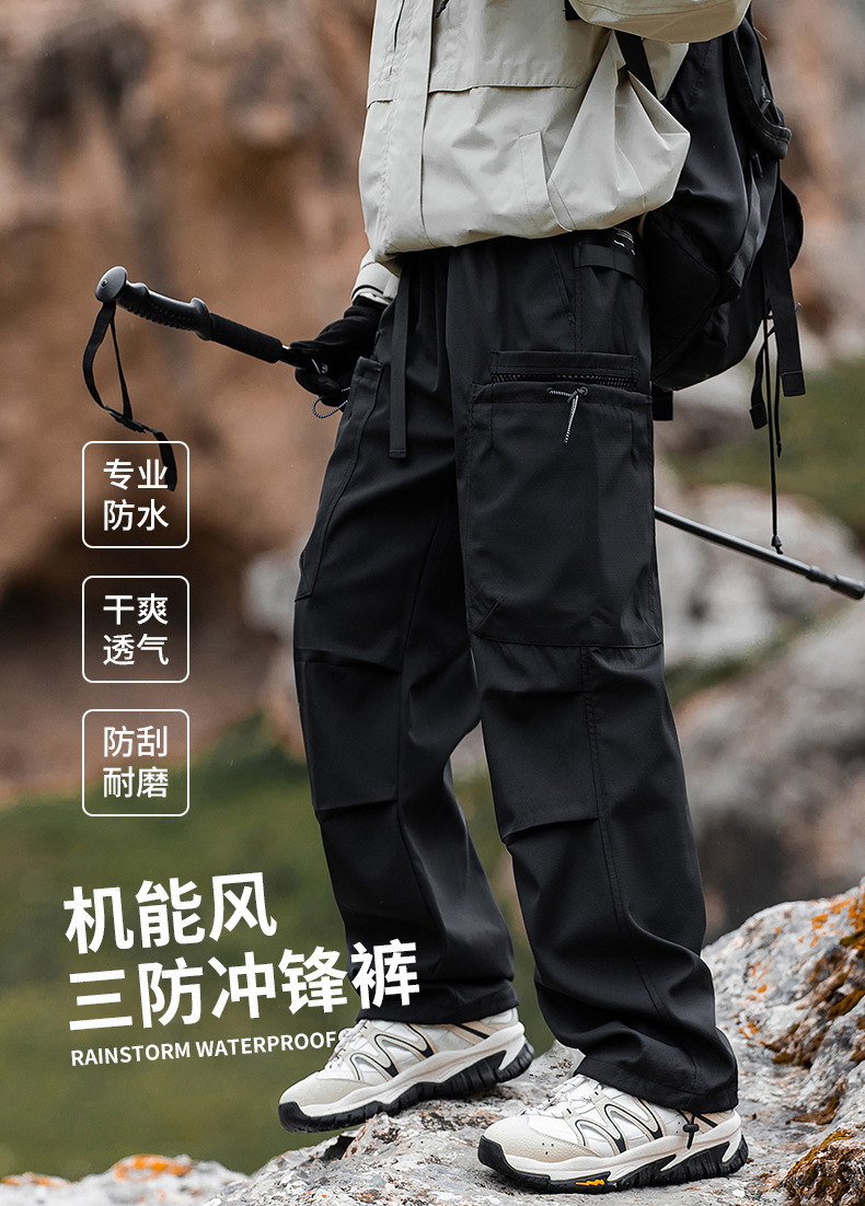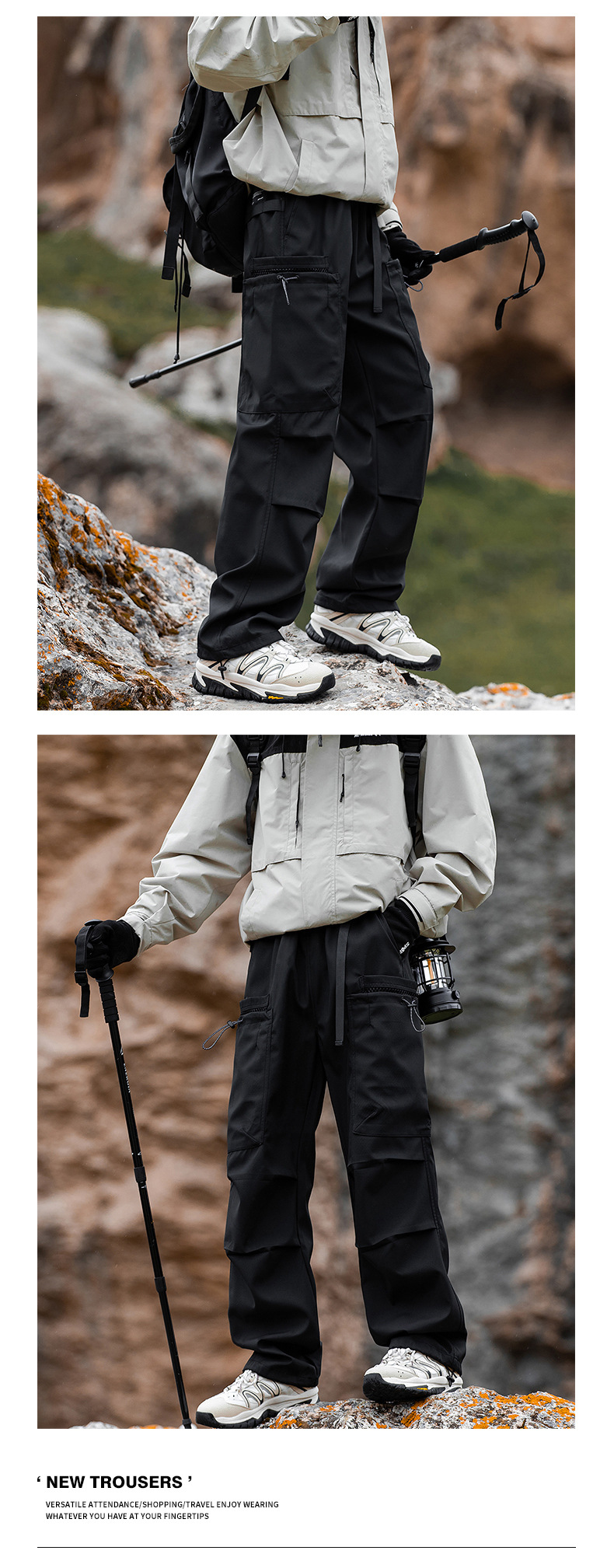 IZEXX 트렌디 브랜드 방수 스트레이트 팬츠 봄가을 산악 스타일 아웃도어 아메리칸 스타일 낙하산군 바지 투웨이 워크웨어 팬츠 남성용