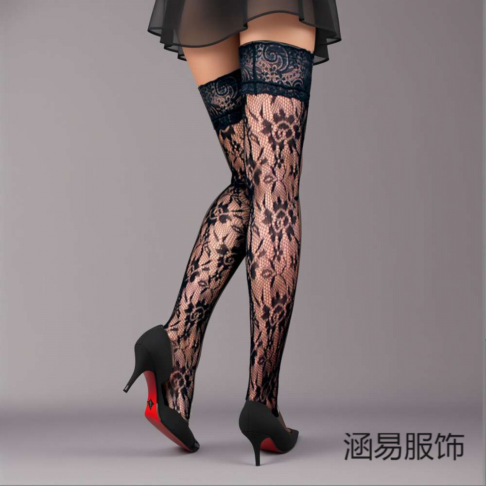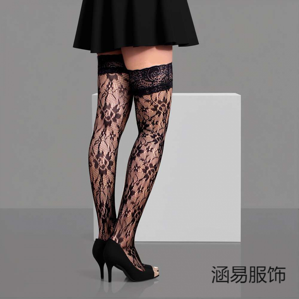 여성을위한 섹시한 대형 블랙 레이스 레이스 로즈 자카드 롱 플러스 사이즈 스타킹스토어 가기