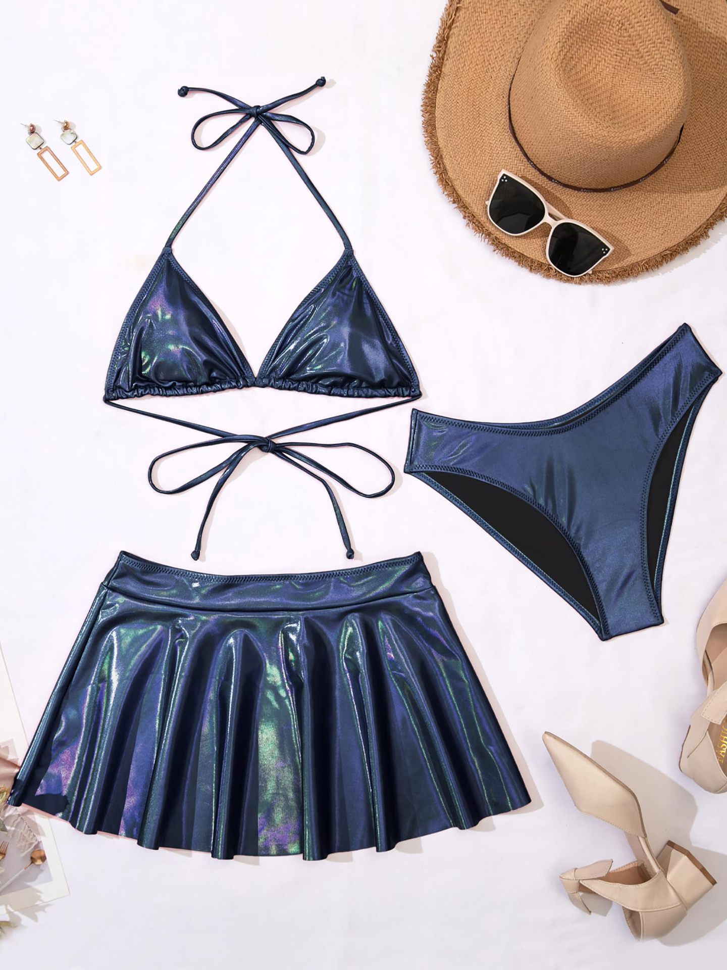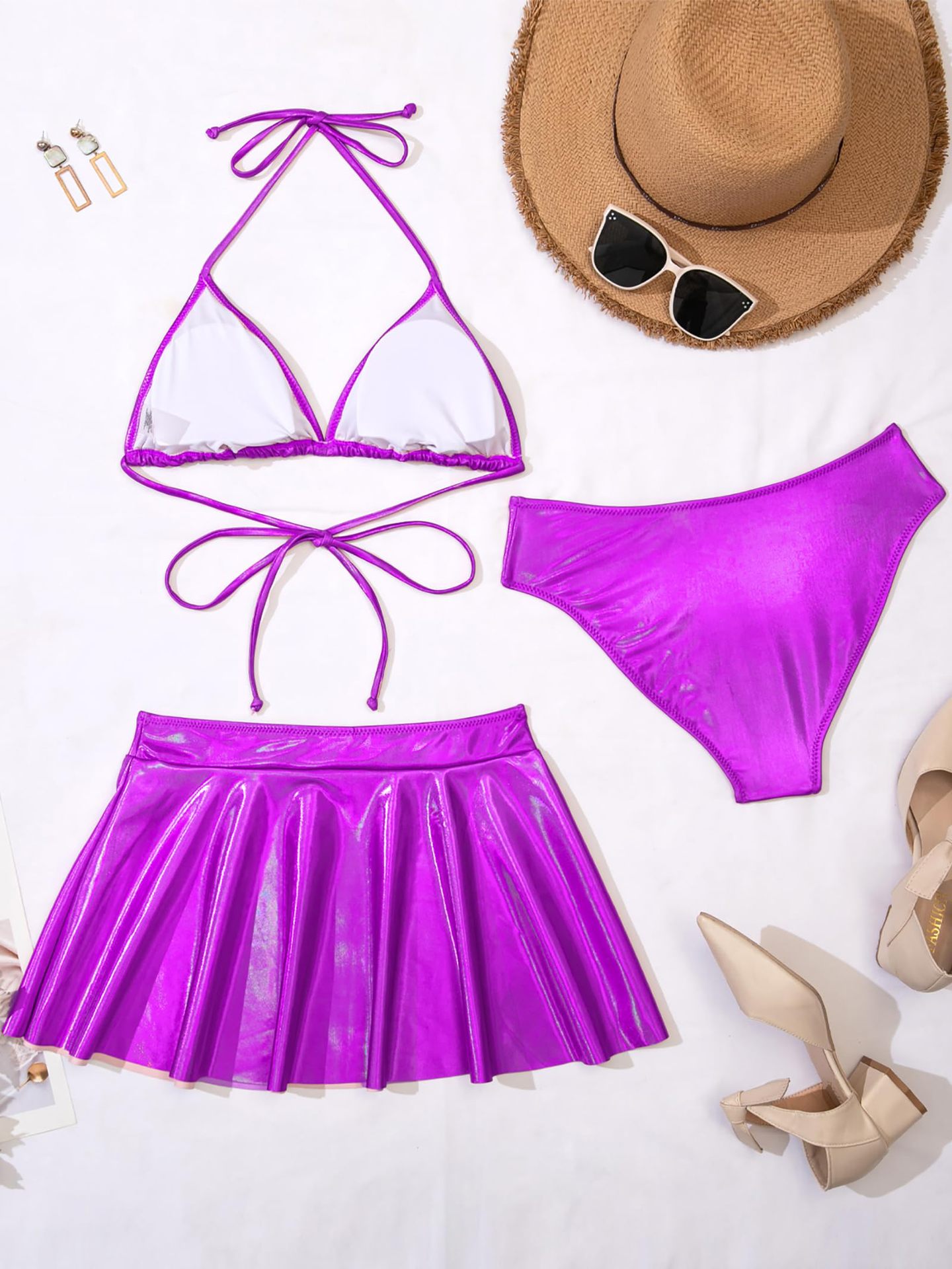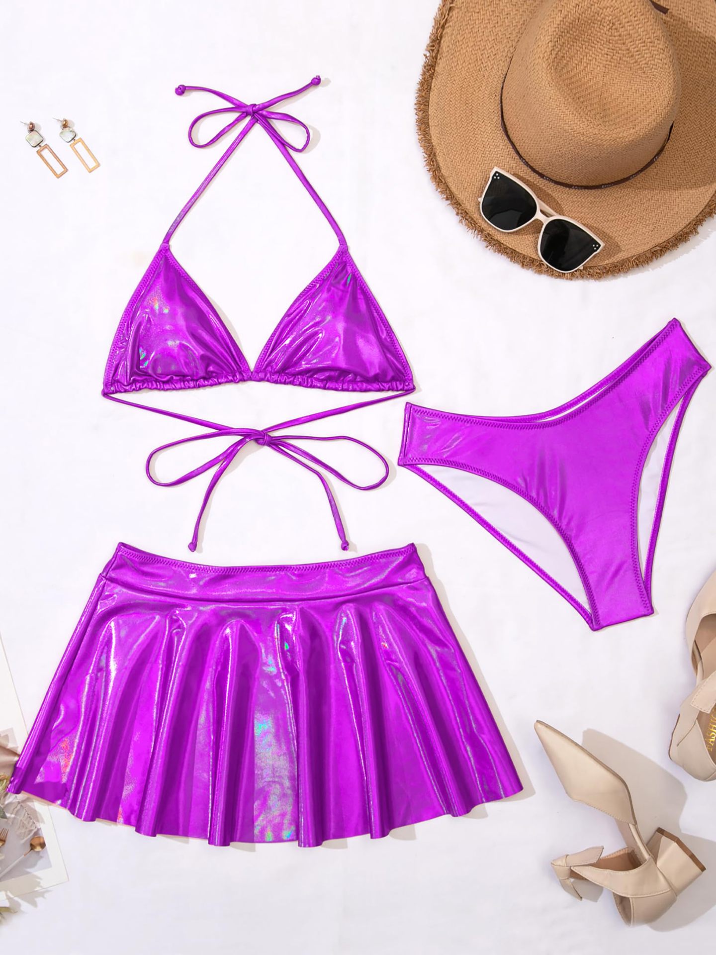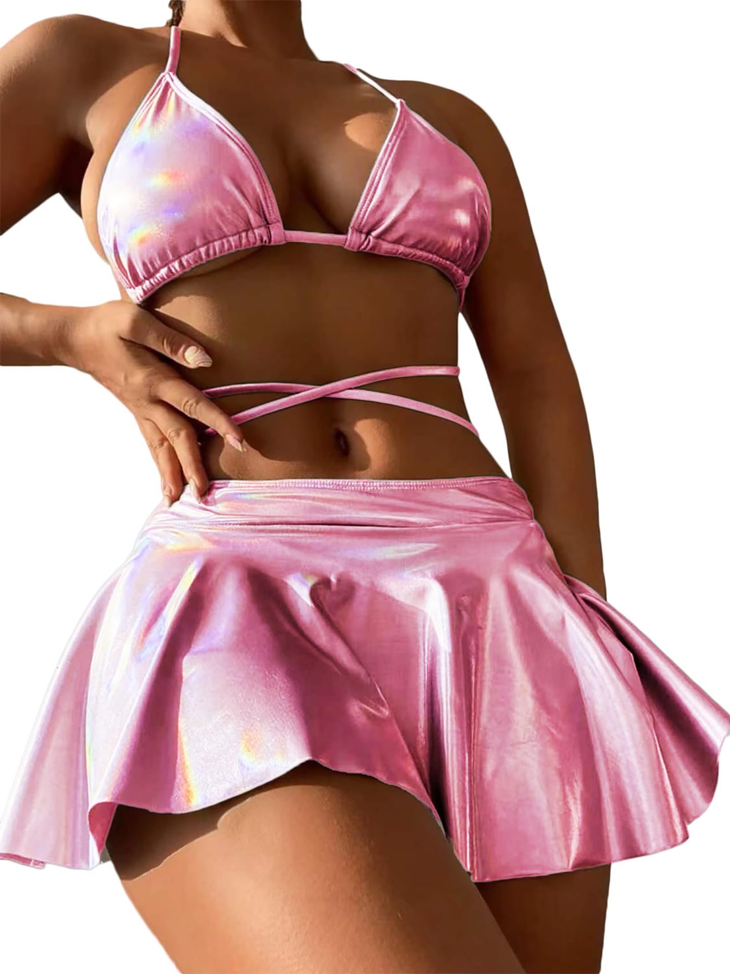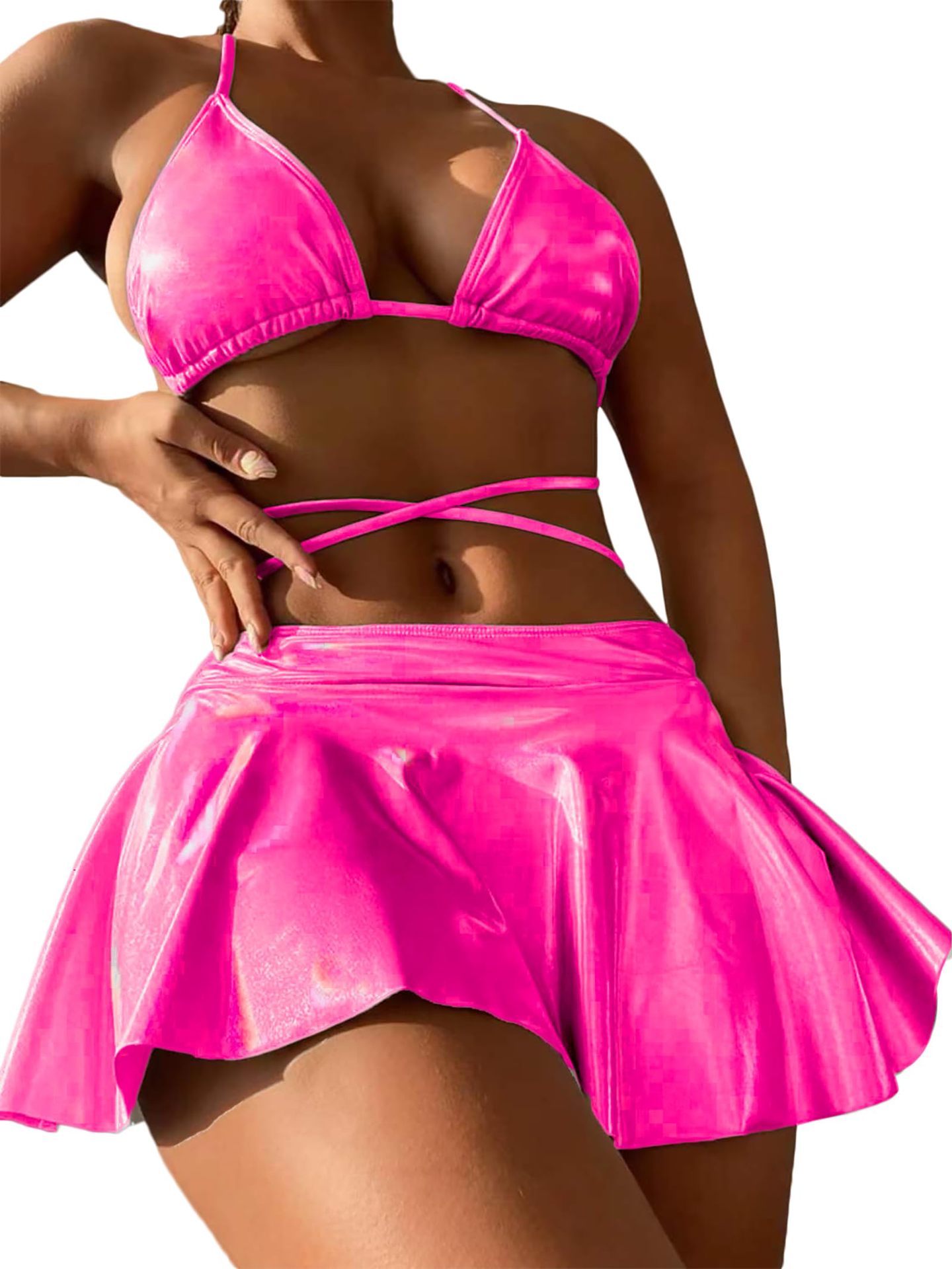 2024 새로운 유럽과 미국의 3 피스 분할 수영복 여성 섹시한 래커 비키니 아마존 대외 무역 비키니