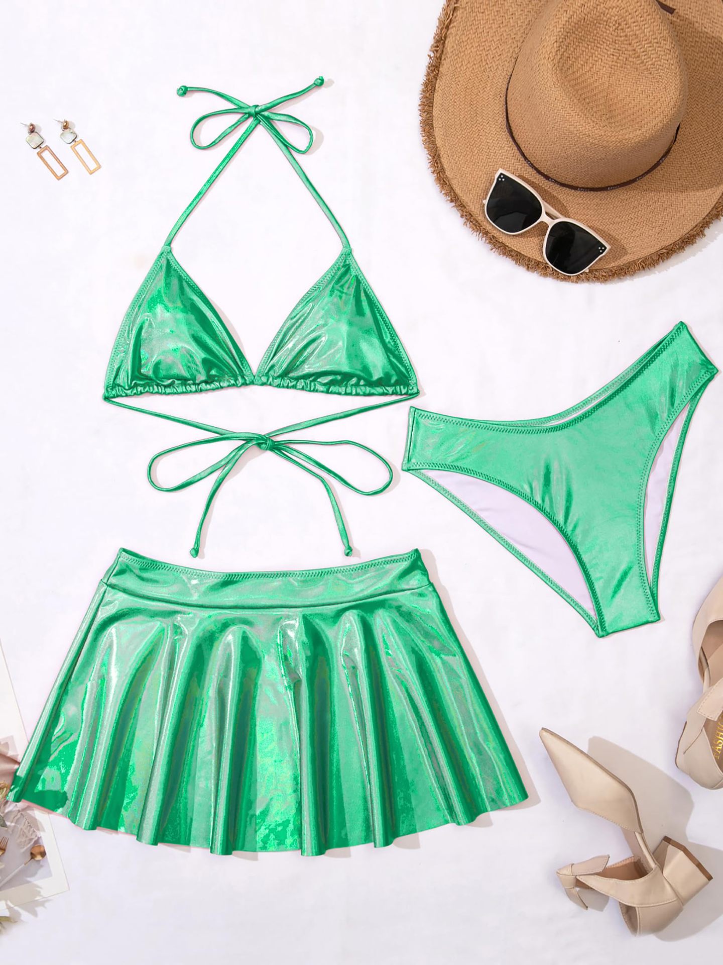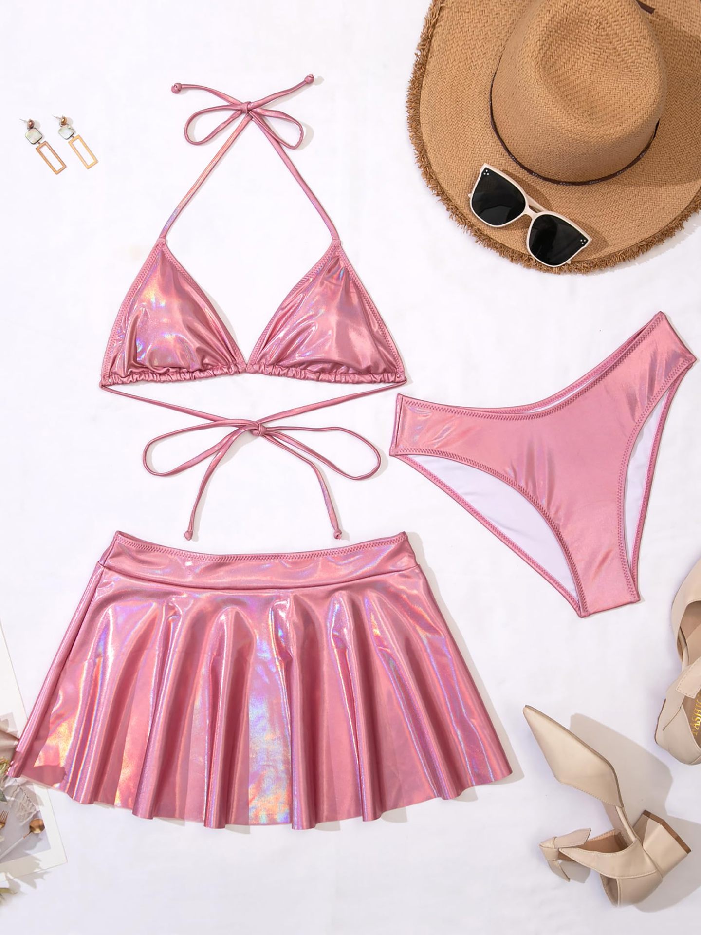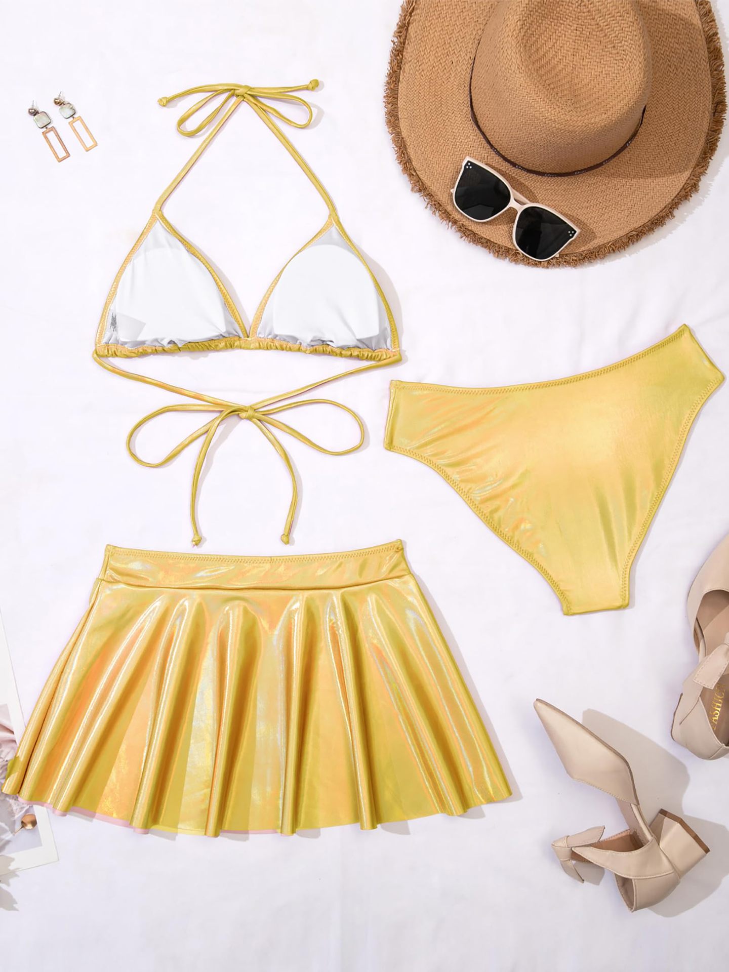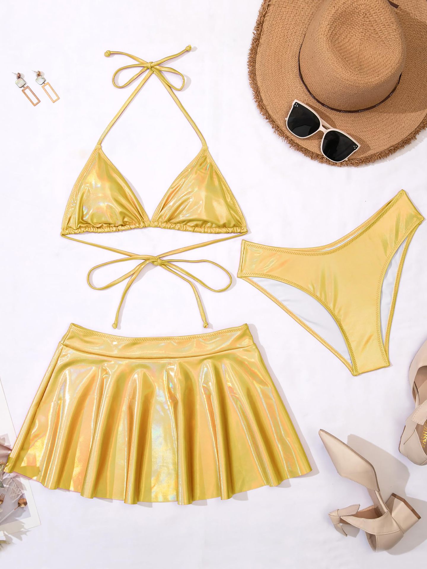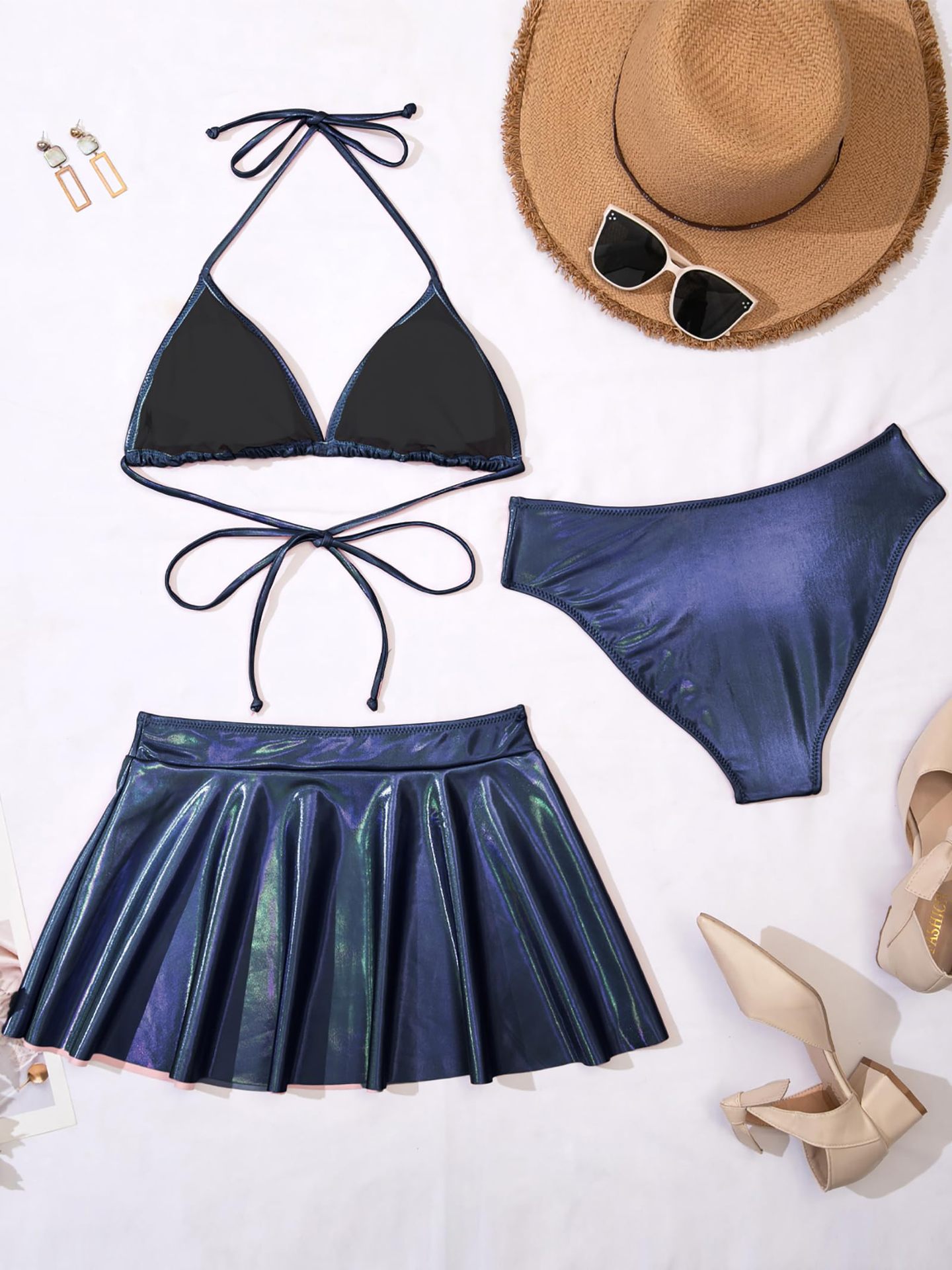 2024 새로운 유럽과 미국의 3 피스 분할 수영복 여성 섹시한 래커 비키니 아마존 대외 무역 비키니