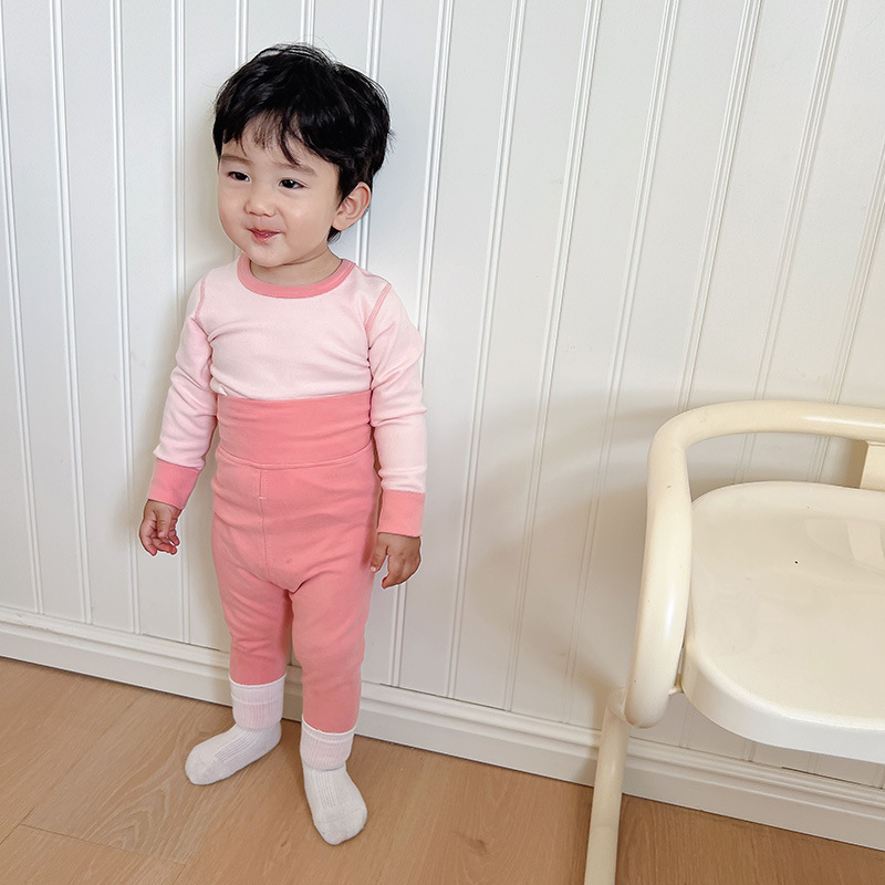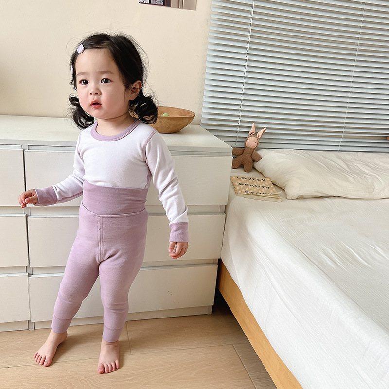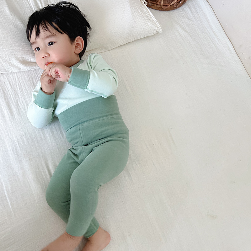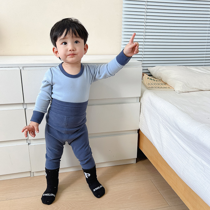 가을 옷을 세트 아기 열 속옷 가을 바지 따뜻한 코어 벨벳 아기 높은 허리 배 보호 어린이 분할 기본 가을과 겨울