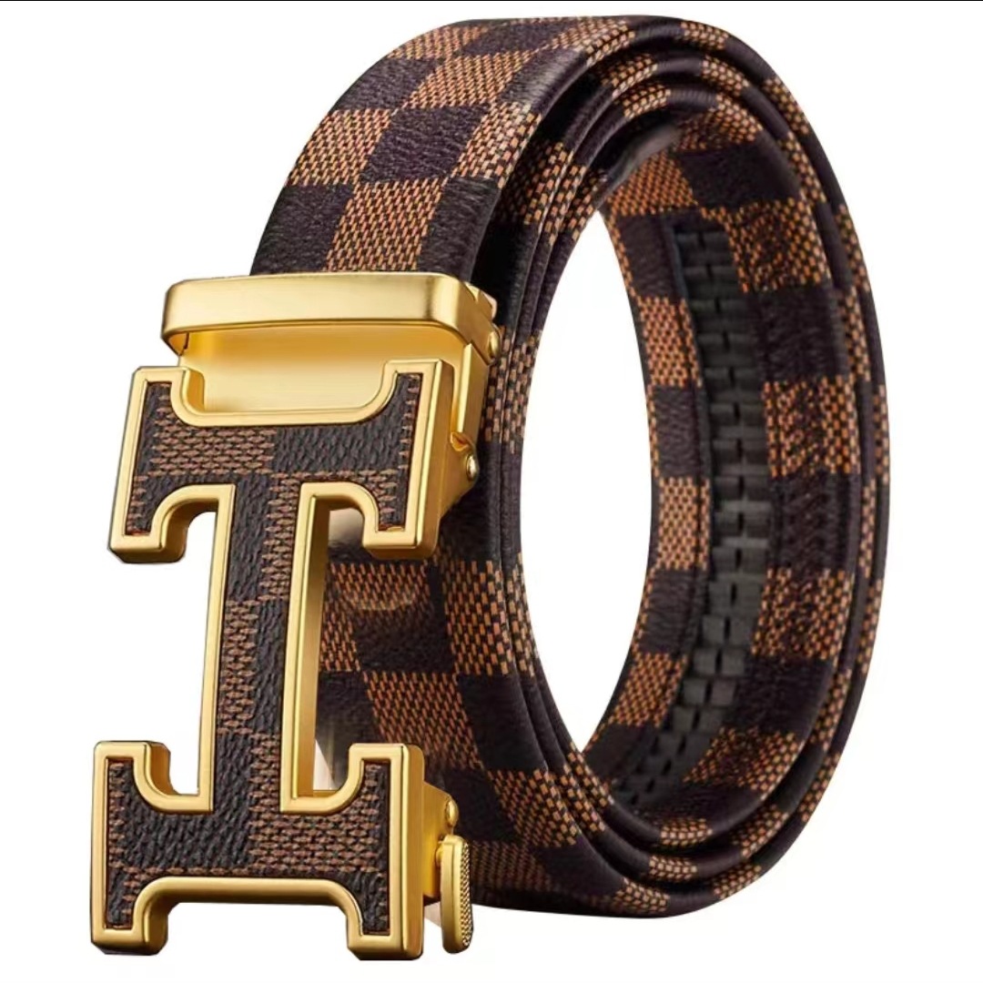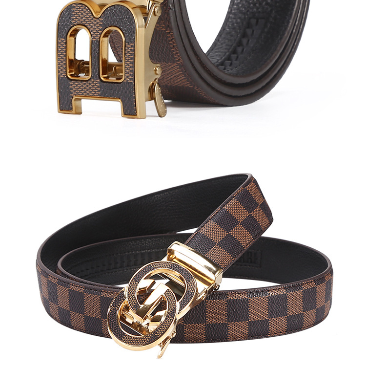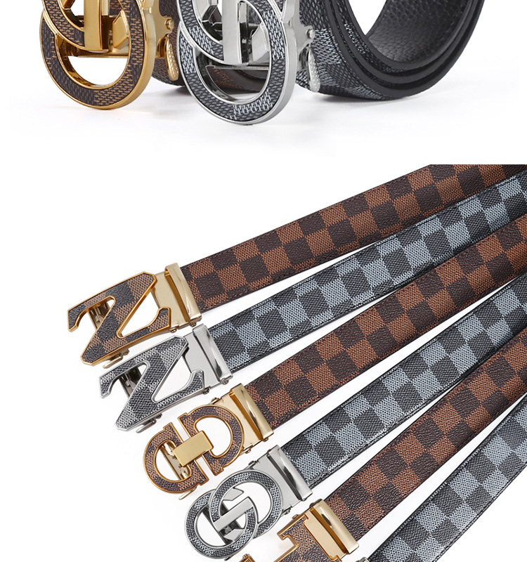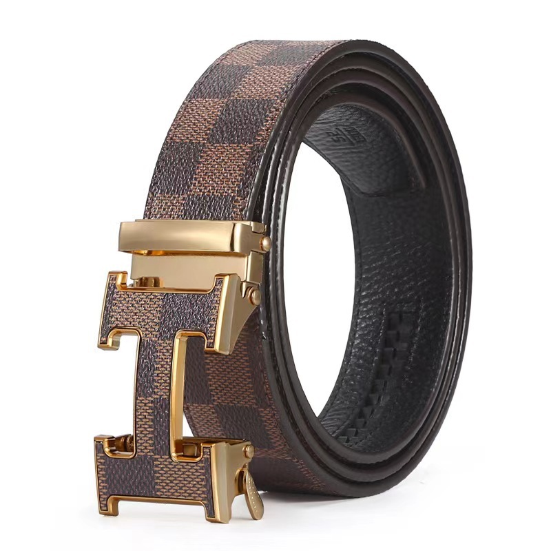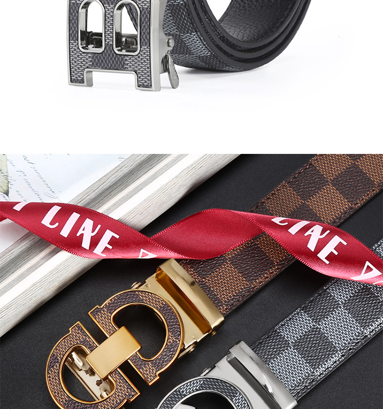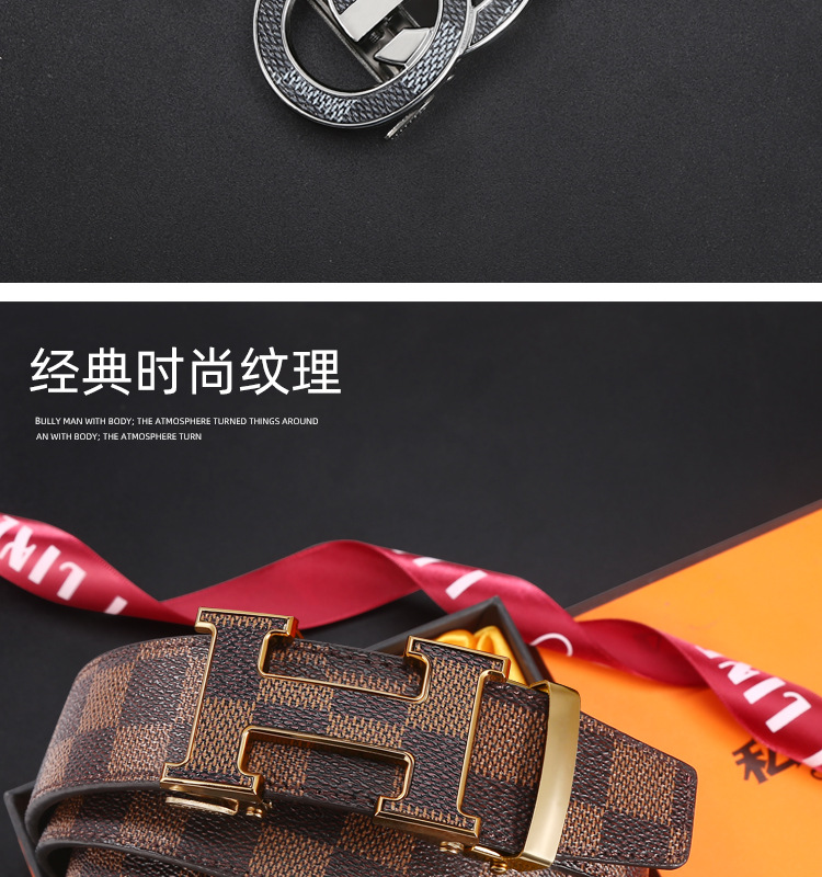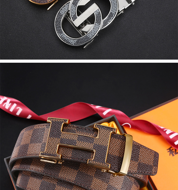 H 버클 가죽 벨트 남성용 다용도 청년용 체크무늬 자동 버클 바지 벨트 비즈니스 남성용 바지 벨트 문학적 레트로 스타일스토어 가기