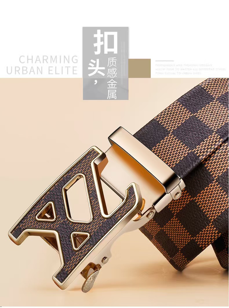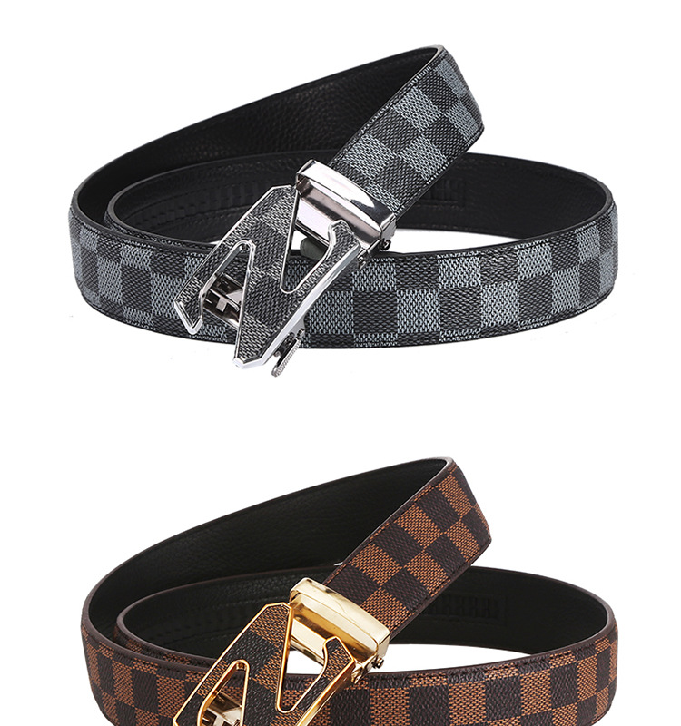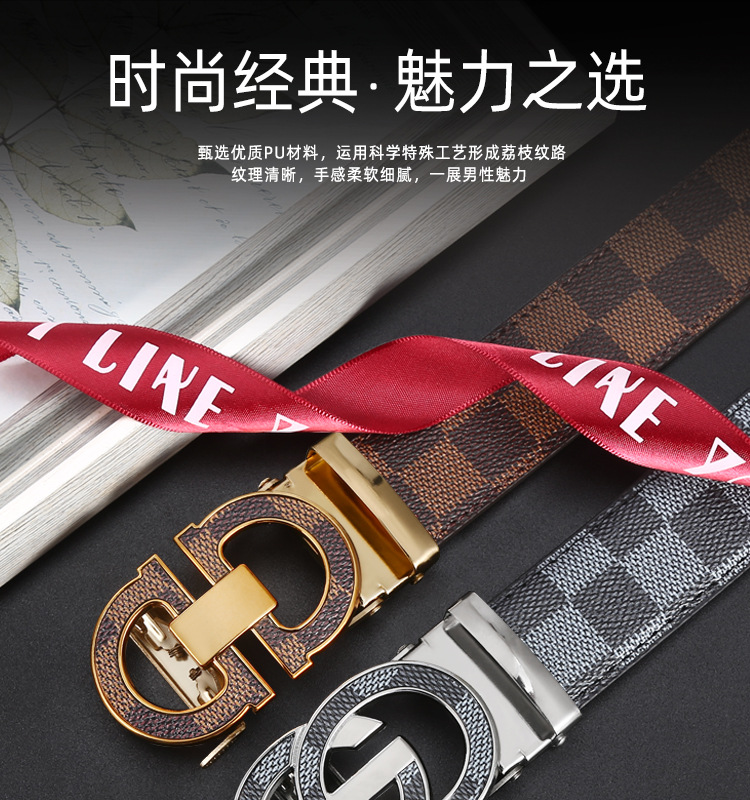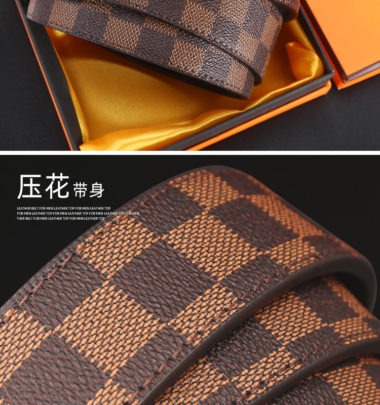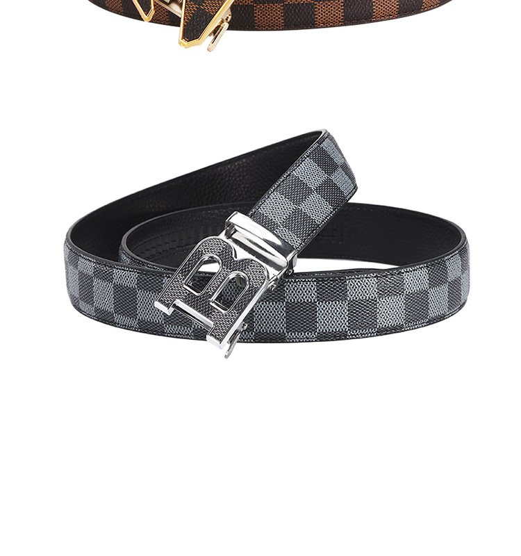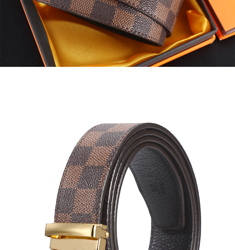 H 버클 가죽 벨트 남성용 다용도 청년용 체크무늬 자동 버클 바지 벨트 비즈니스 남성용 바지 벨트 문학적 레트로 스타일스토어 가기