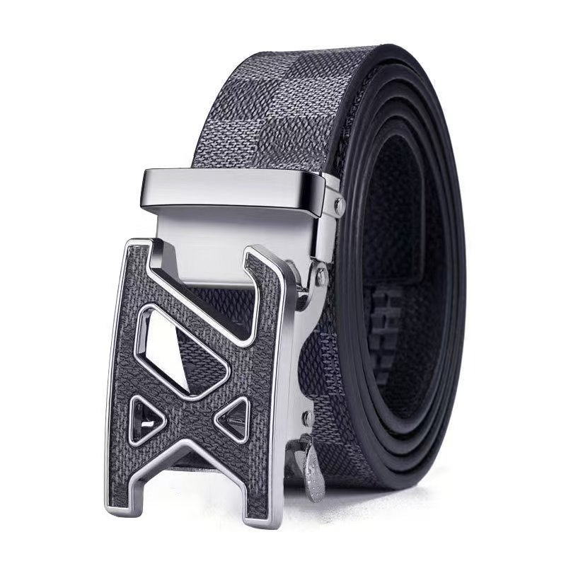 H 버클 가죽 벨트 남성용 다용도 청년용 체크무늬 자동 버클 바지 벨트 비즈니스 남성용 바지 벨트 문학적 레트로 스타일