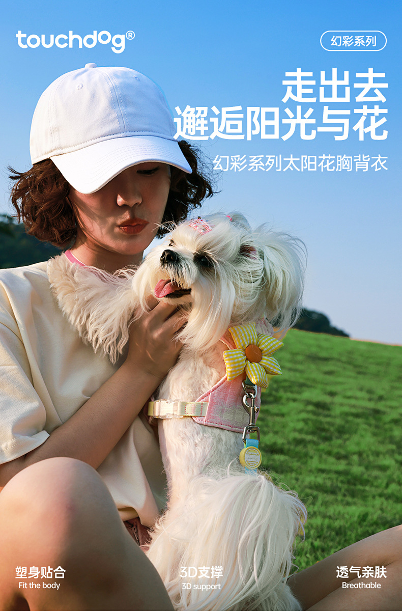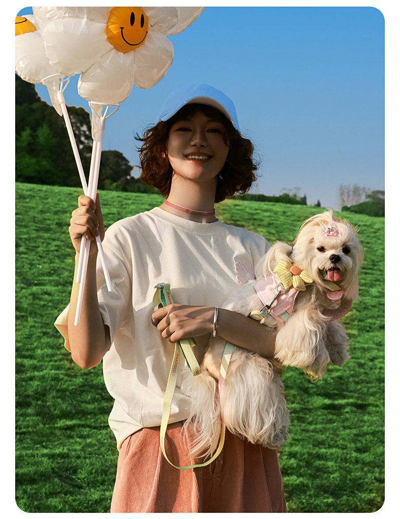 터치독-해바라기 하네스 강아지 목줄 소형견 비숑 하네스 테디 애완견스토어 가기