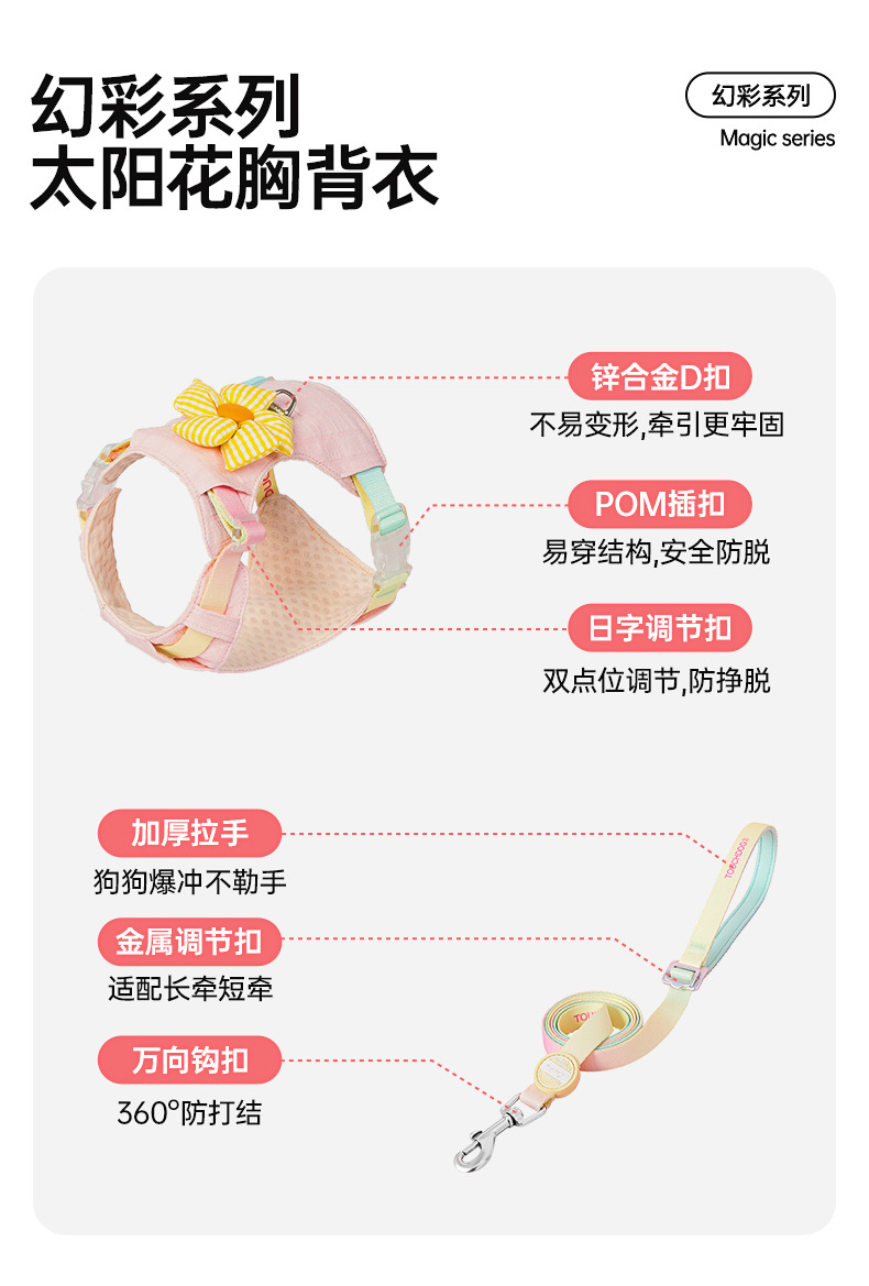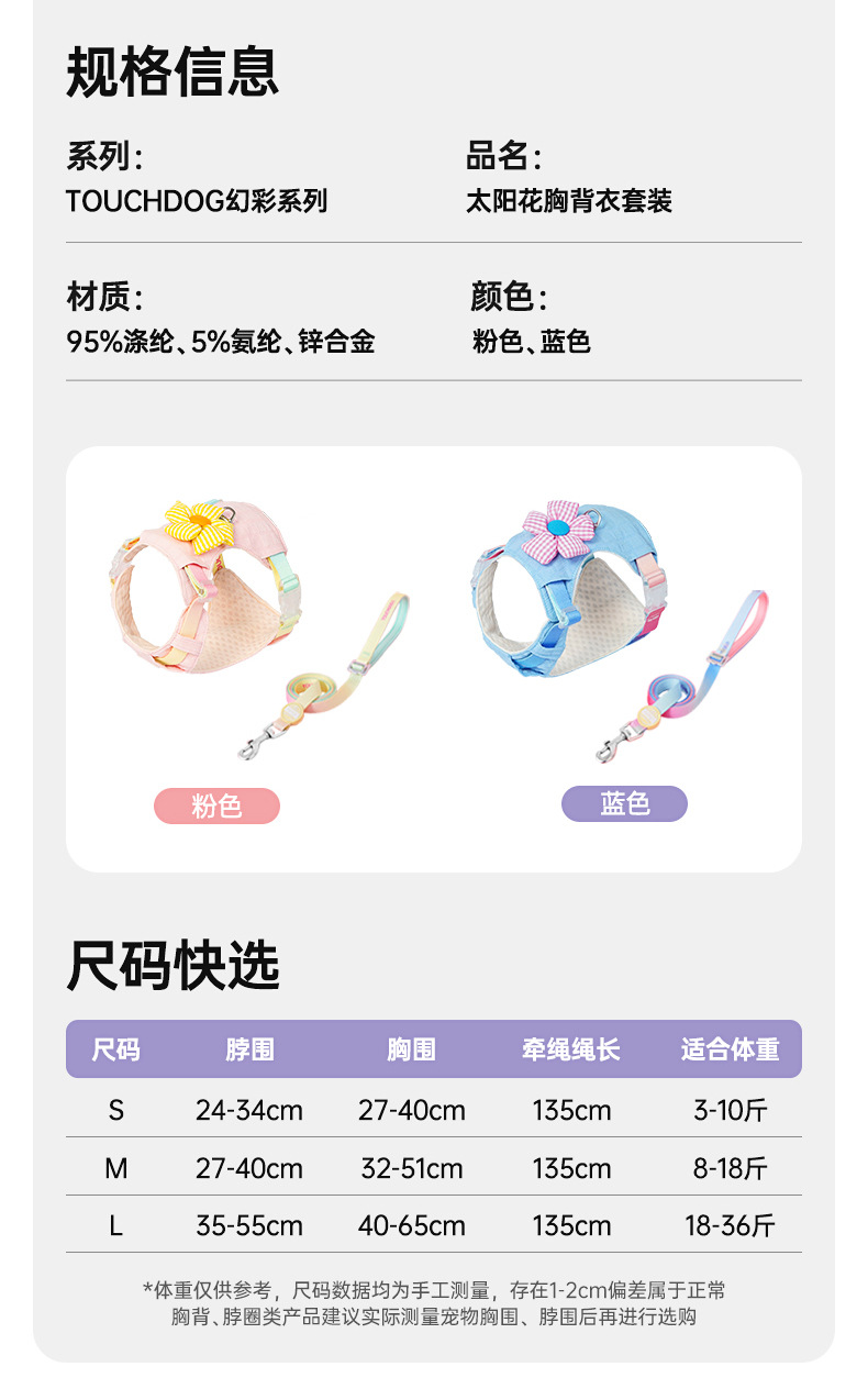 터치독-해바라기 하네스 강아지 목줄 소형견 비숑 하네스 테디 애완견