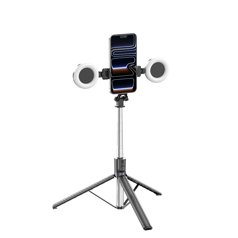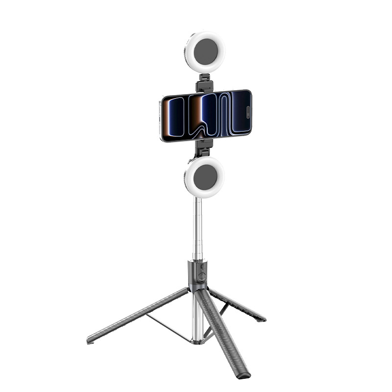 • 새로운 1.88m Bold X6se 셀카봉 블랙 + 듀얼 필 라이트 + 1/4 나사 머리(추가 링 라이트 장착 가능)