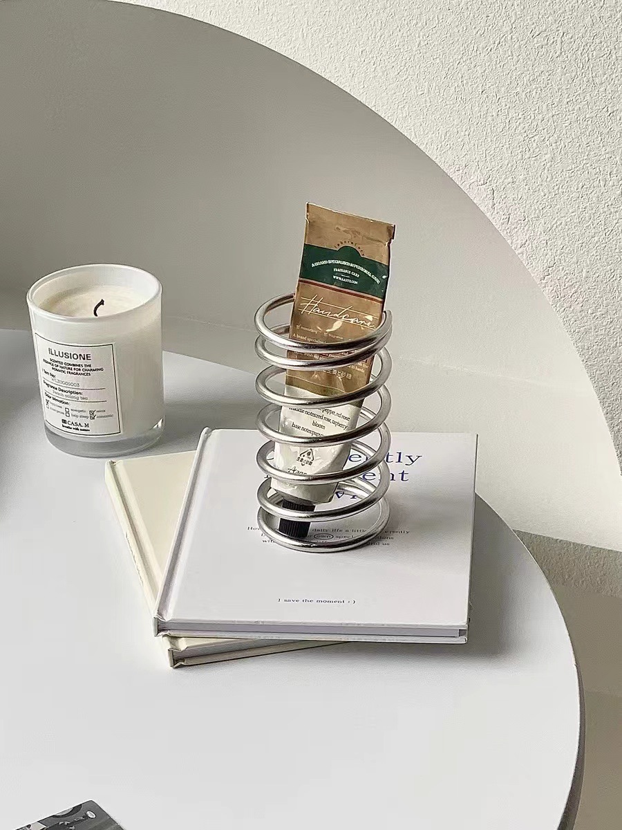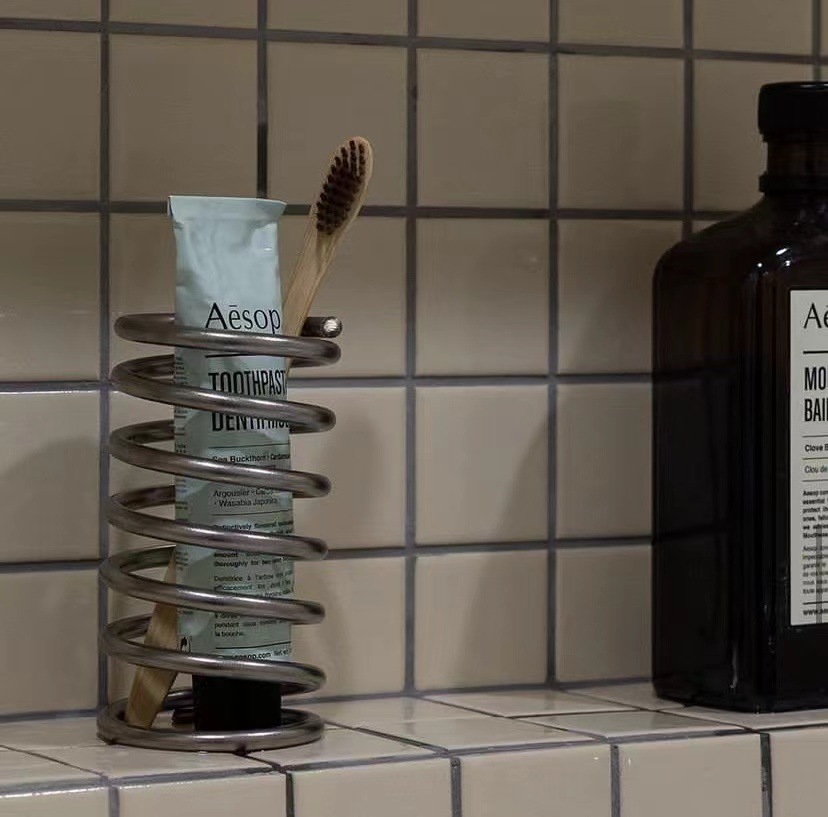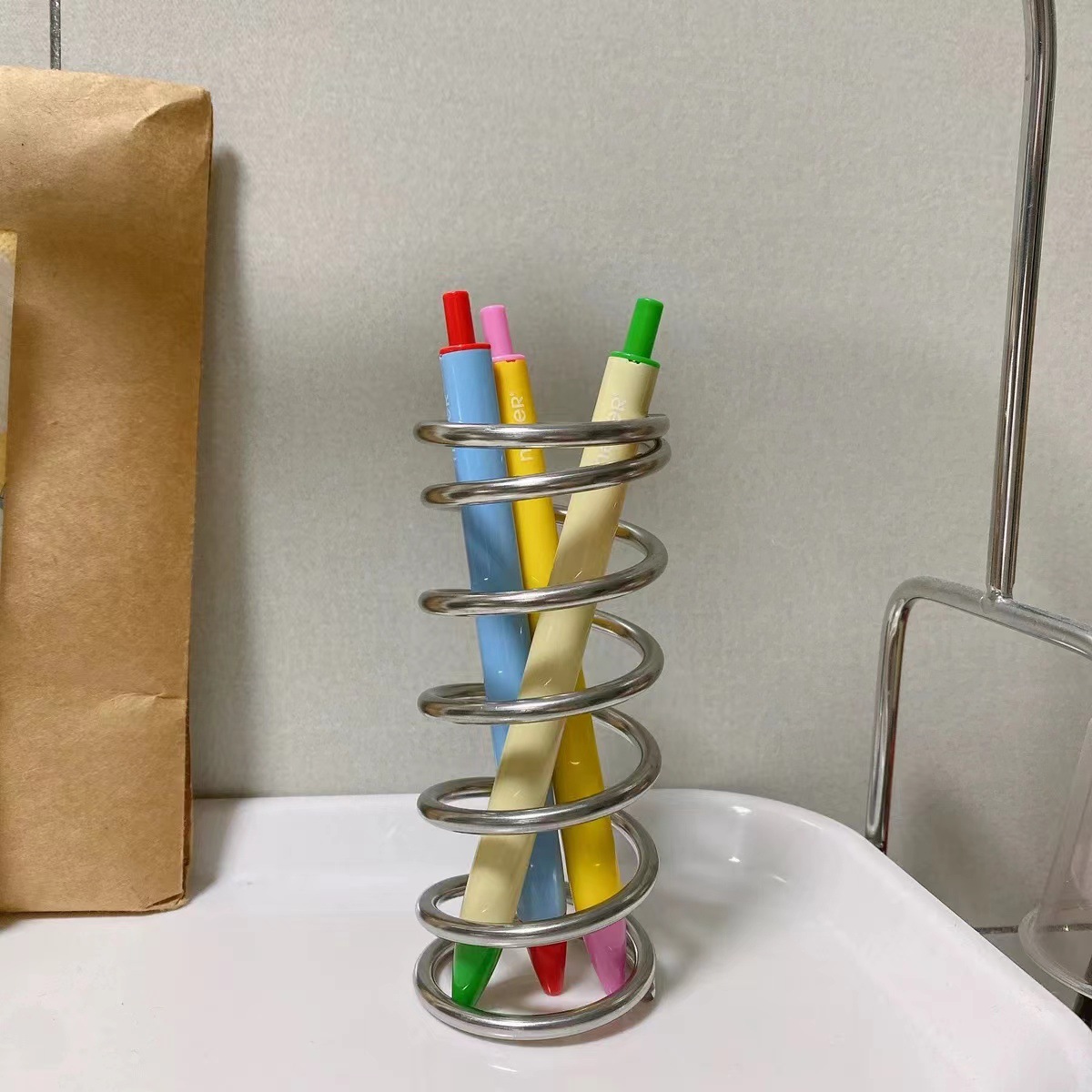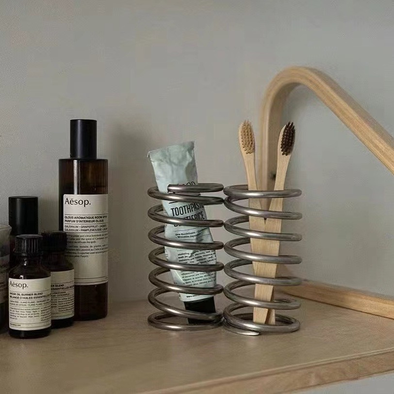 Ins 스타일 욕실 스테인레스 스틸 나선형 칫솔 홀더 데스크탑 빈 봄 펜 홀더 저장 꽃 삽입 산업 스타일