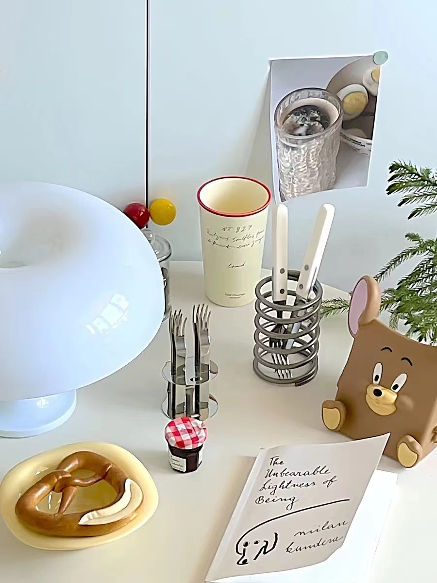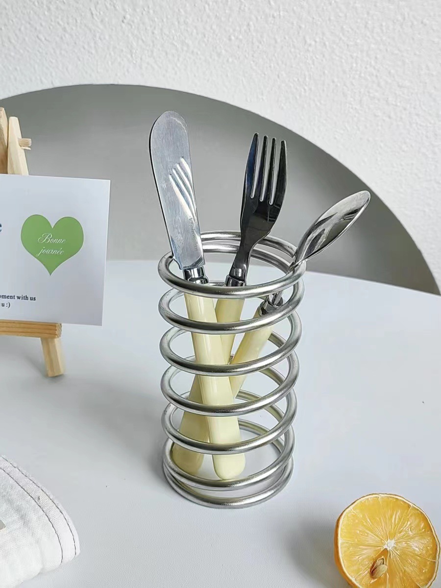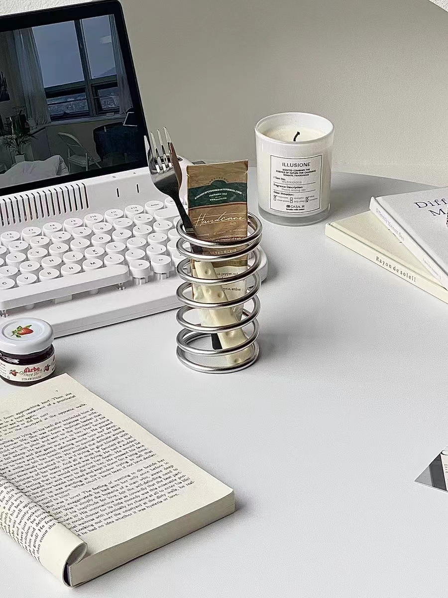 Ins 스타일 욕실 스테인레스 스틸 나선형 칫솔 홀더 데스크탑 빈 봄 펜 홀더 저장 꽃 삽입 산업 스타일
