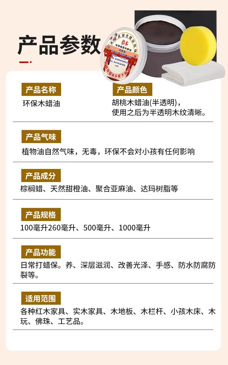 반투명 단단한 나무 왁스 기름 검은 호두 나무 바닥 왁스 가구 유지 보수 연마 왁스 단단한 어두운 나무 마무리