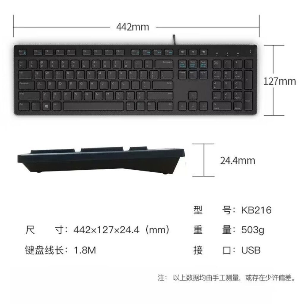 Dell KB216 유선 키보드 USB 초콜릿 키보드 마우스 세트 비즈니스 사무용 무소음 키보드에 적합