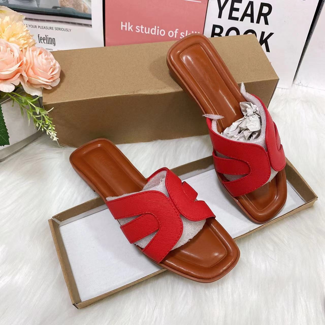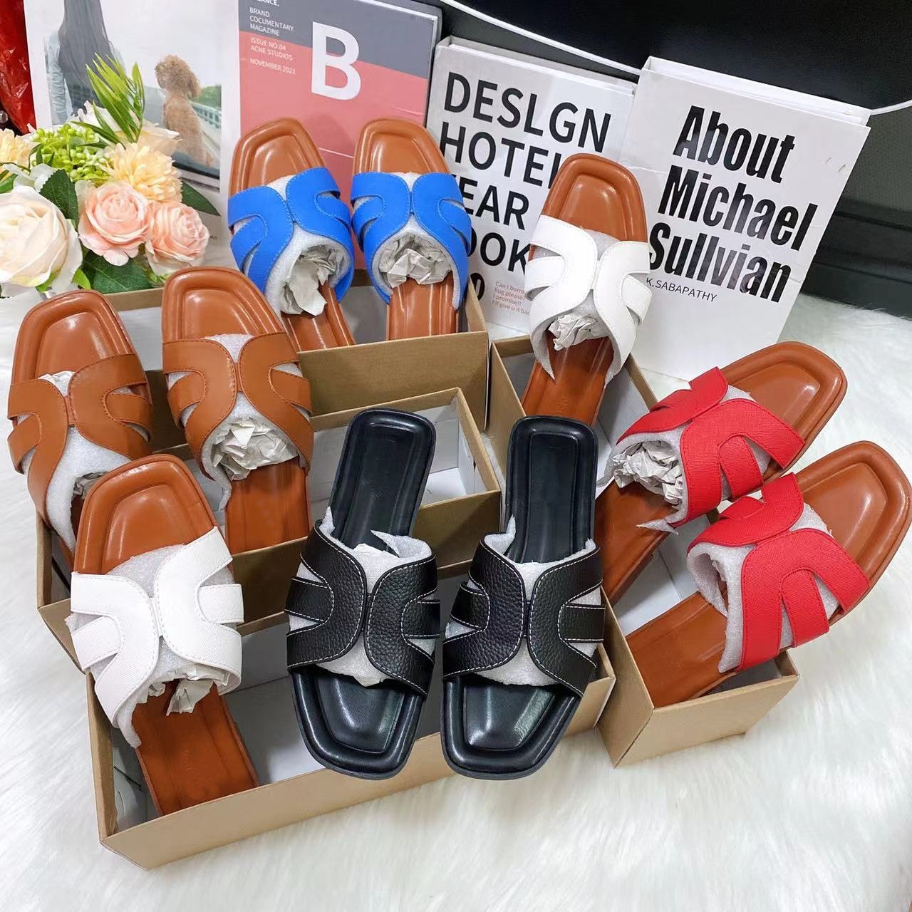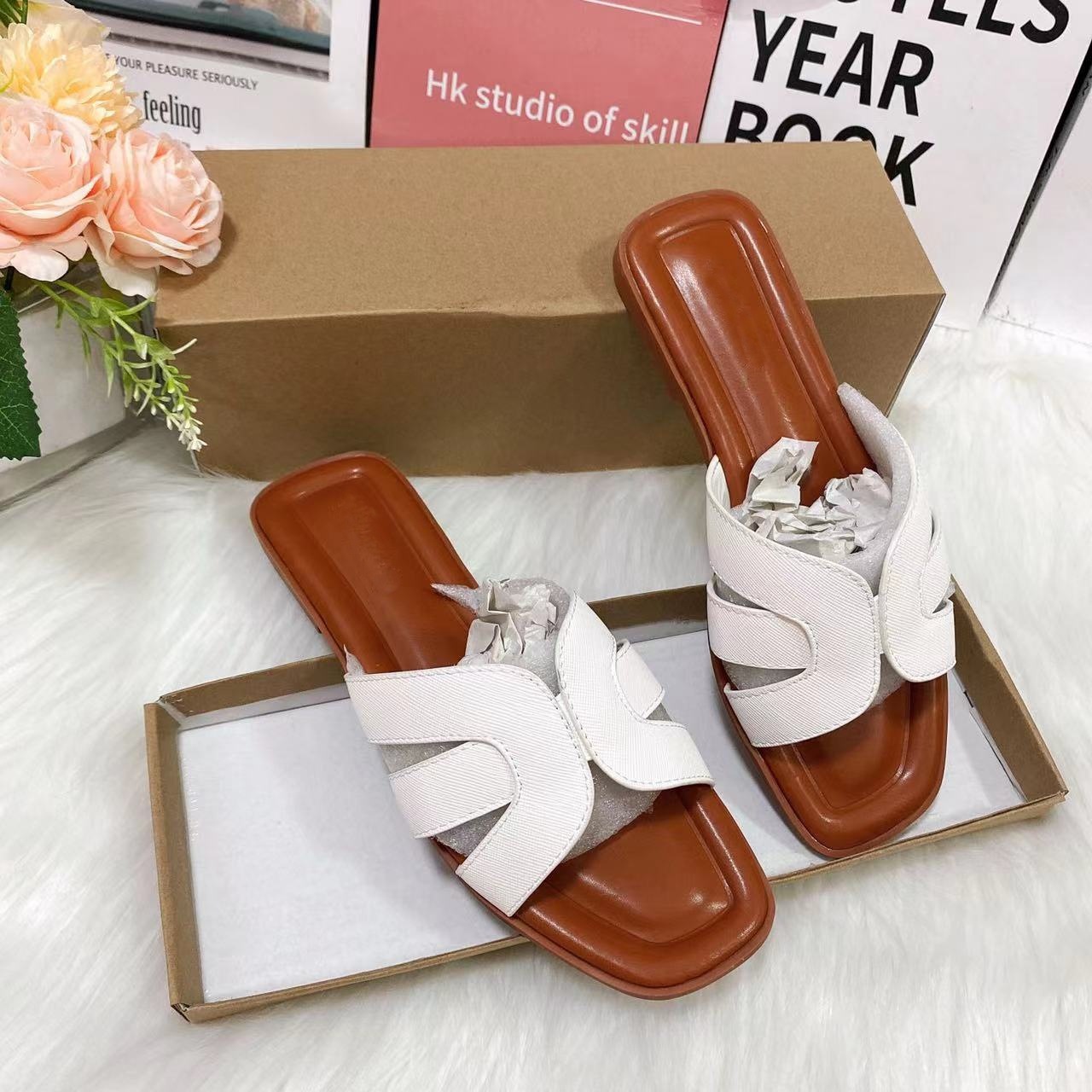 국제 사이트에서 가장 잘 팔리는 유럽과 미국의 새로운 플랫 스퀘어 토 슬리퍼, 여성용 데일리 다용도 캐주얼 아우터 샌들
