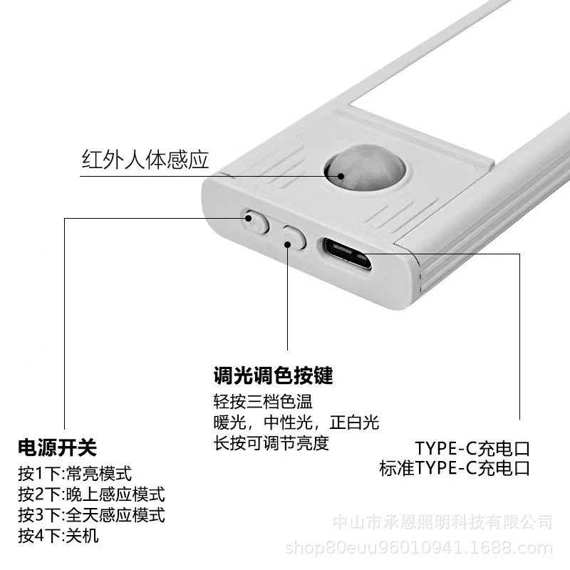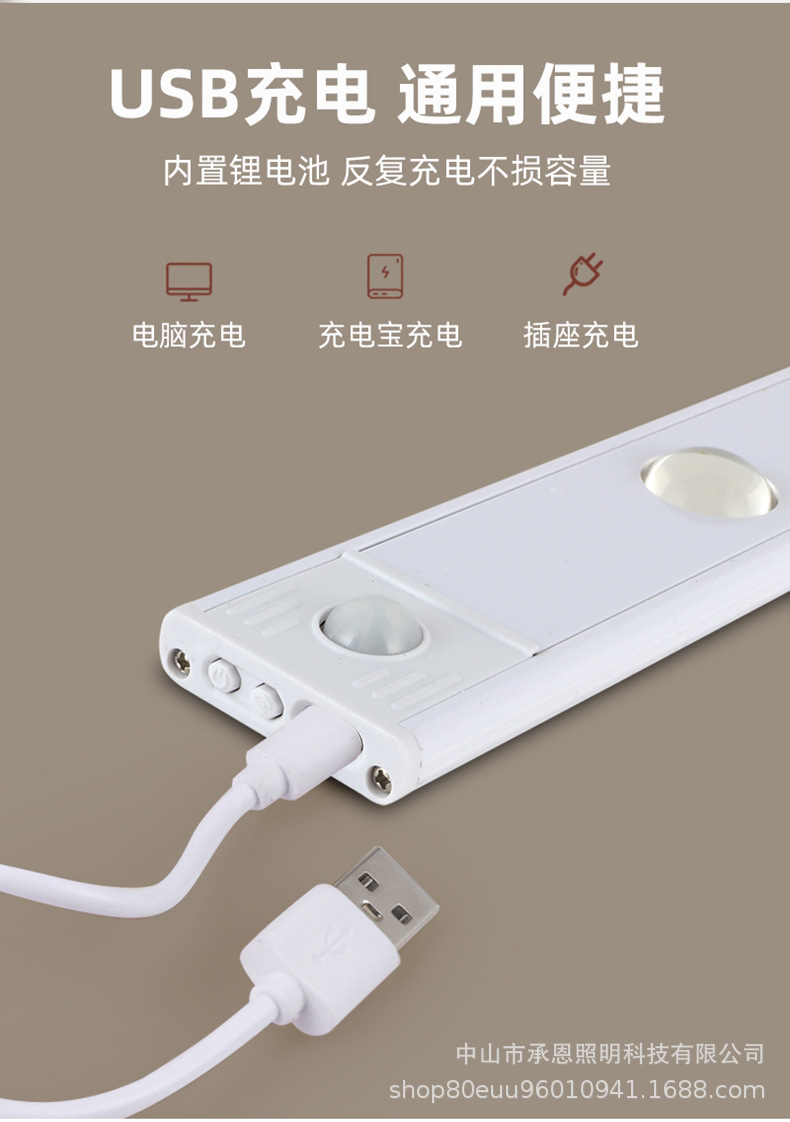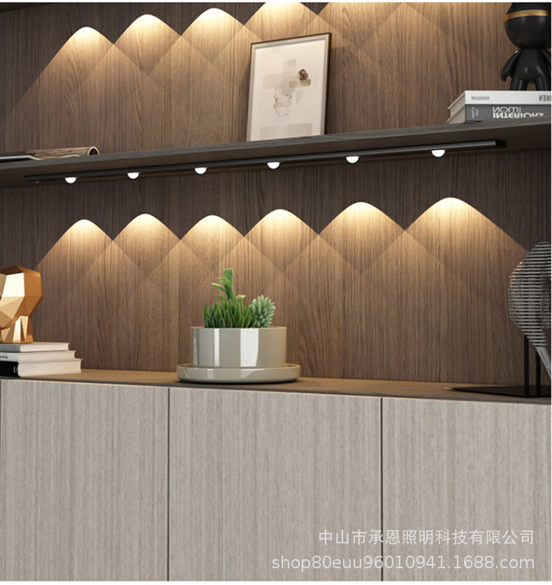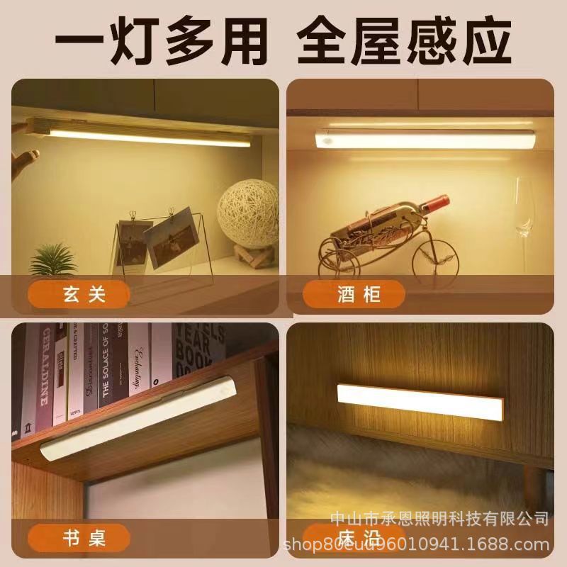 울트라 얇은 LED 인체 유도 램프 와인 캐비닛 옷장 충전 자체 접착 램프 긴 스트립 스마트 캐비닛 야간 조명 국경스토어 가기