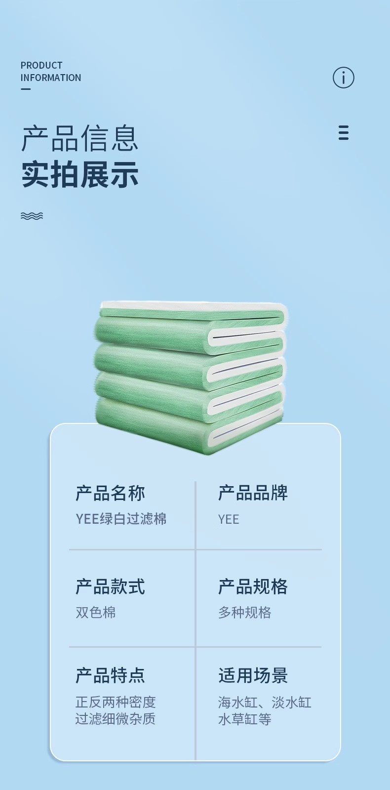 예 물고기 탱크 필터 면 특수 고밀도 생화학 녹색 흰색 필터 재료 높은 투과성 수족관 물 정화 면 두꺼운 재료스토어 가기