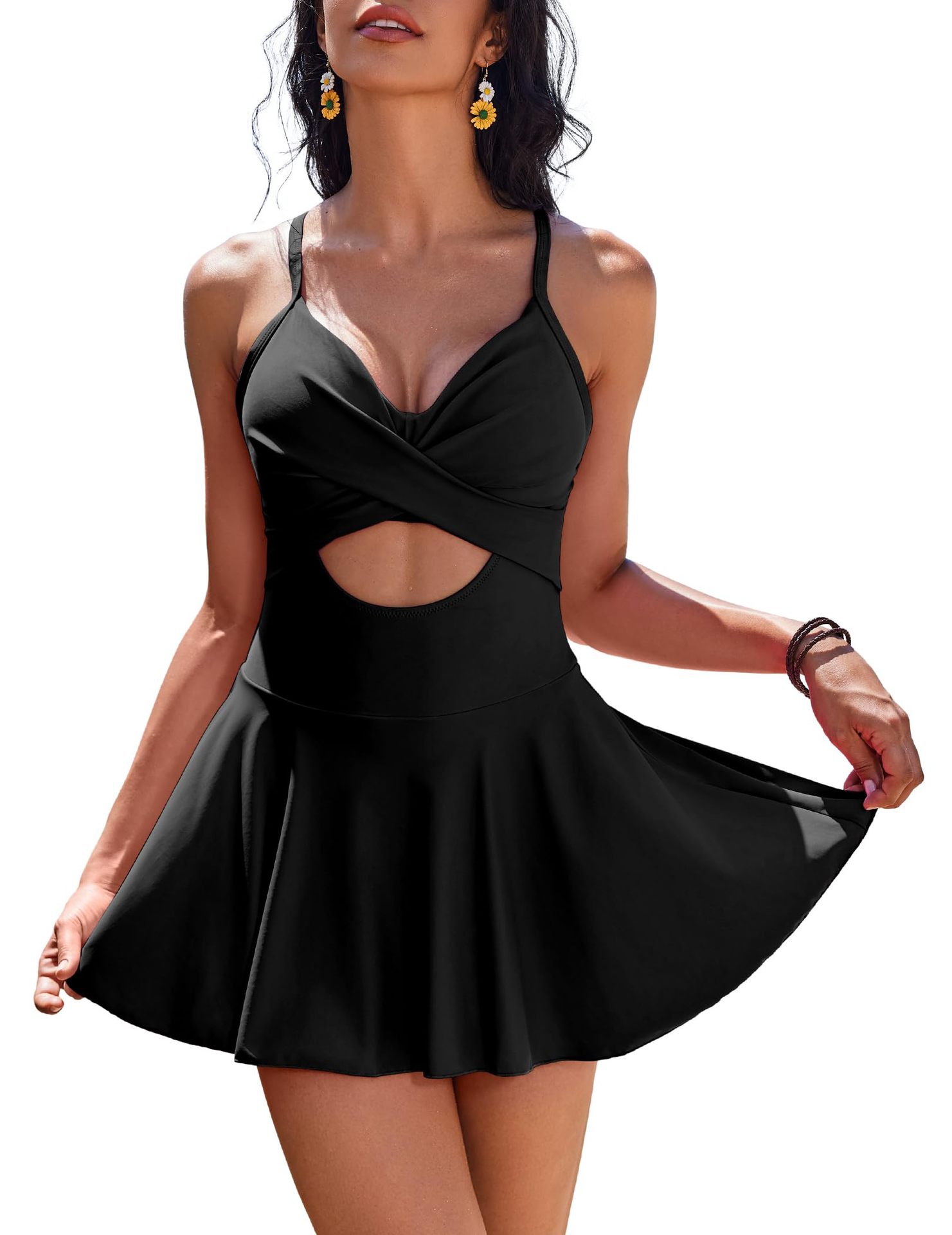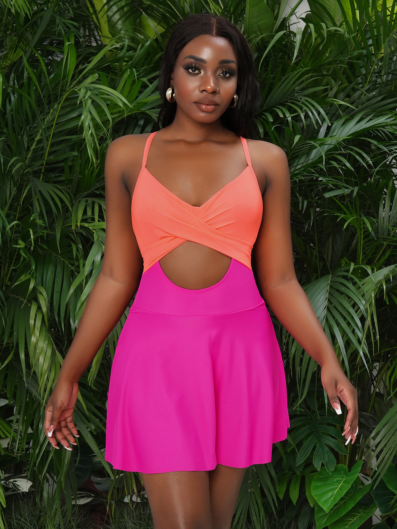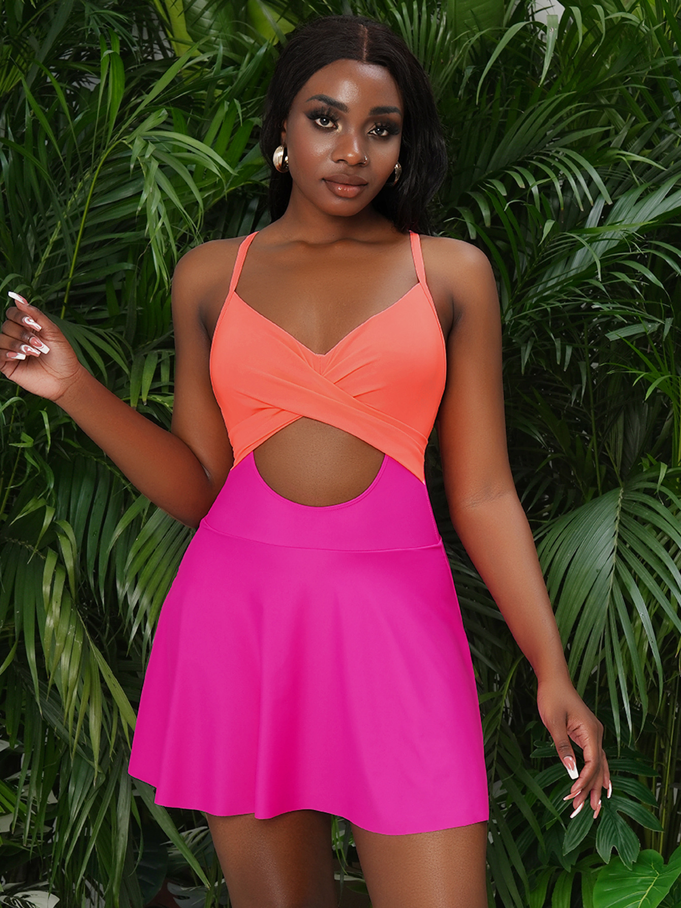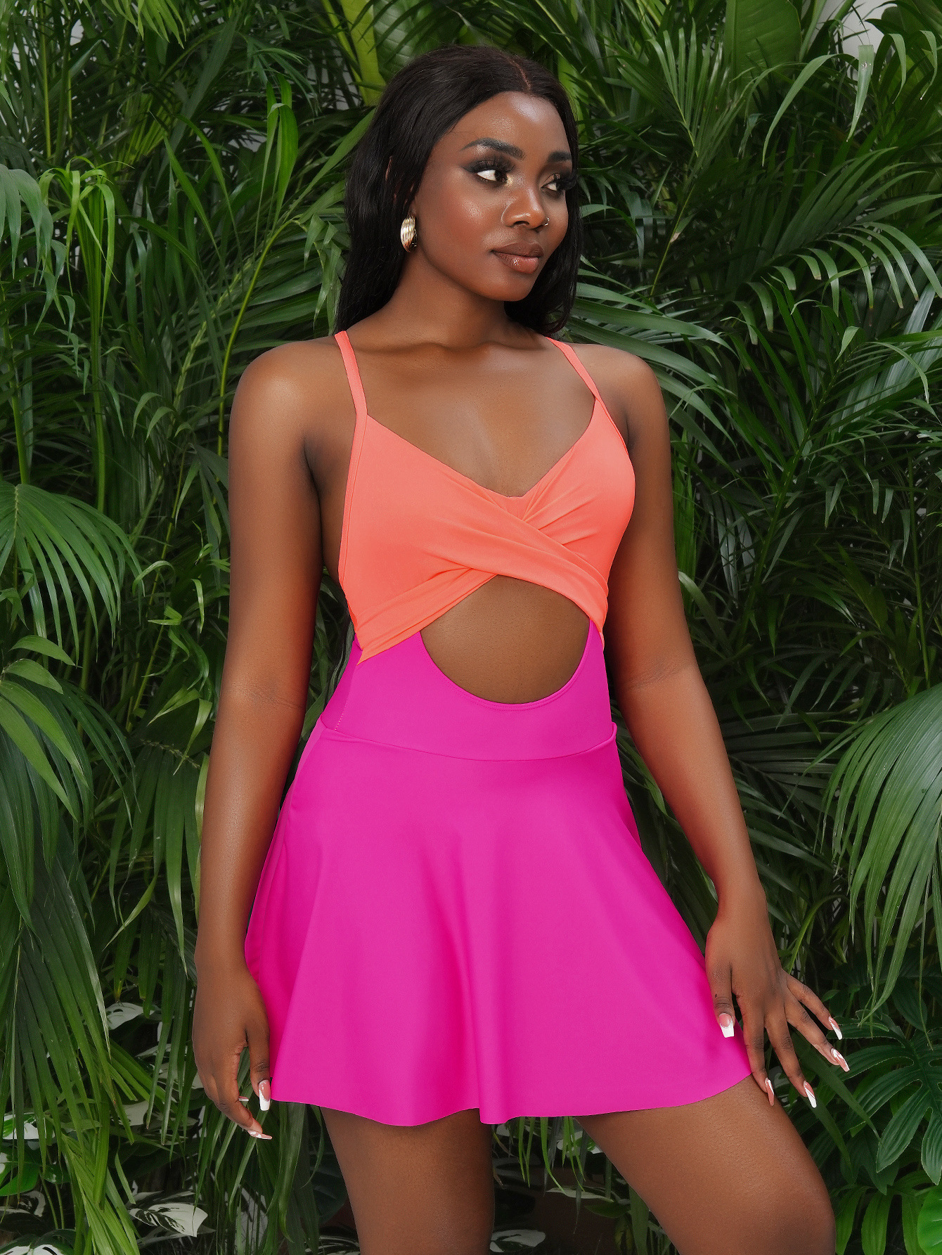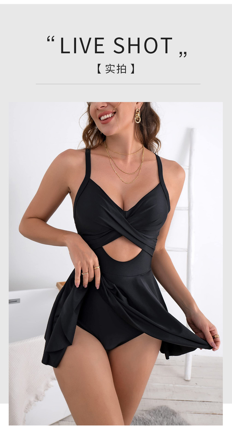 2025 유럽과 미국의 원피스 디스플레이 수영복 여성 대외 무역 솔리드 컬러 중공 섹시한 원피스 서스펜더 수영복 Amazon Cross-Border