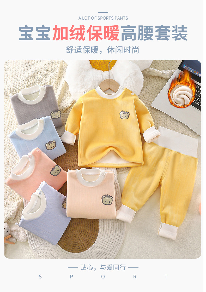 아기의 열 속옷 세트 기모 여자 소년 속옷 두꺼운 가을 겨울 가을 옷 가을 바지 아기 잠옷