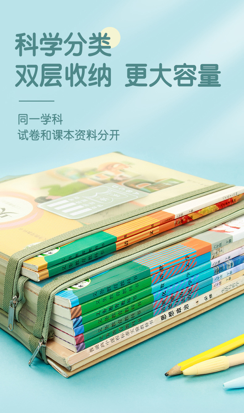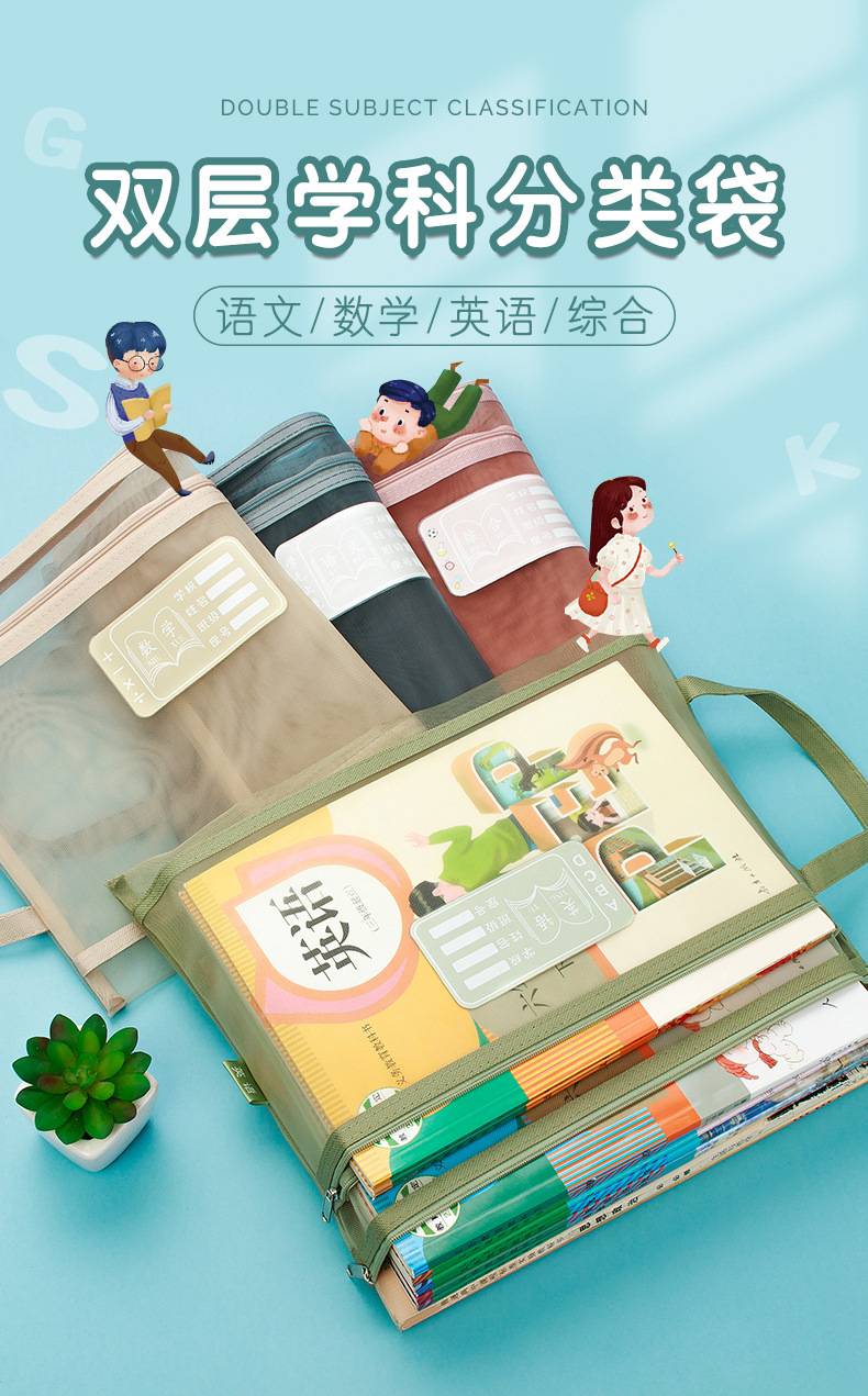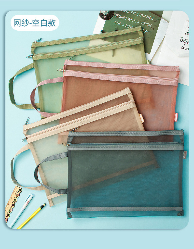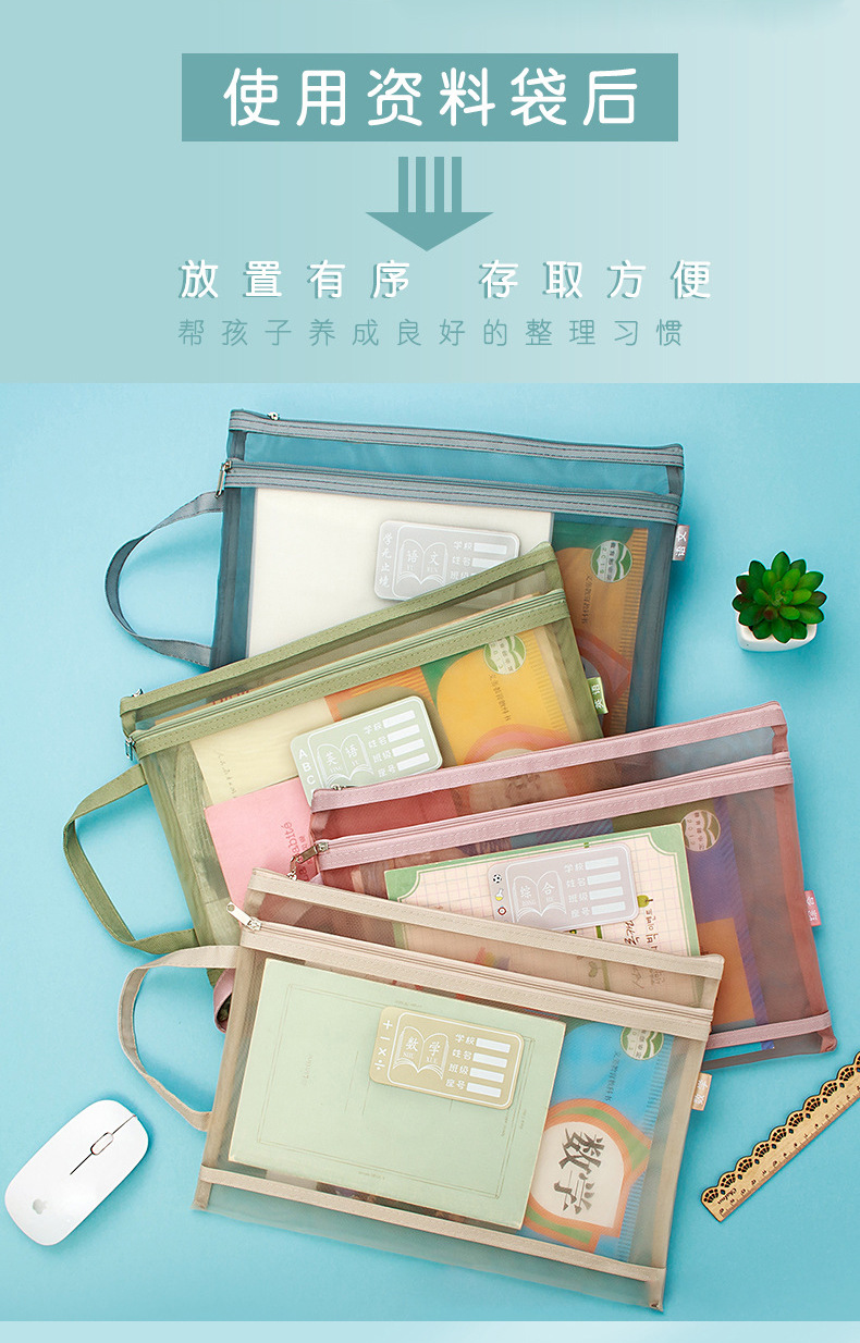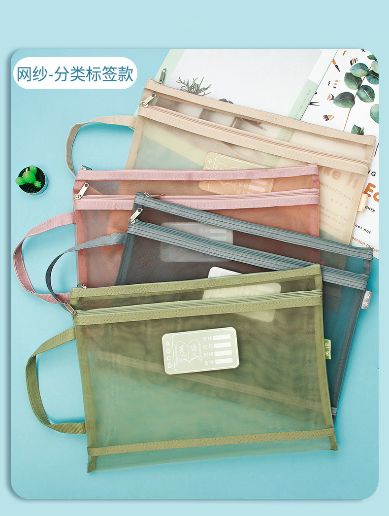 투명한 메쉬 제목 가방 제목 분류 문서 가방 지퍼 더블 레이어 대용량 학생 휴대용 저장 가방