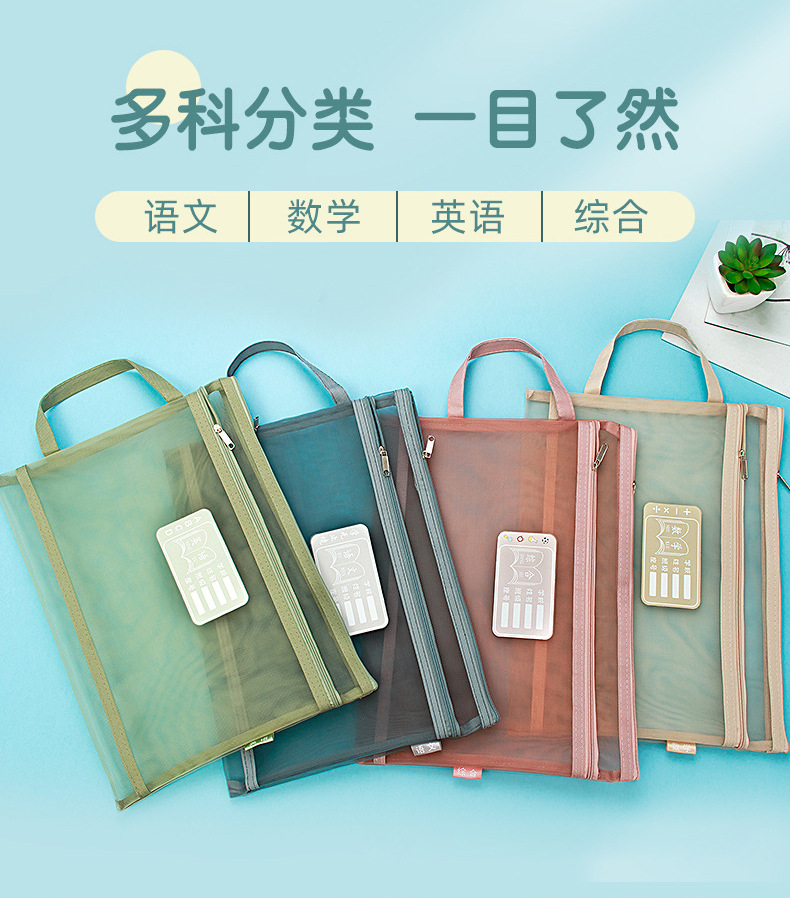 투명한 메쉬 제목 가방 제목 분류 문서 가방 지퍼 더블 레이어 대용량 학생 휴대용 저장 가방스토어 가기