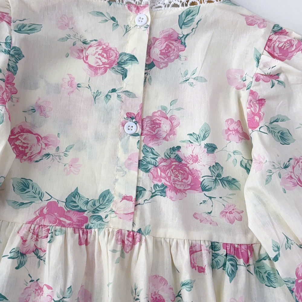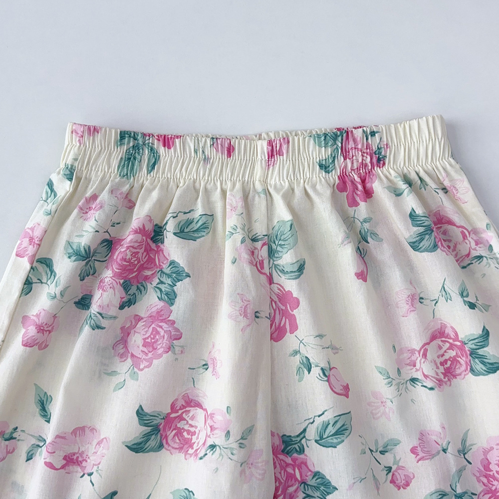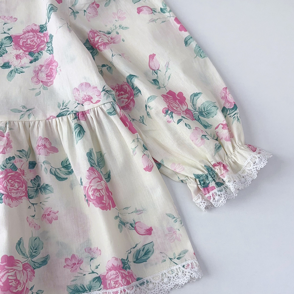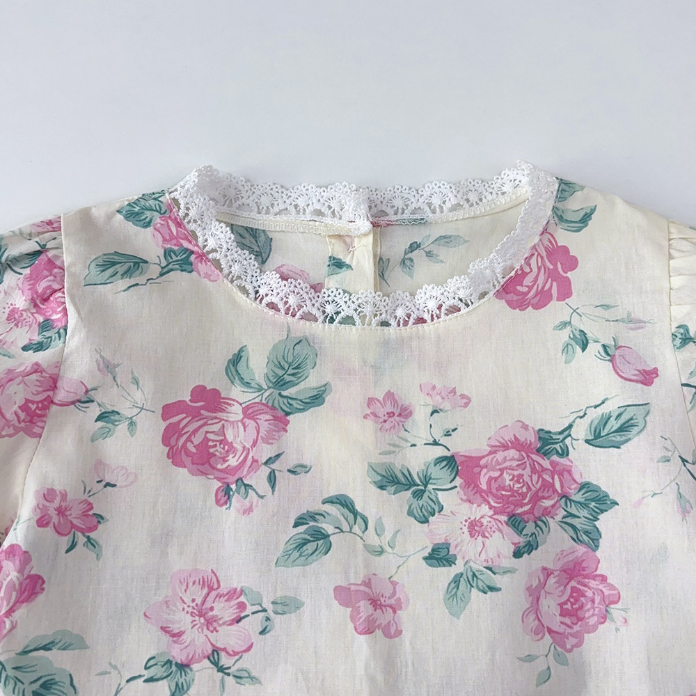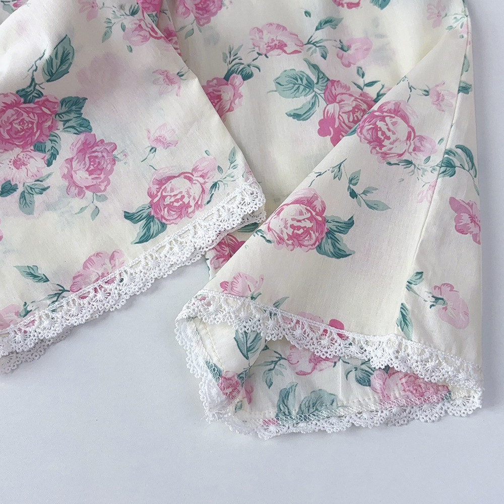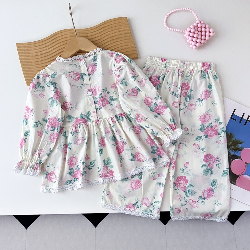 가을 한국 아동복 새로운 도착 소녀의 전체 인쇄 레이스 꽃 셔츠 느슨한 넓은 다리 바지 바지 어린이 홈 옷
