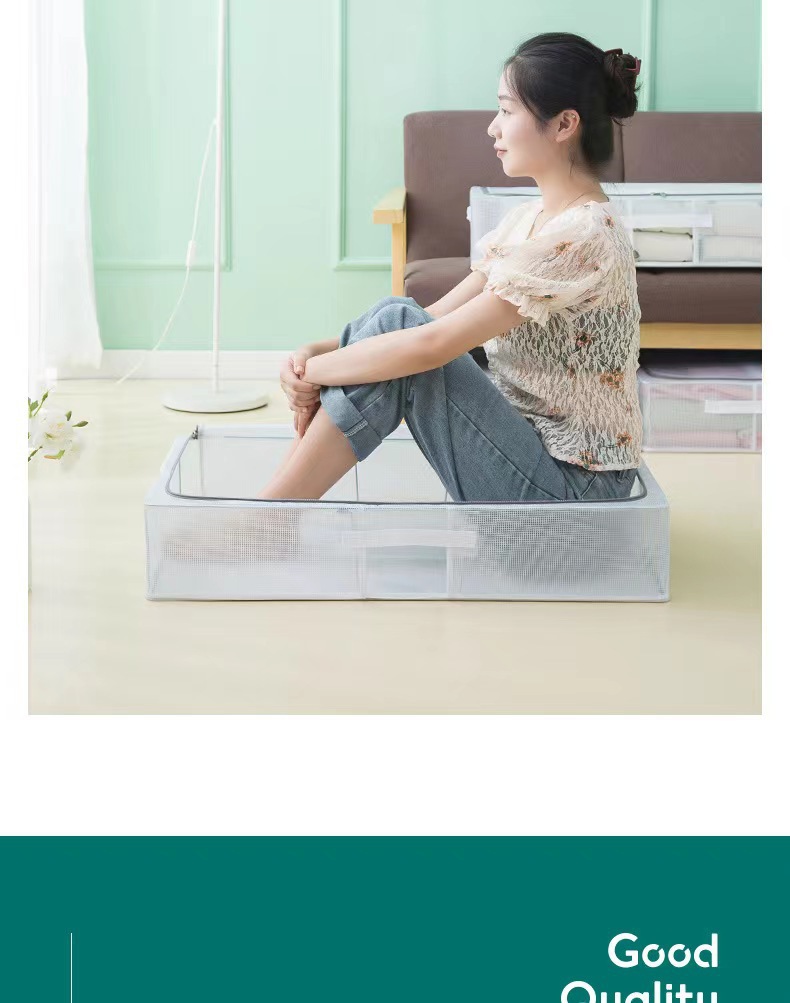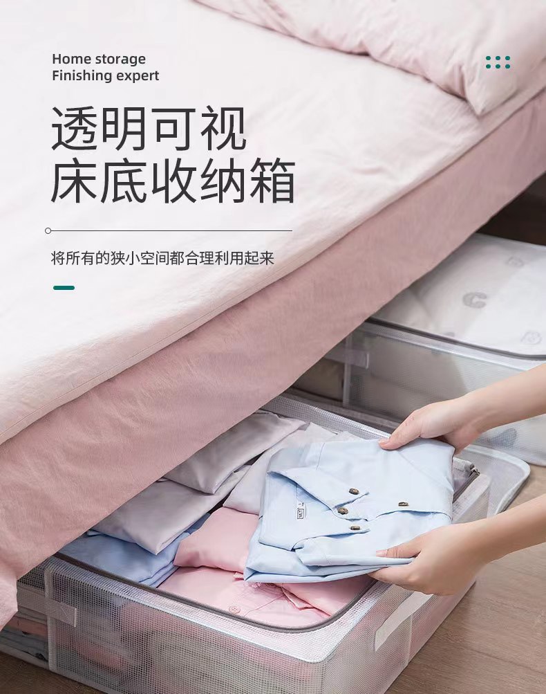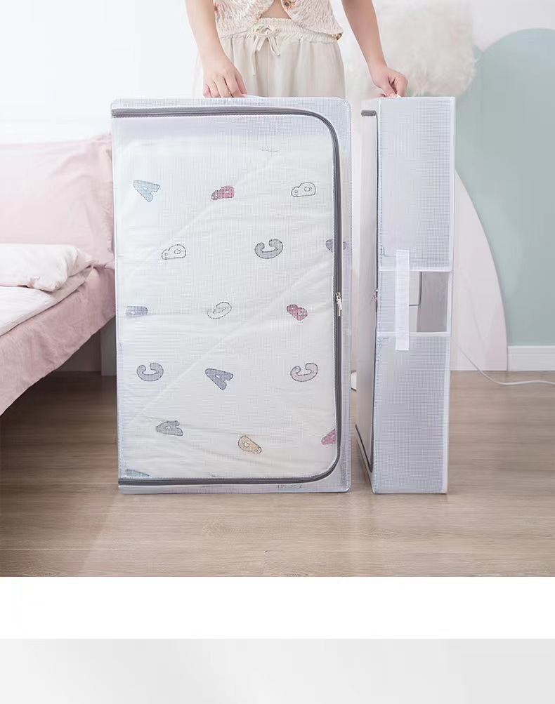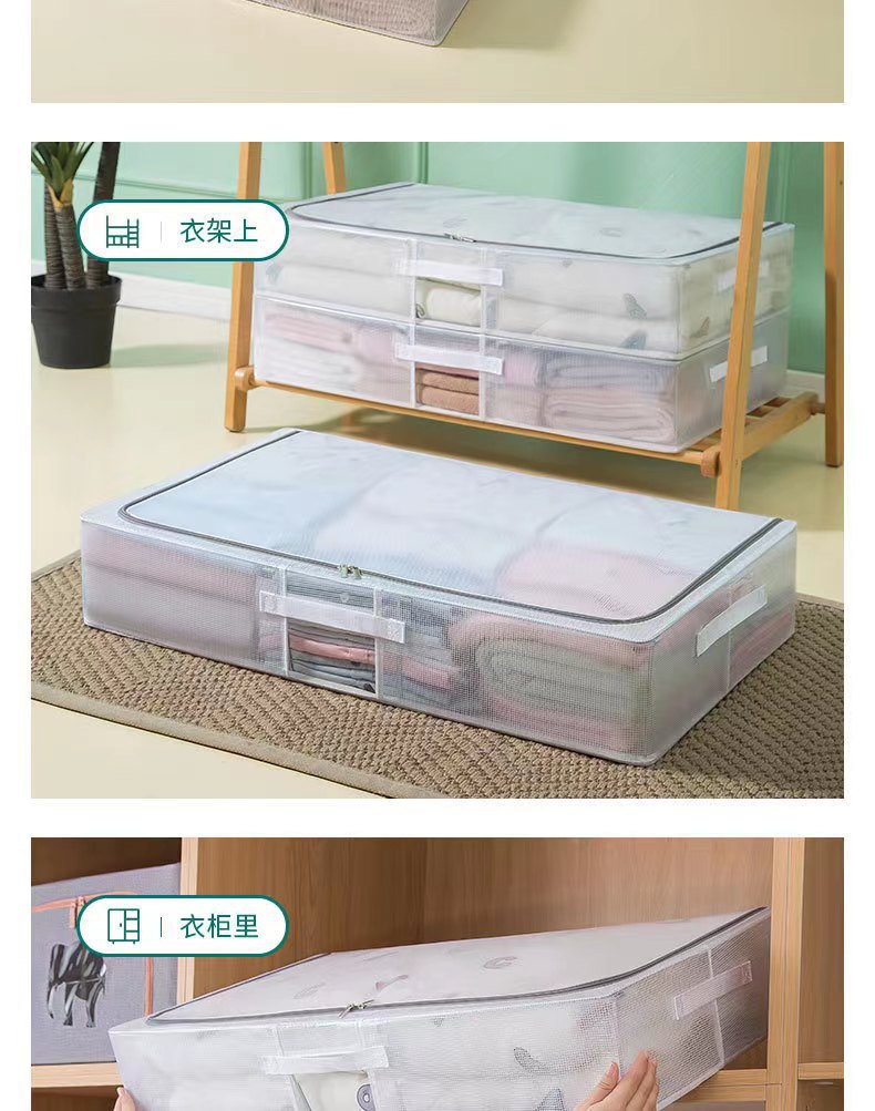 맞춤형 침대 바닥 보관 상자, 대형 지퍼가 달린 평면 투명 방수 및 방습 이불 의류 침대 바닥 보관 상자 처리스토어 가기