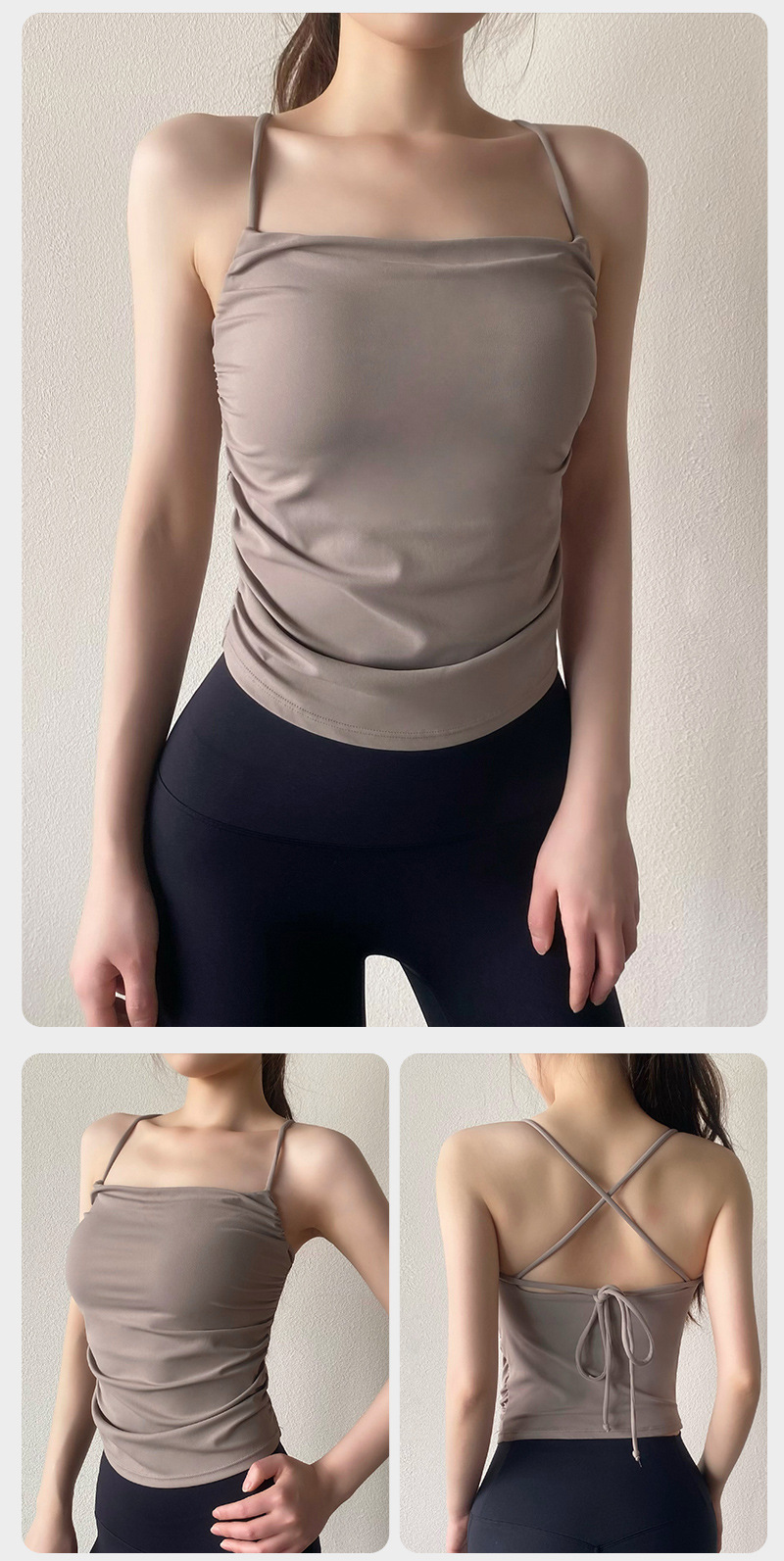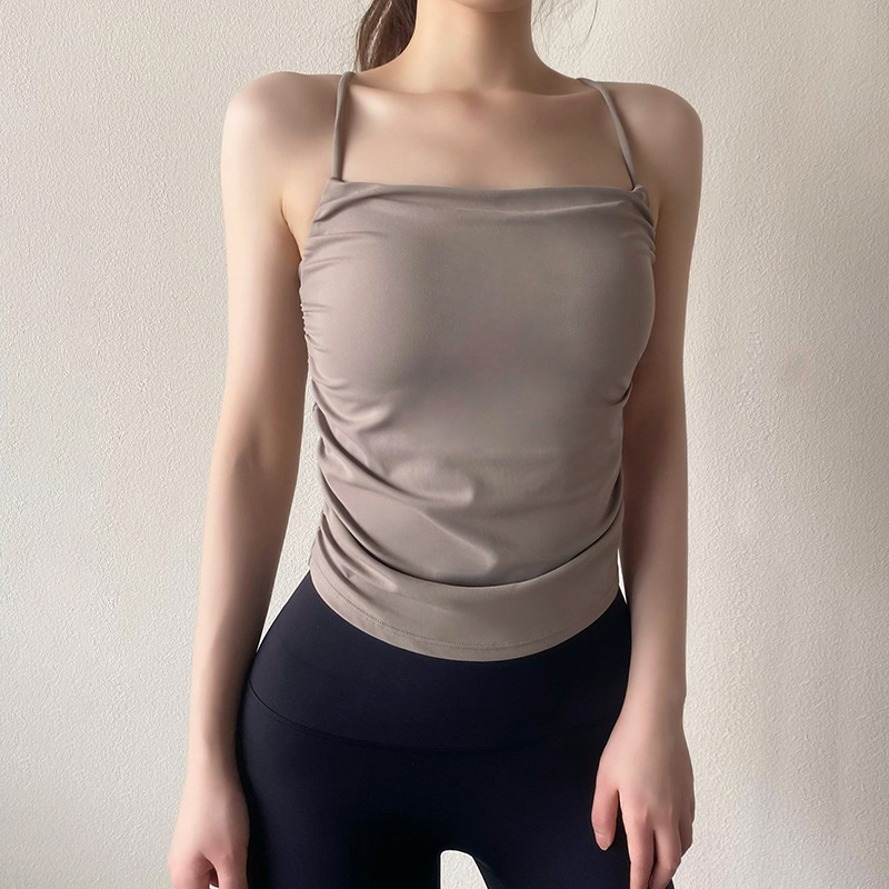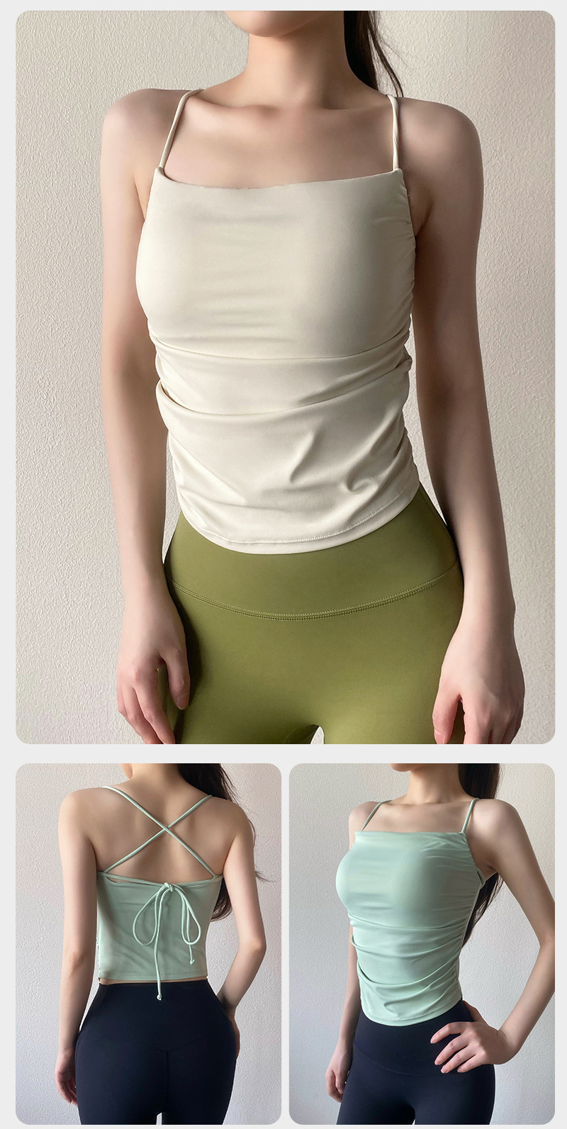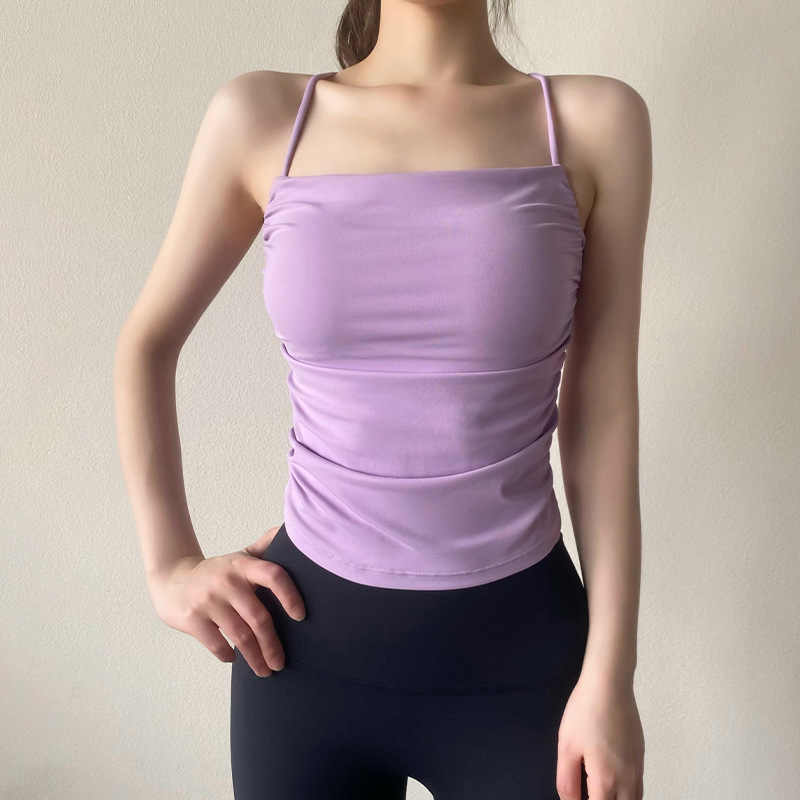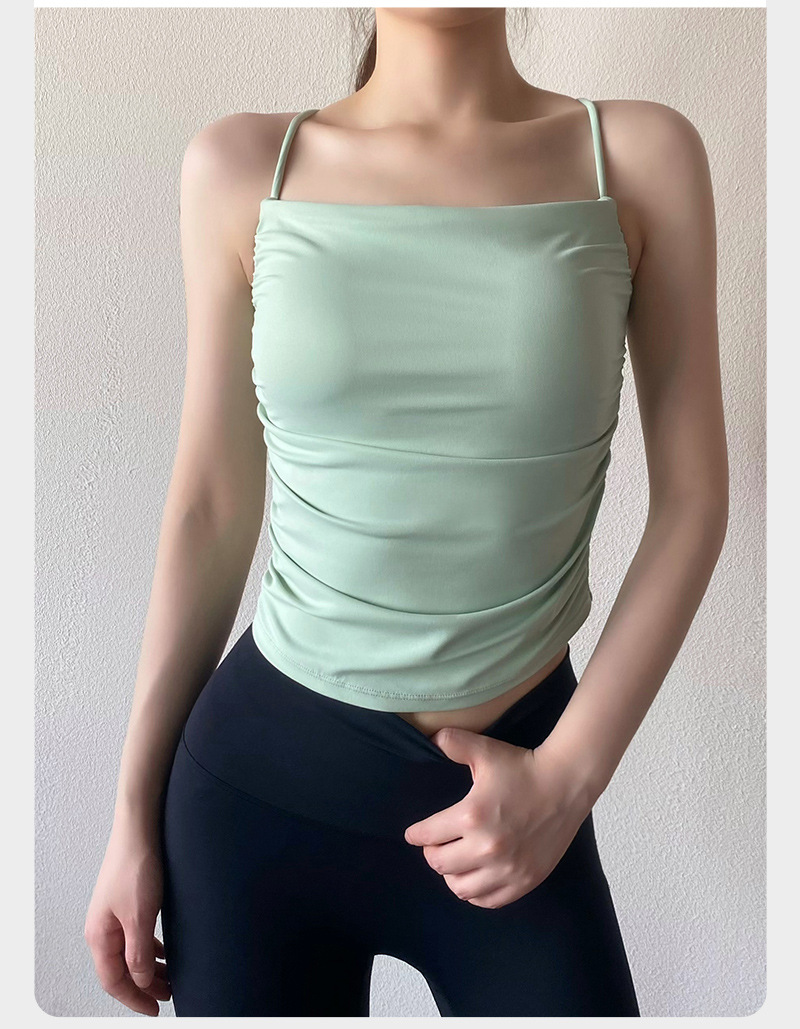 스트랩 필라테스 섹시한 요가 슬링 브래지어 댄스 뷰티 도살 플리츠 속옷 외부 착용 피트니스 착용 조끼