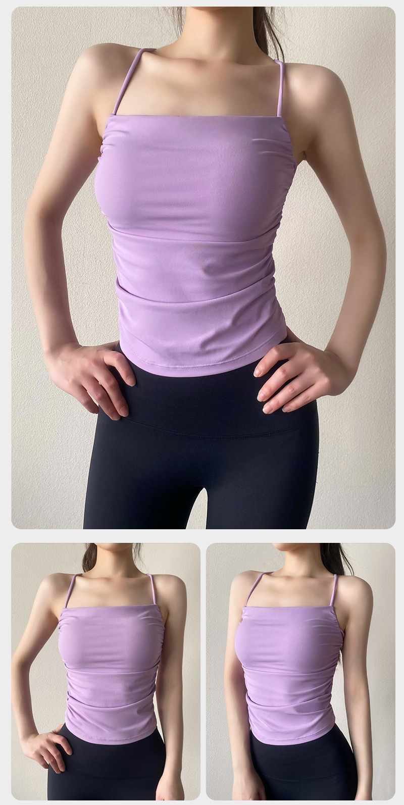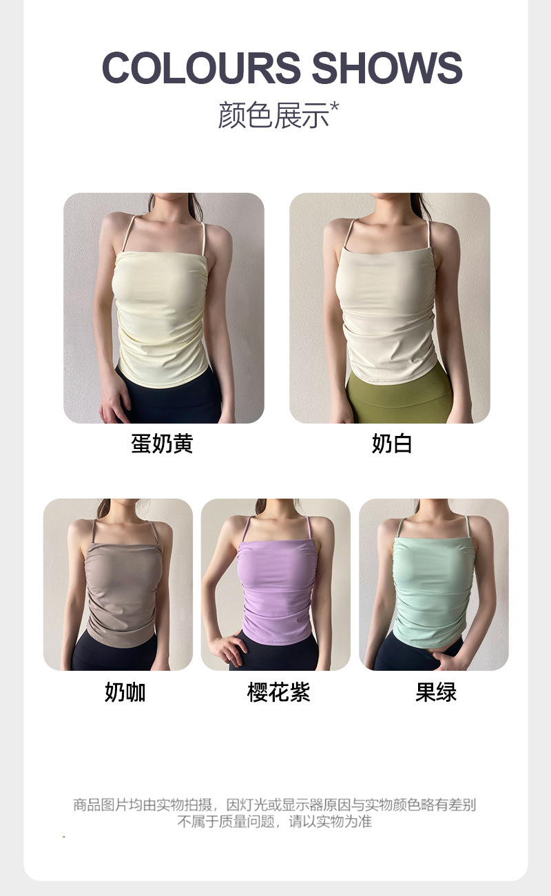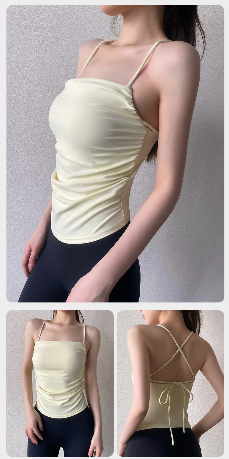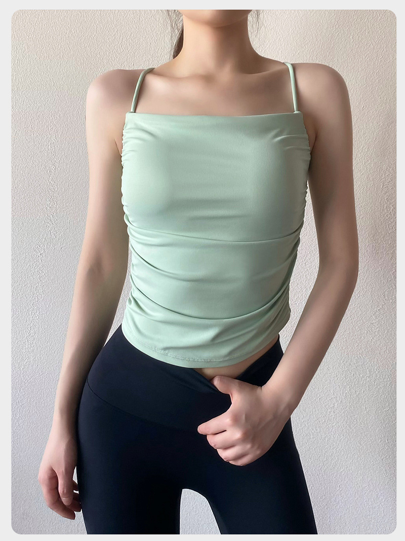 스트랩 필라테스 섹시한 요가 슬링 브래지어 댄스 뷰티 도살 플리츠 속옷 외부 착용 피트니스 착용 조끼