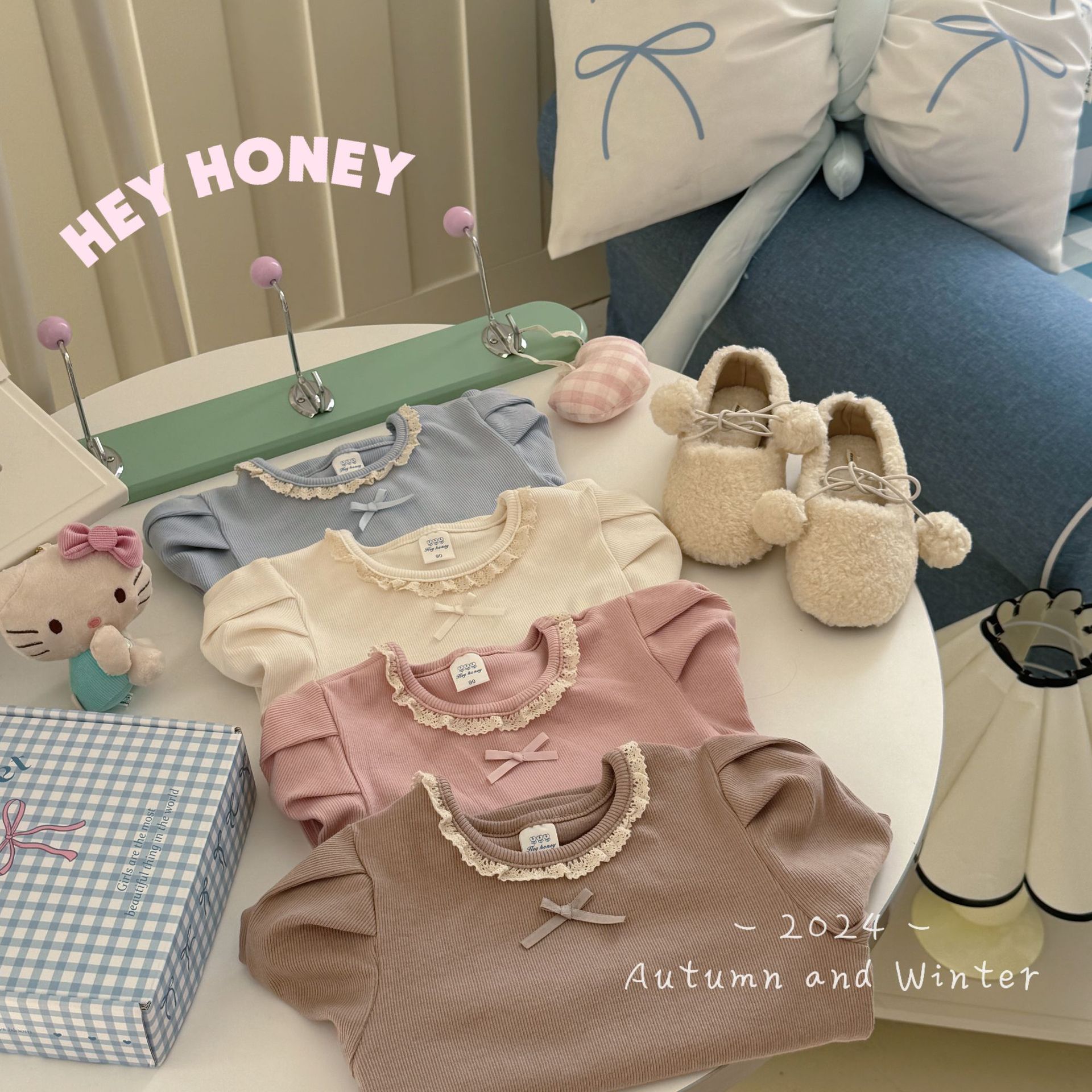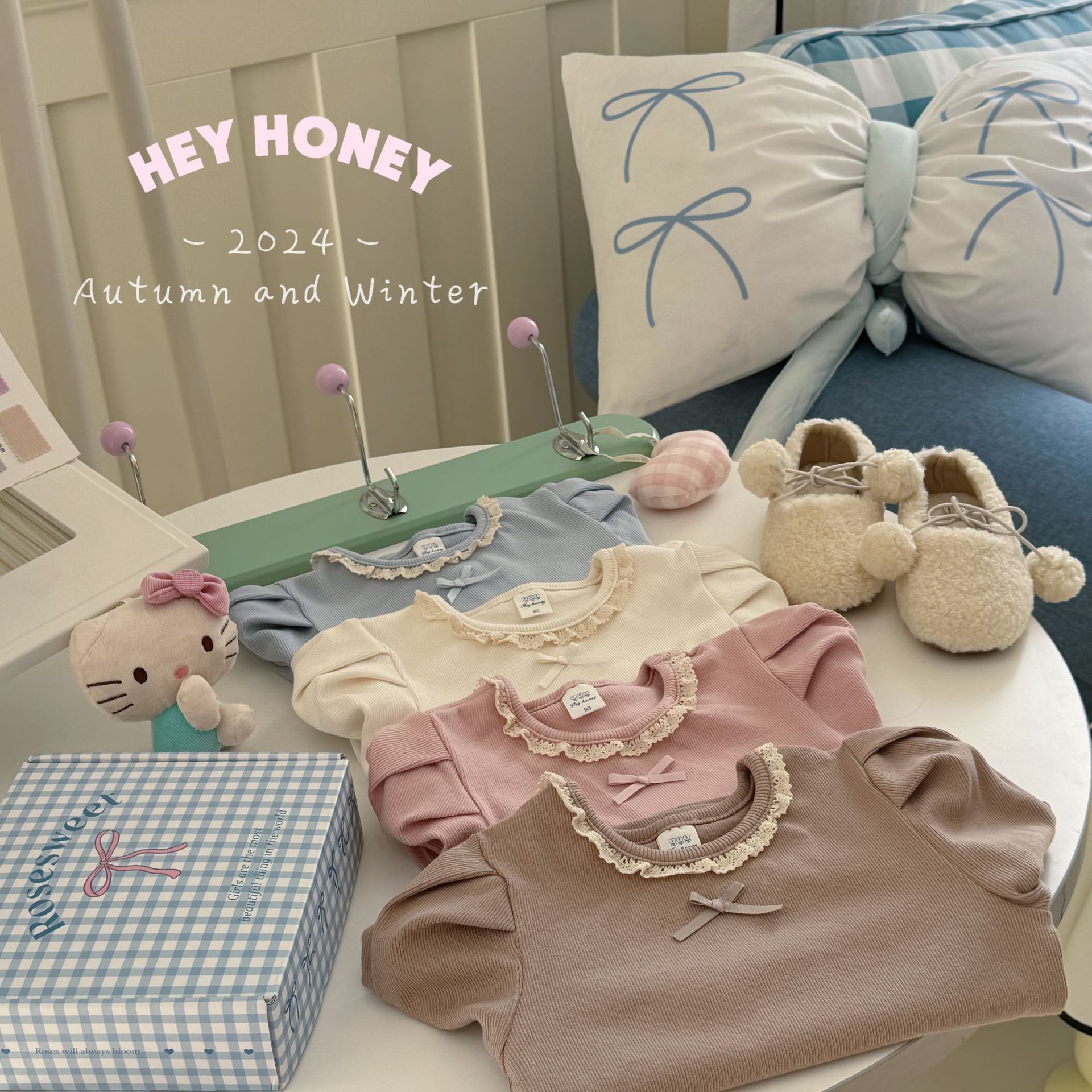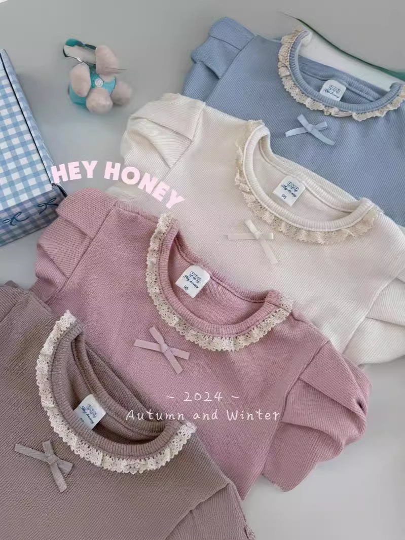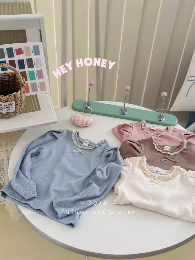 재고 크기 롤 24 가을 새 소녀 퍼프 소매 활 귀여운 기본 셔츠 긴 소매 공주 아기스토어 가기