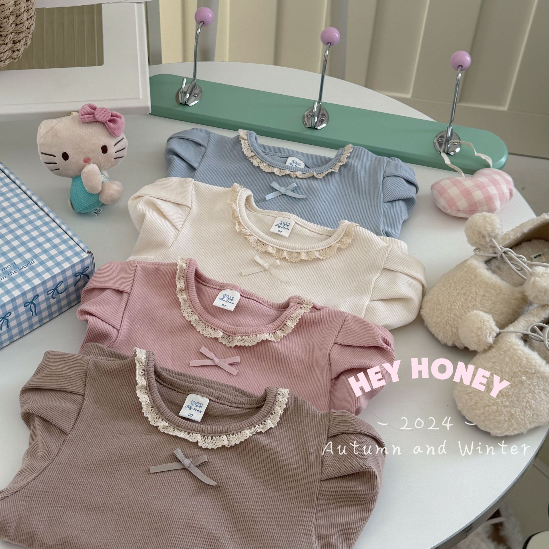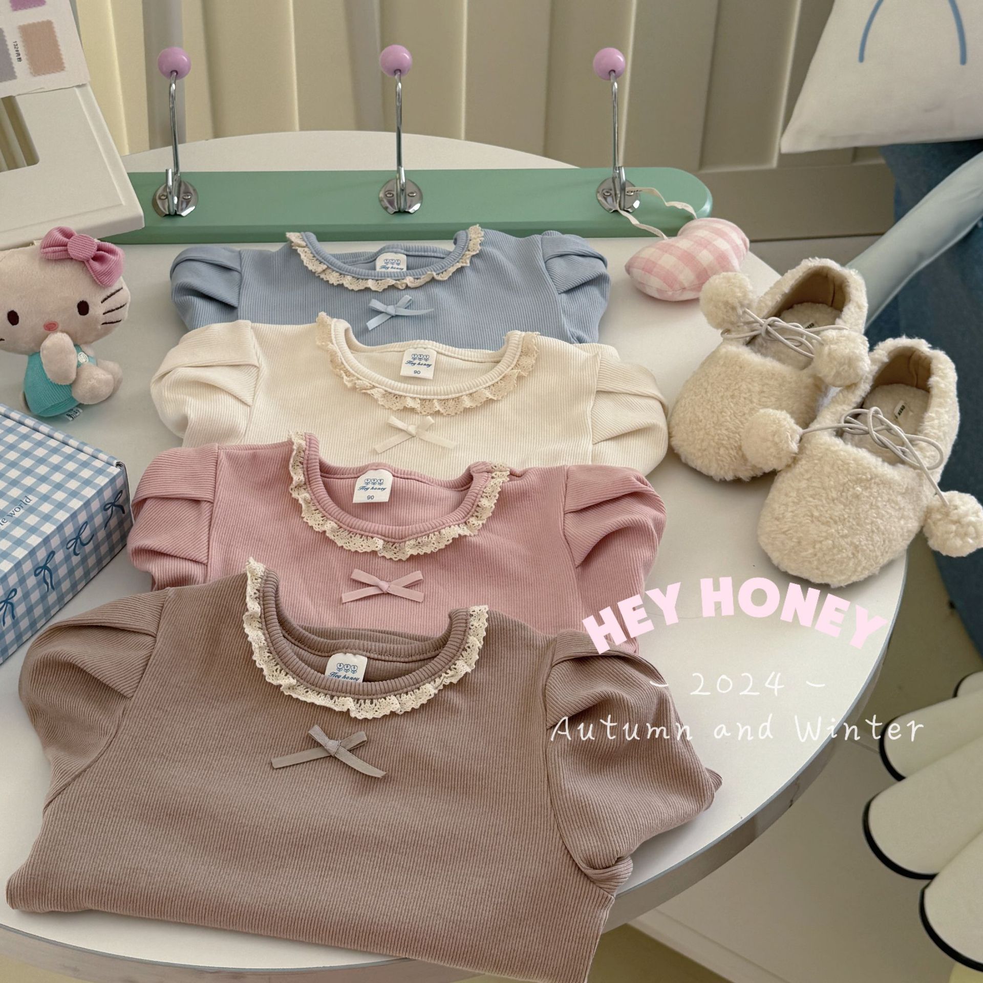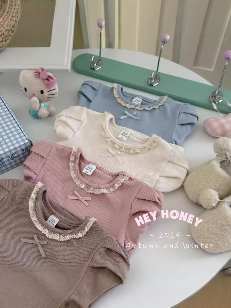 재고 크기 롤 24 가을 새 소녀 퍼프 소매 활 귀여운 기본 셔츠 긴 소매 공주 아기