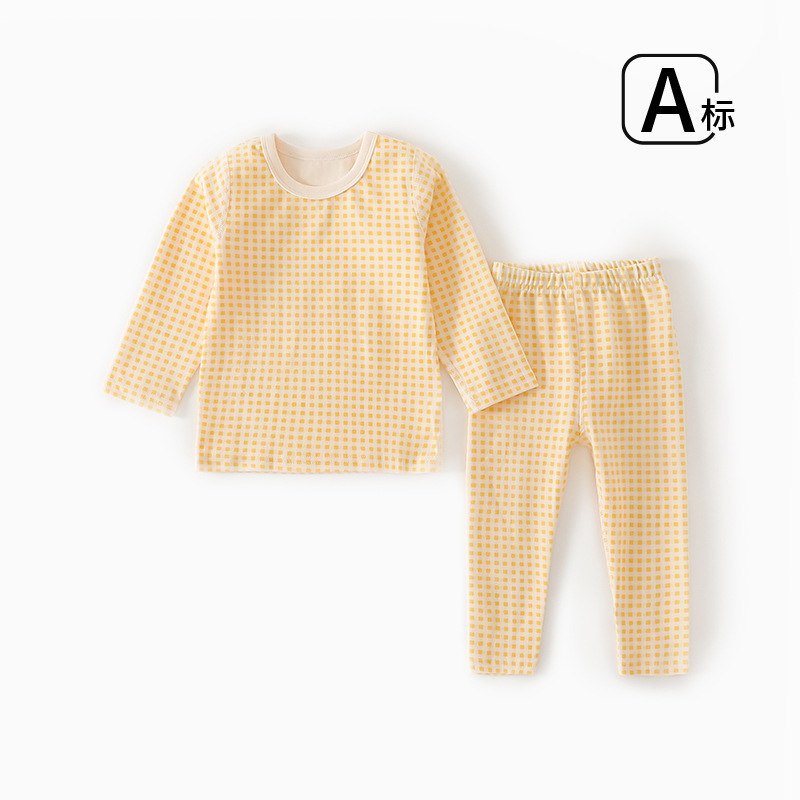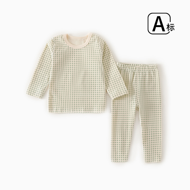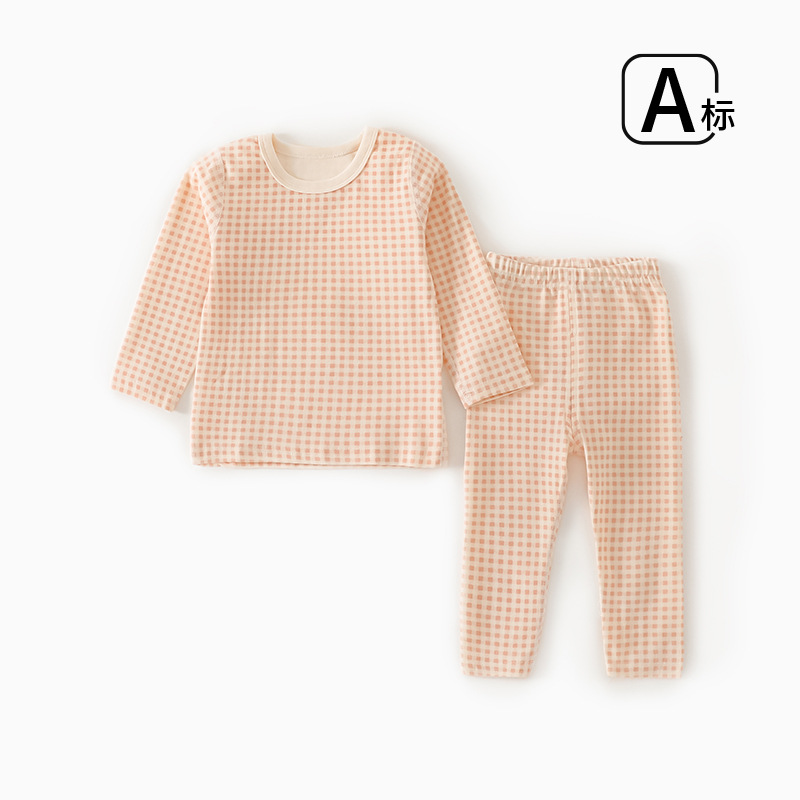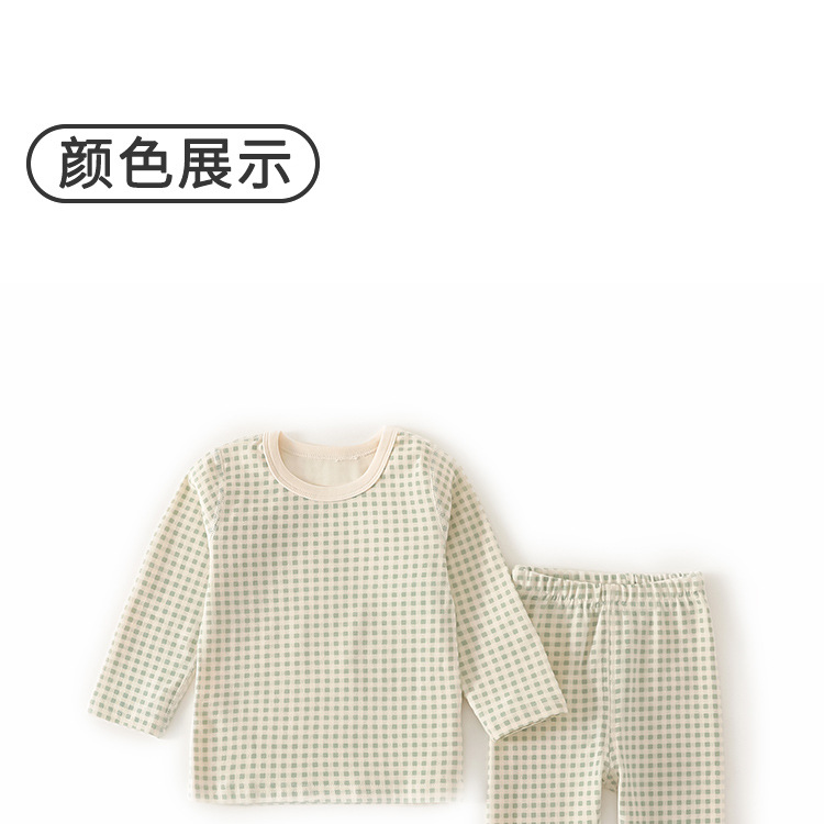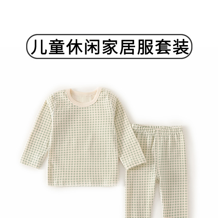 Ins Plaid 어린이 홈 의류 속옷 세트 소년 소녀 아기 속옷 어린이 가을 옷과 바지 세트