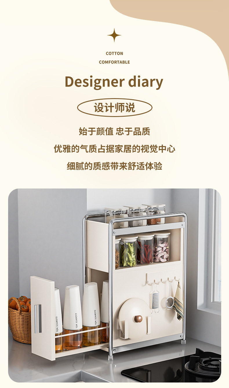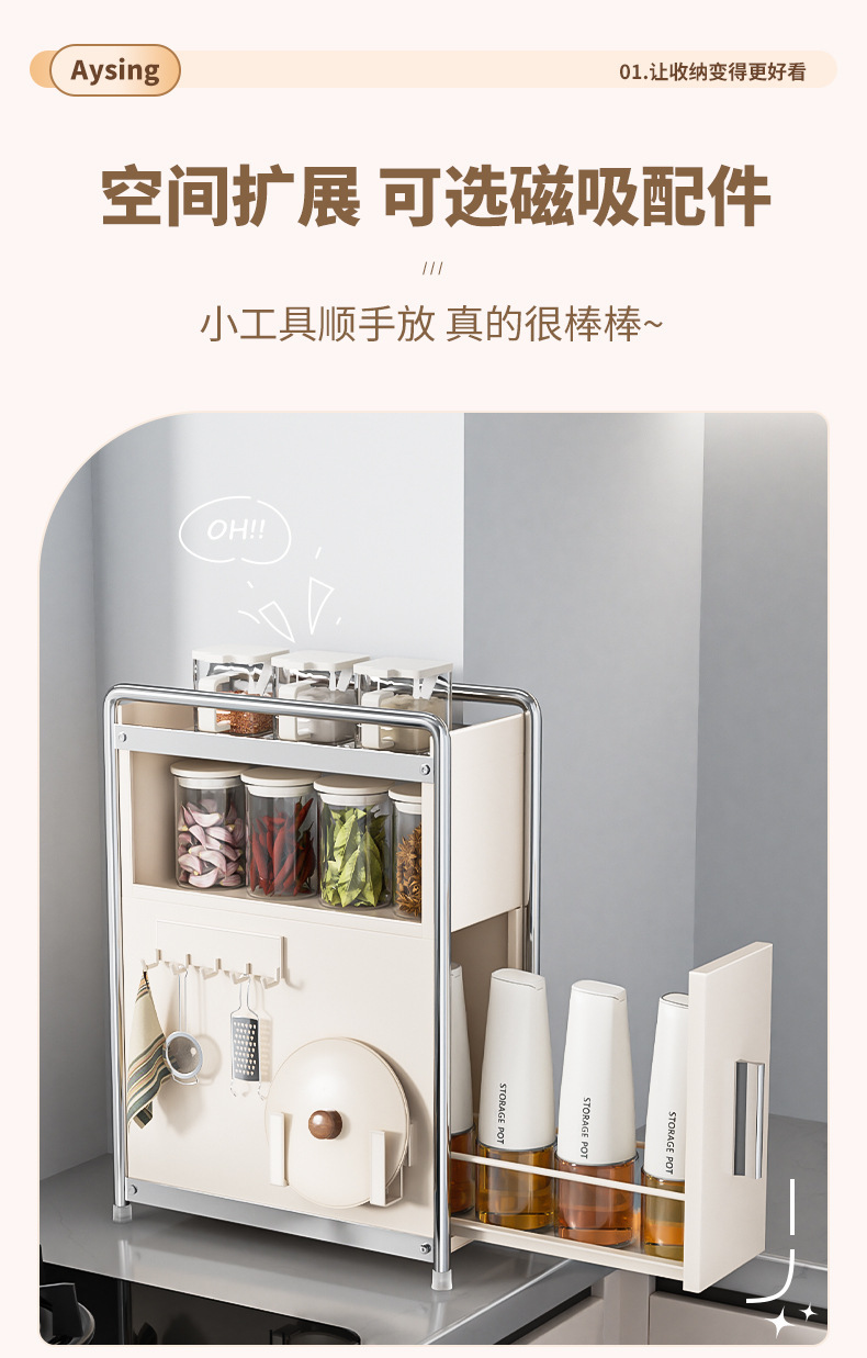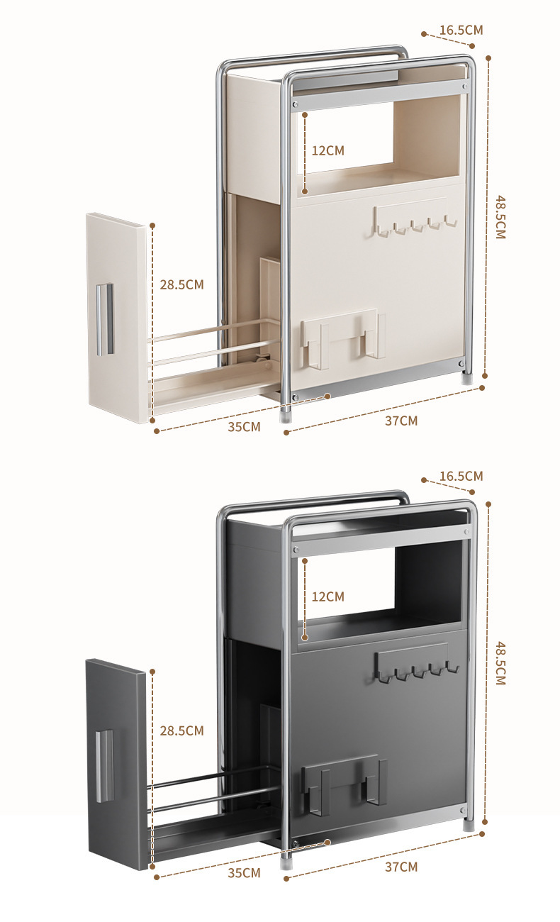 • 라이트 럭셔리 건 그레이* 서랍 스파이스 캐비닛 메인 랙 + 냄비 뚜껑 랙 + 후크 플레이트
