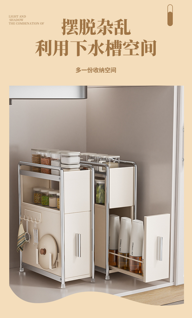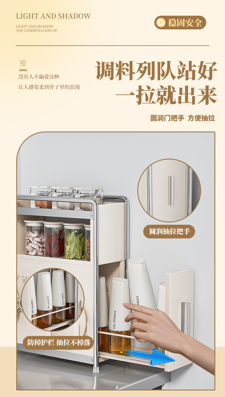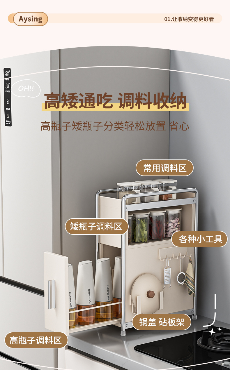 • 라이트 럭셔리 건 그레이* 서랍 스파이스 캐비닛 메인 랙 + 냄비 뚜껑 랙 + 후크 플레이트
