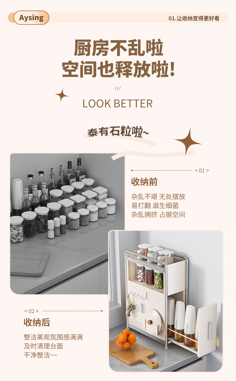 주방 방진 저장 캐비닛 다층 조미료 테이블 탑 저장 랙 나이프 랙 조미료 다기능 가정용 서랍 유형스토어 가기
